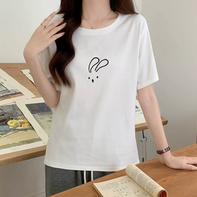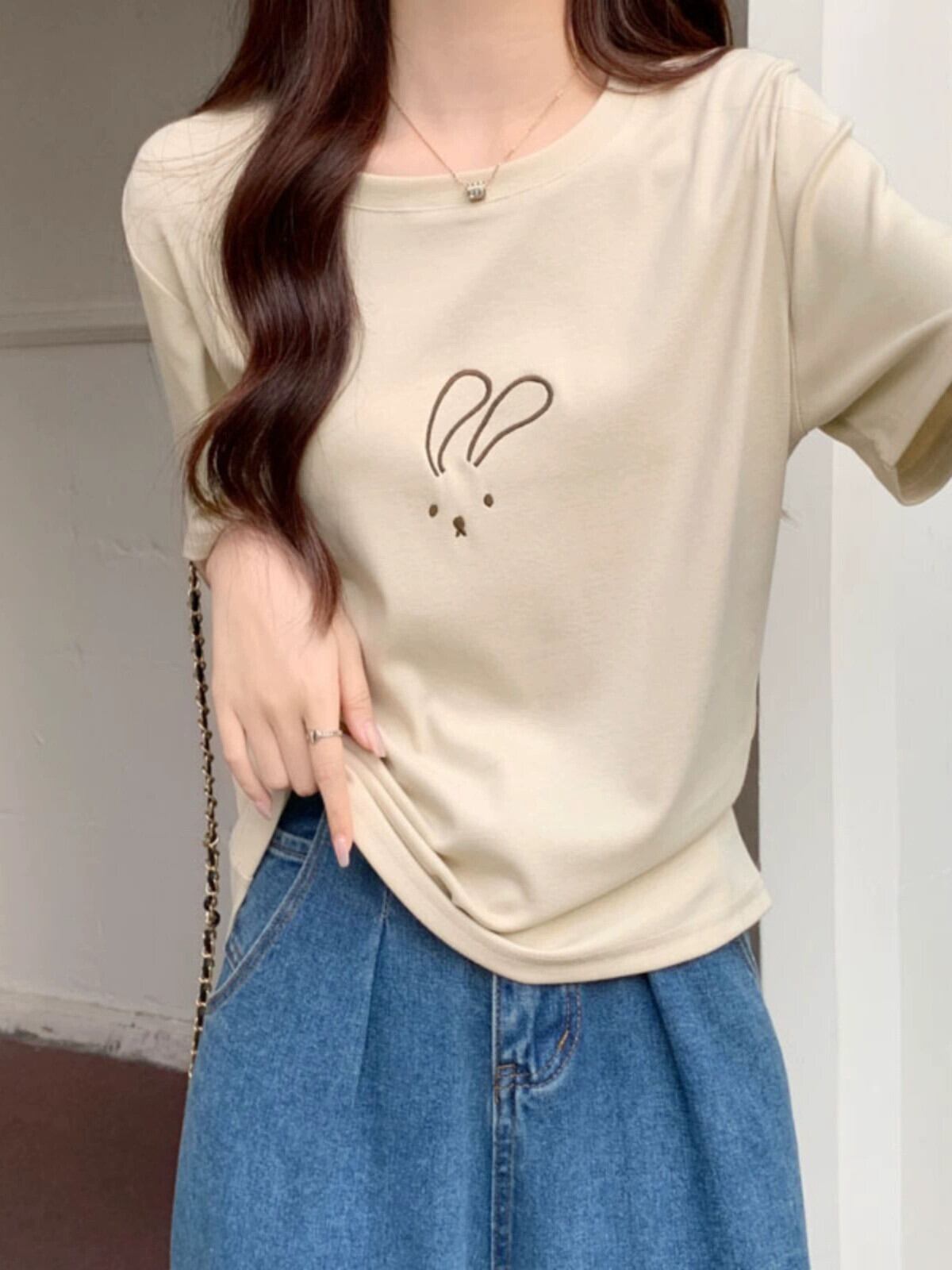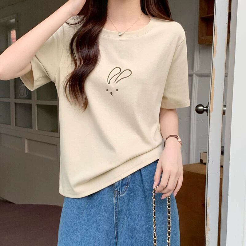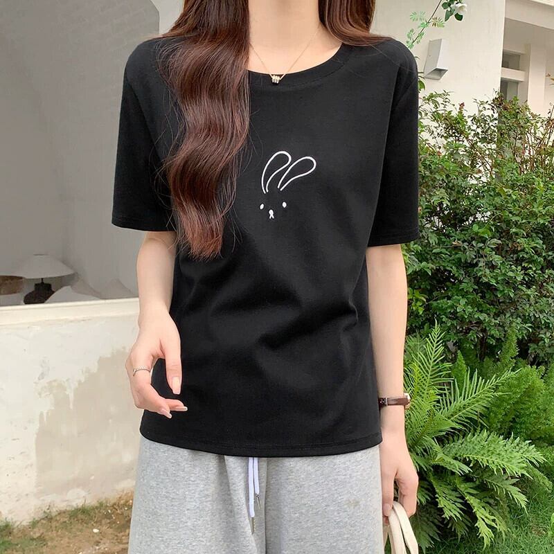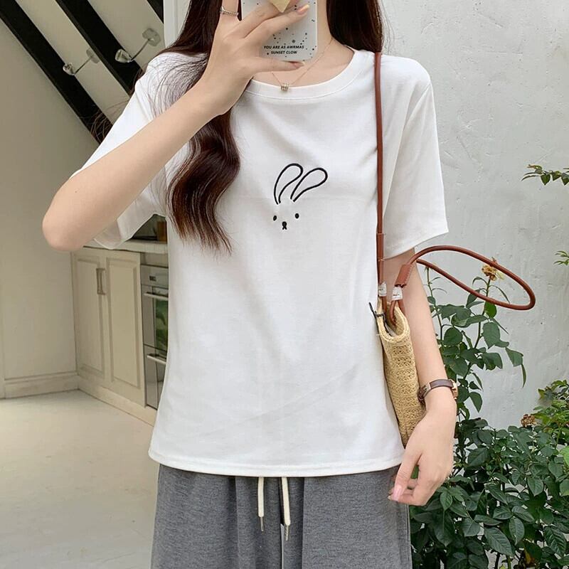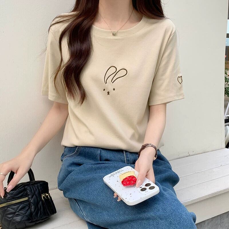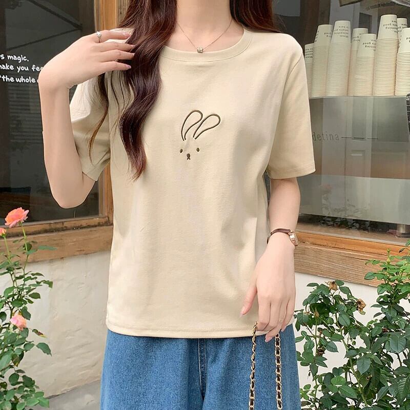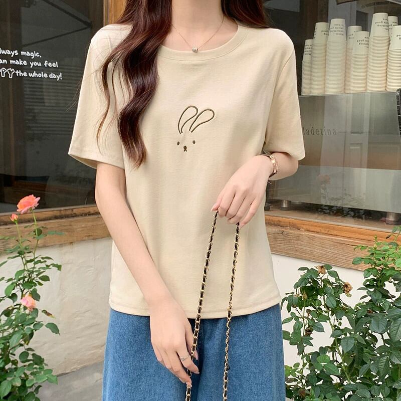 綿半袖 Tシャツレディース 2023 夏の新しいファッションデザインセンスゆったりカジュアルオールマッチ刺繍ラウンドネックトップ コットン サマー 夏物 Oネック 746004320738974 | framboise21