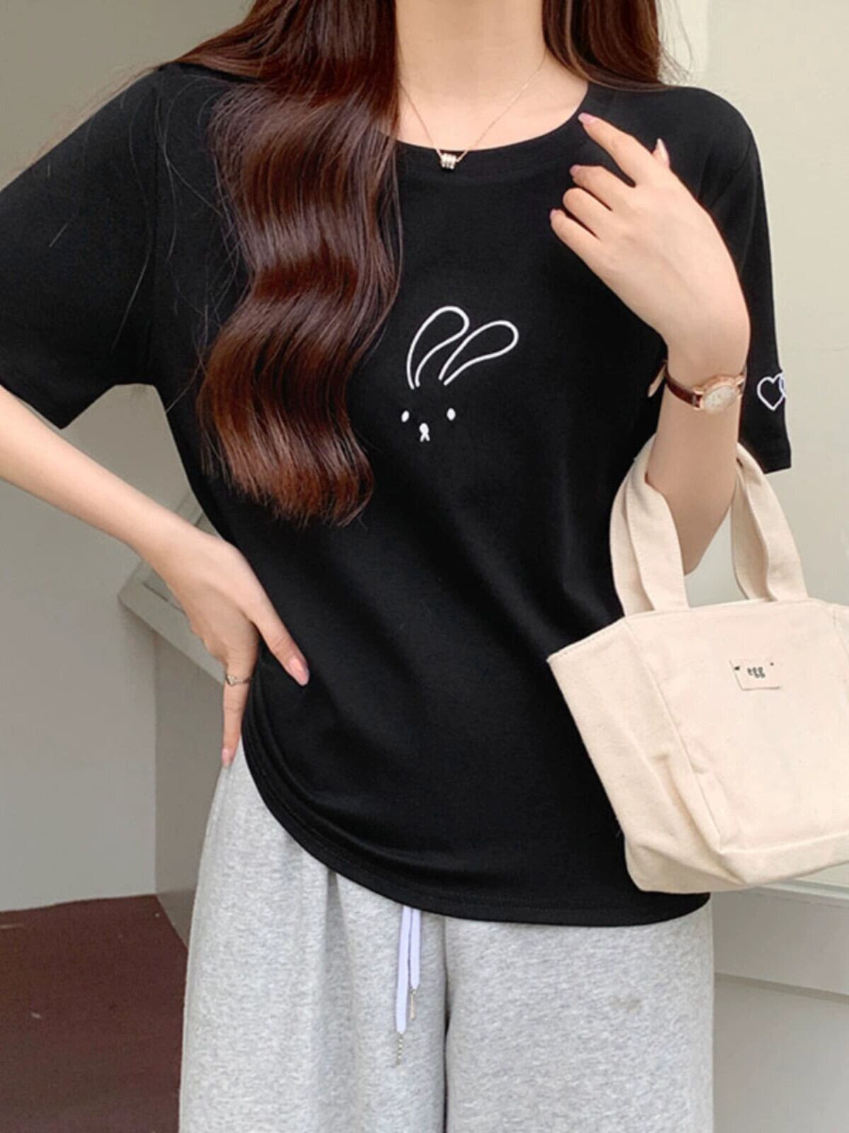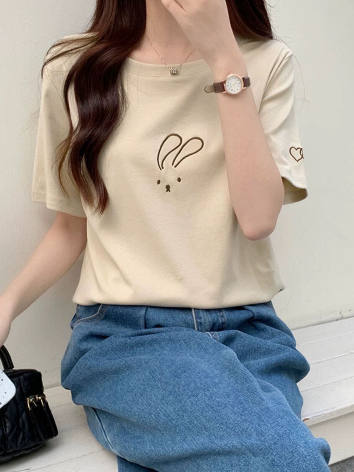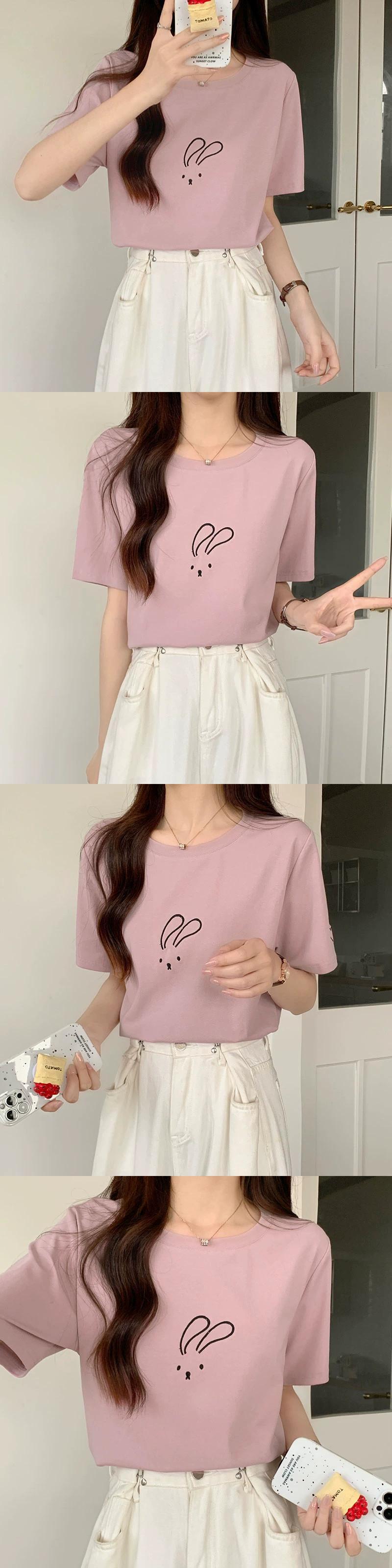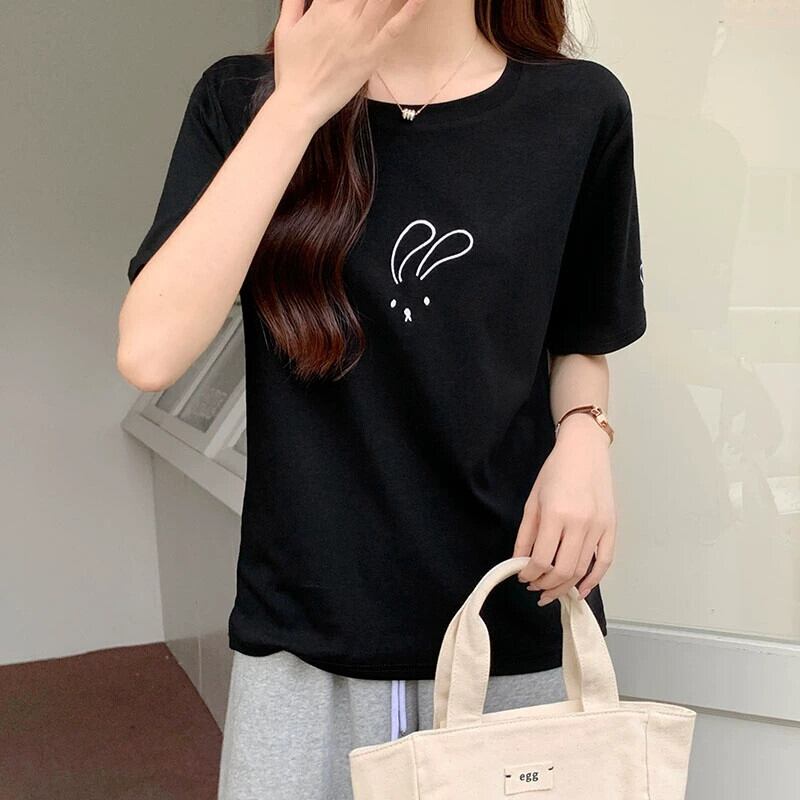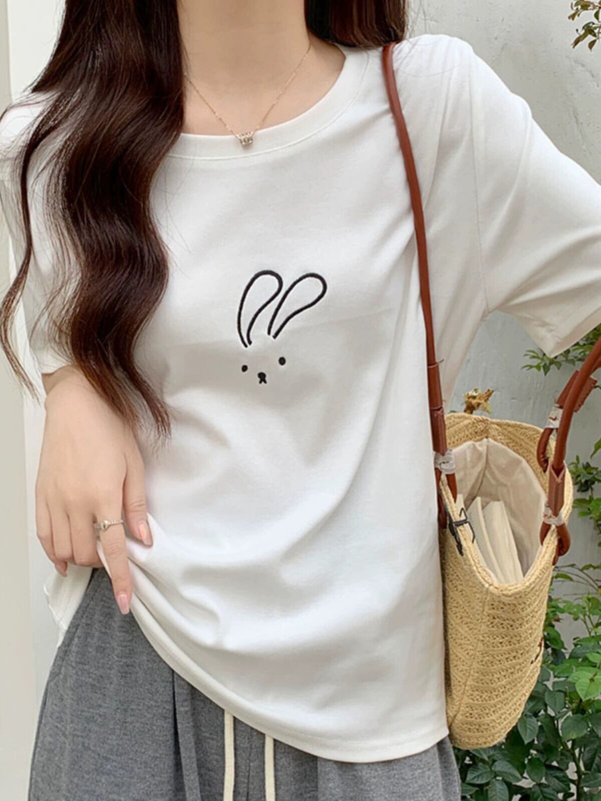 綿半袖 Tシャツレディース 2023 夏の新しいファッションデザインセンスゆったりカジュアルオールマッチ刺繍ラウンドネックトップ コットン サマー 夏物 Oネック 746004320738974 | framboise21