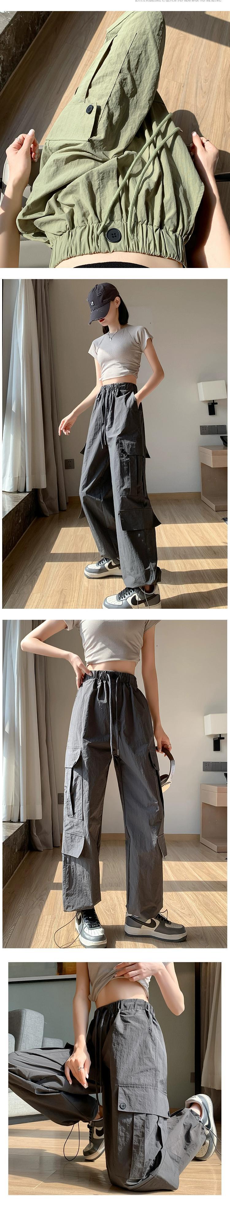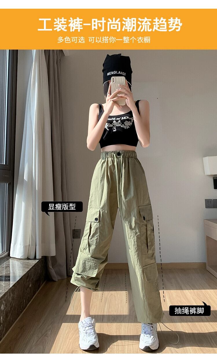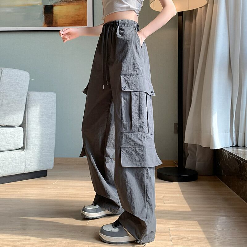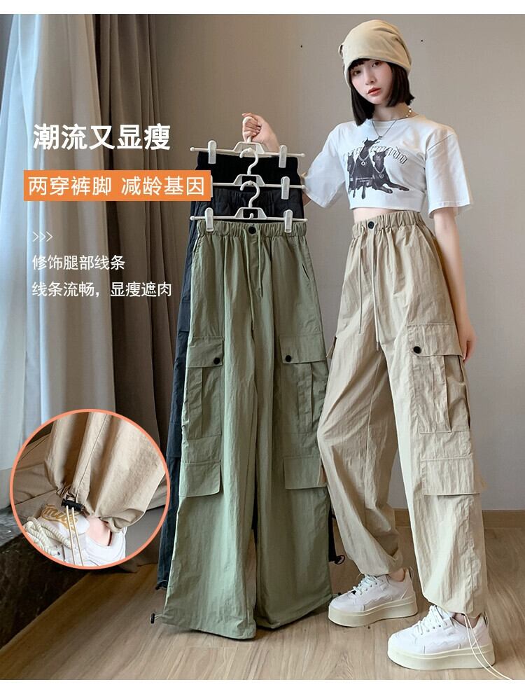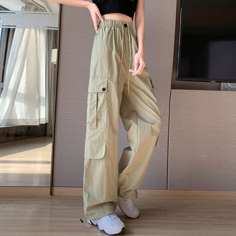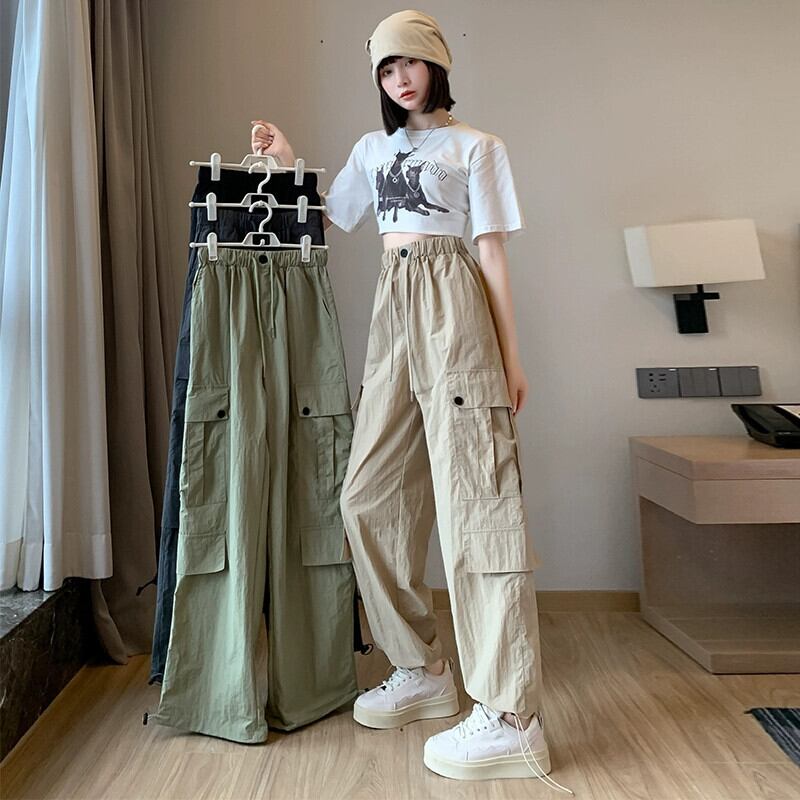 カーキ速乾性オーバーオールレディース夏薄部アイスシルクストレートパンツアメカジハイウエストスポーツワイドレッグパンツ ハイウェスト カジュアル サマー 夏物 ワイドパンツ 7460082564435380 | framboise21