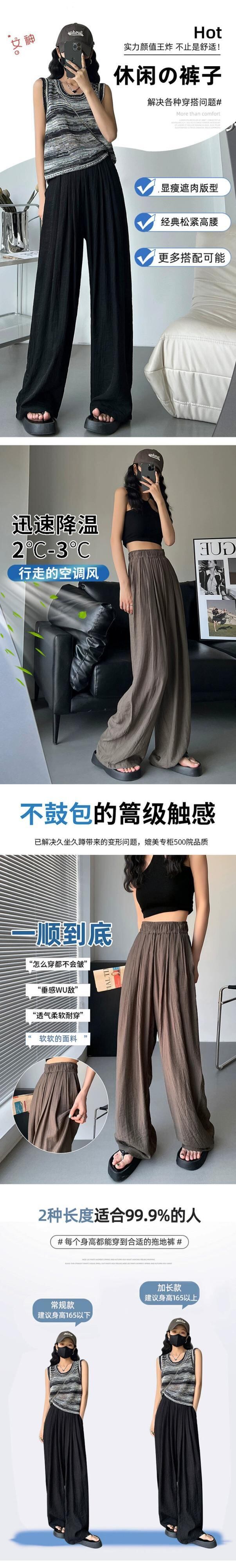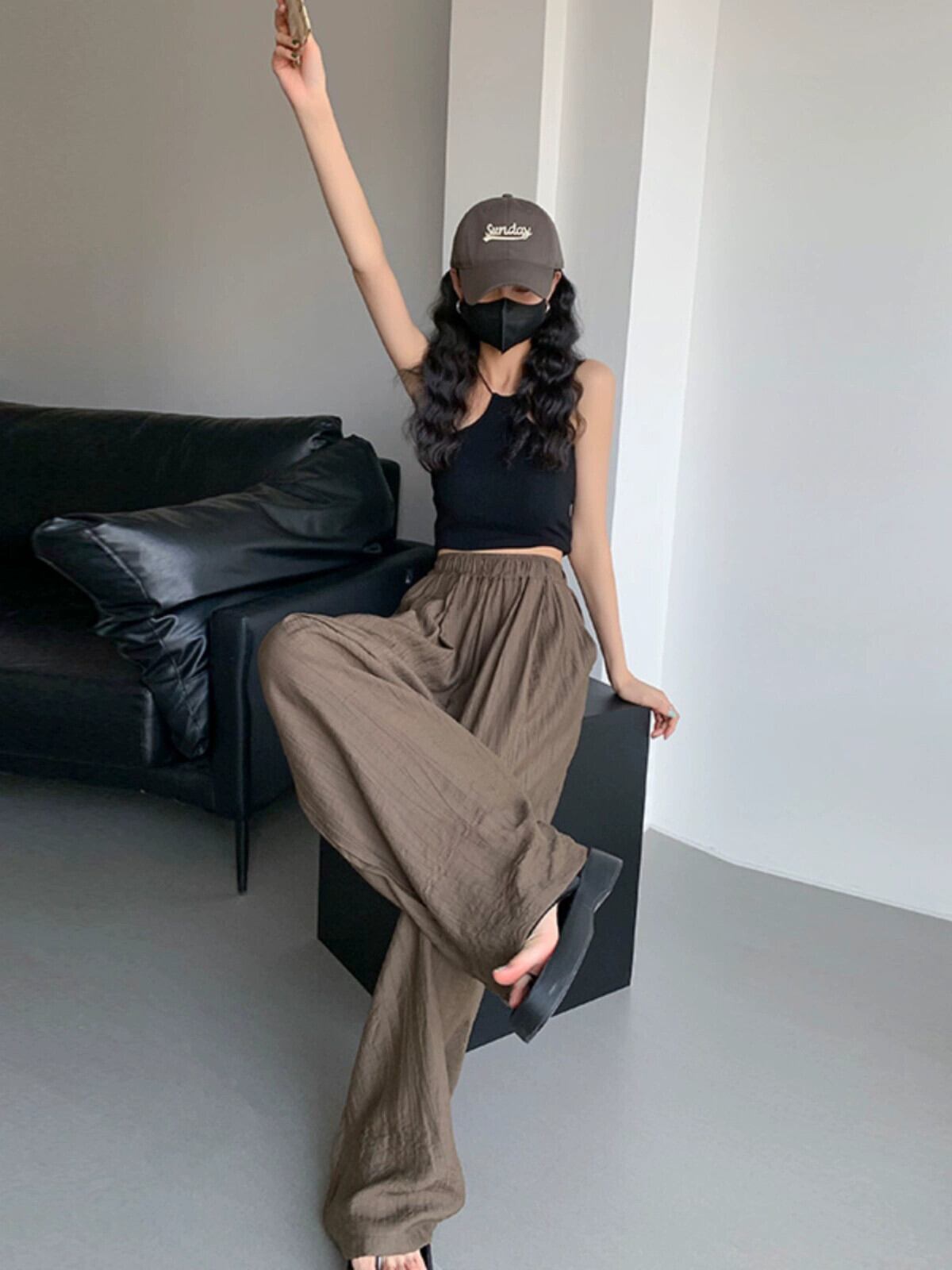 アイスシルクコットンリネンワイドレッグパンツレディース夏薄手カジュアルエーゼ怠惰な山本パンツルーズドレープモッププリーツパンツ サマー 夏物 7460061676075024 | framboise21