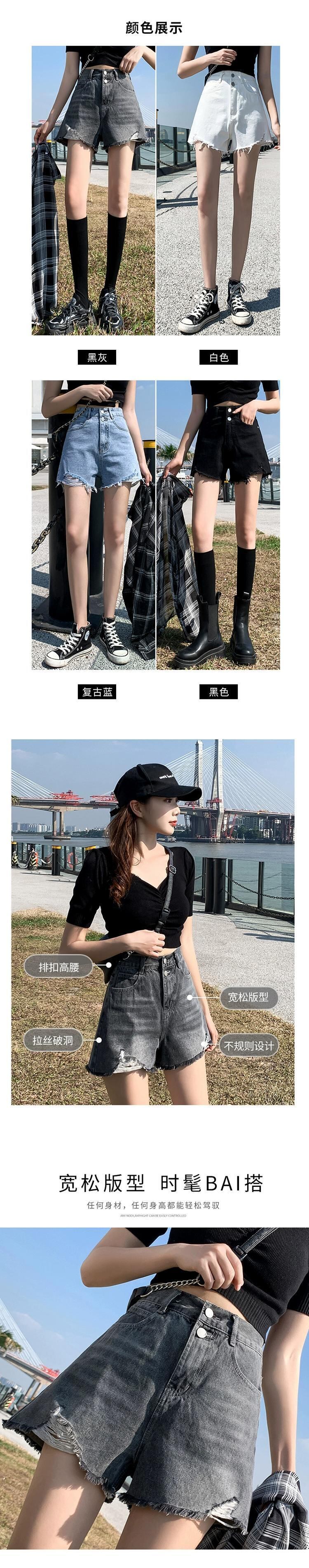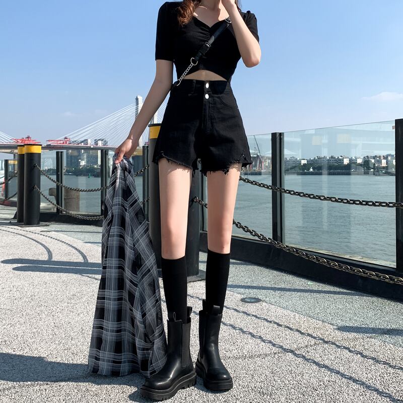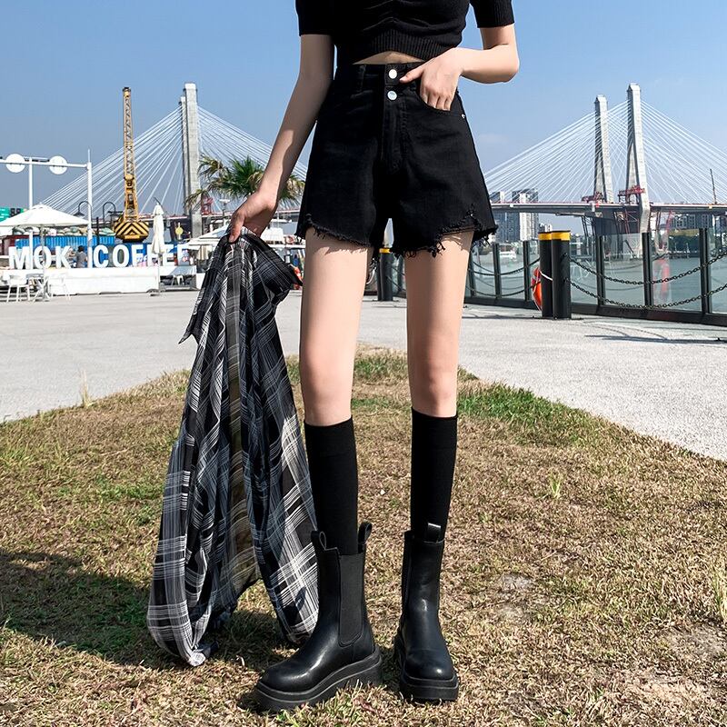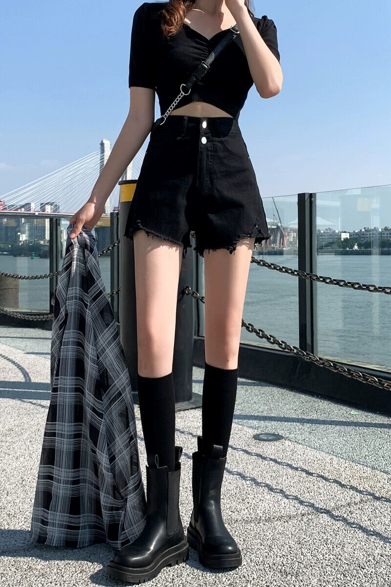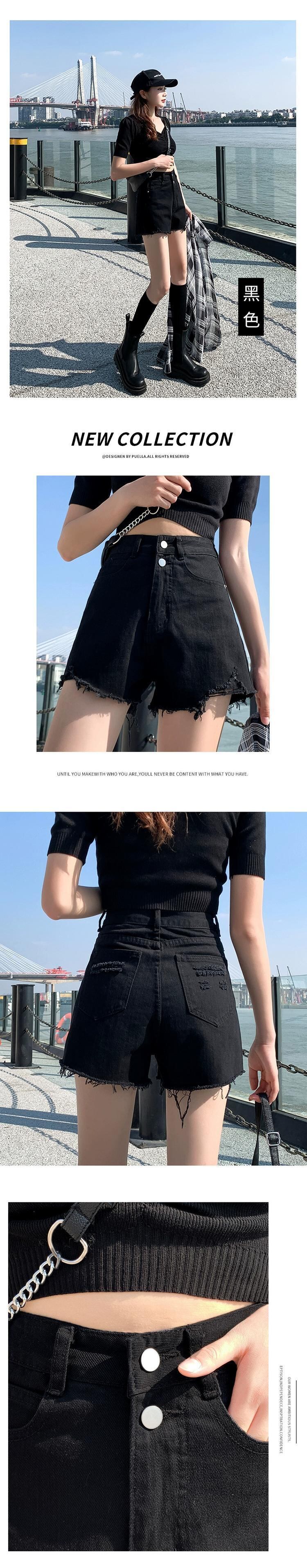 黒切りっぱなしデニムショートパンツレディース夏ハイウエストパンツ薄手ネットレッドAラインワイドパンツ薄い ブラック サマー 夏物 ショーツ ブルマー 7460047606482232 | framboise21