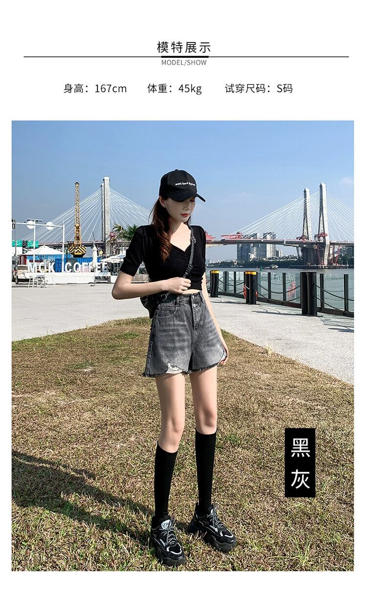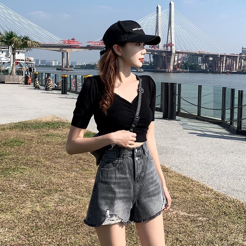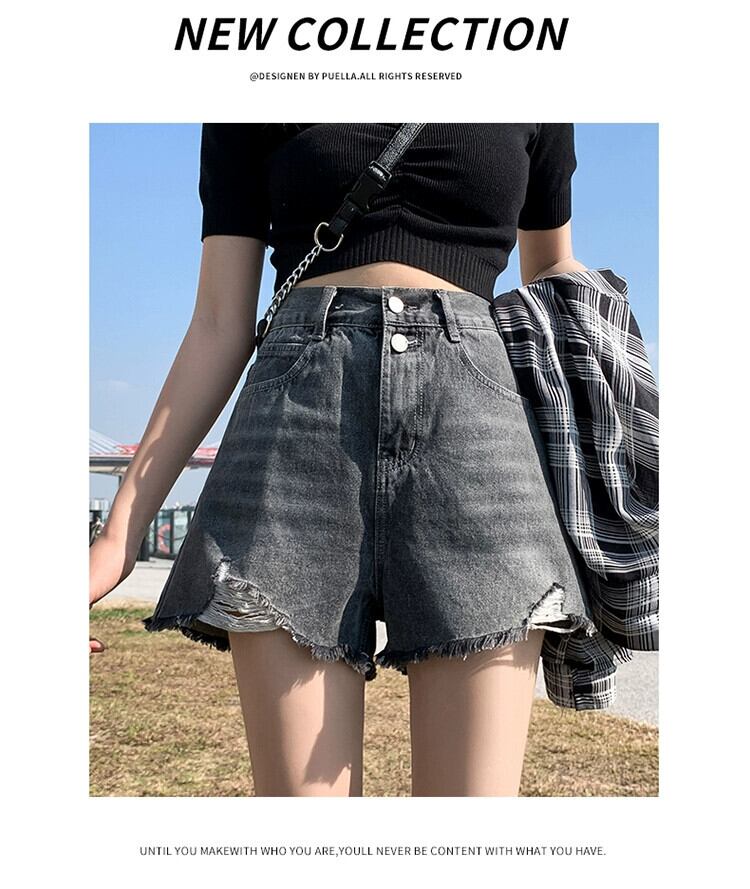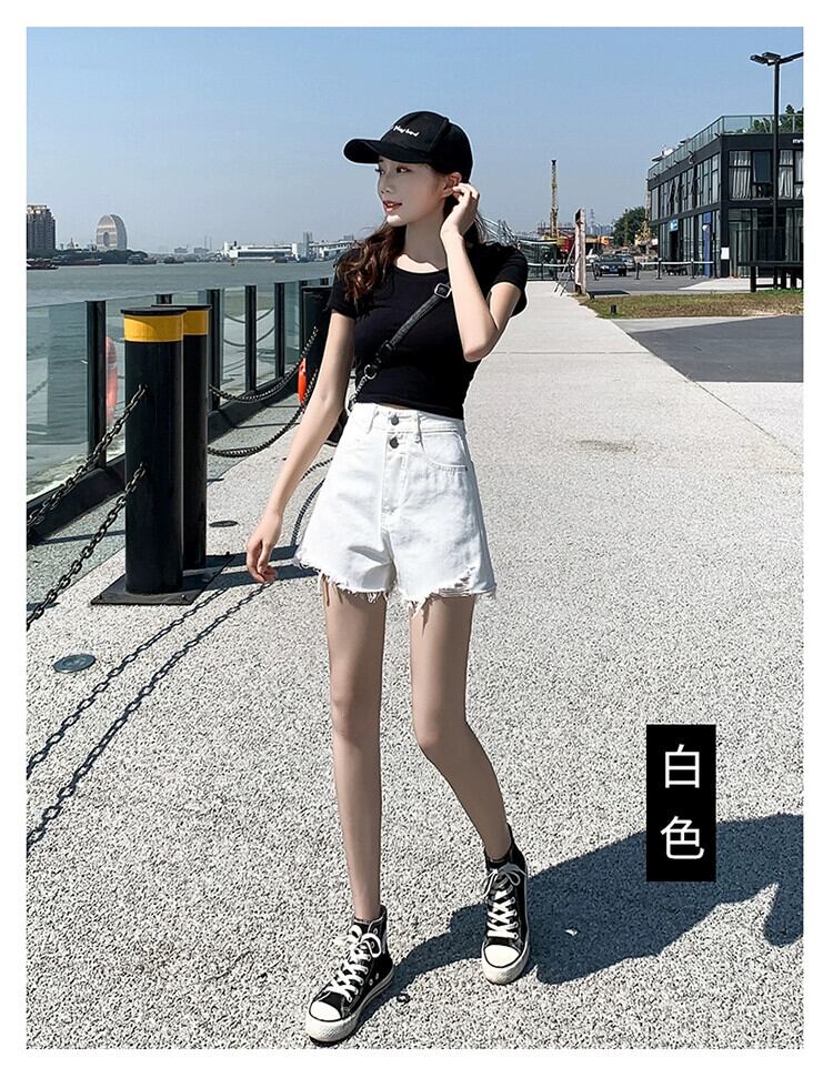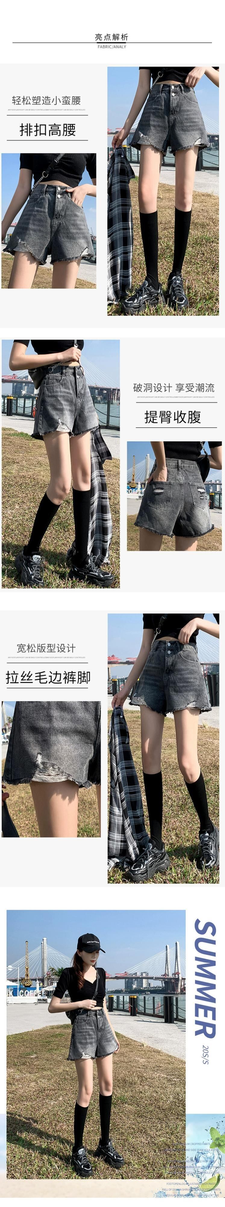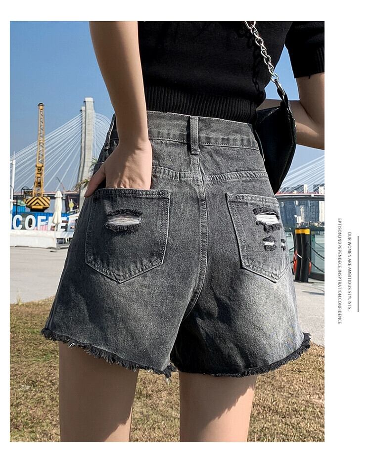 黒切りっぱなしデニムショートパンツレディース夏ハイウエストパンツ薄手ネットレッドAラインワイドパンツ薄い ブラック サマー 夏物 ショーツ ブルマー 7460047606482232 | framboise21
