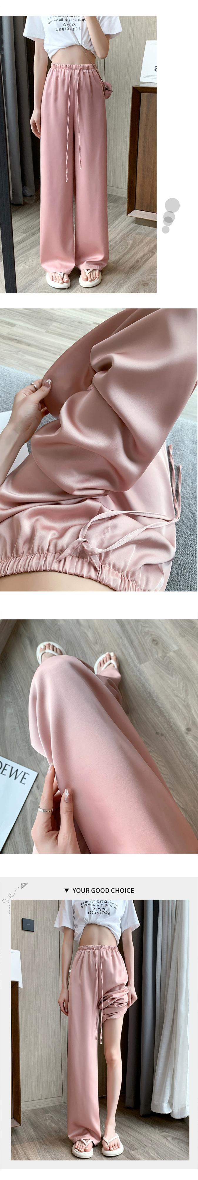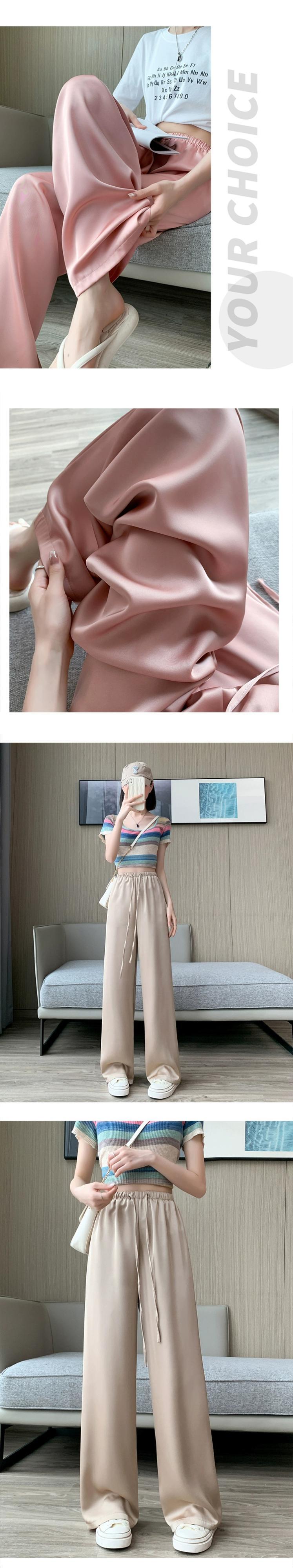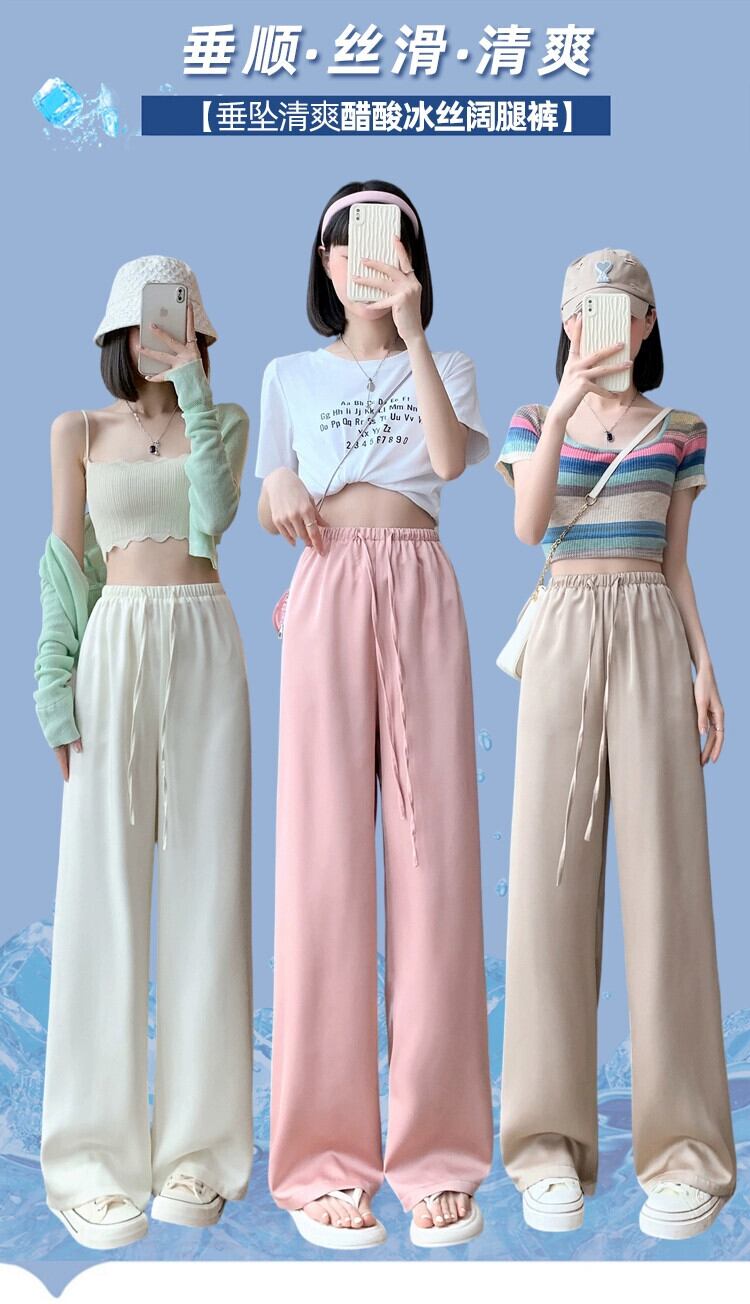 アイスシルクアセテートワイドレッグパンツレディース夏薄セクションハイウエストフロアモップストレートレッグ長ズボンルーズカジュアルドレープクールパンツ ロング サマー 夏物 7460011029857043 | framboise21