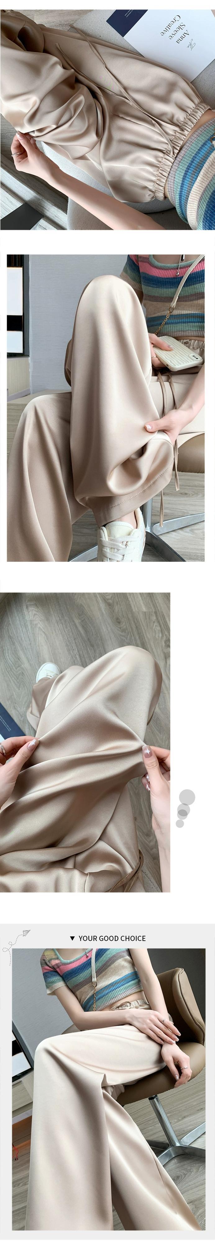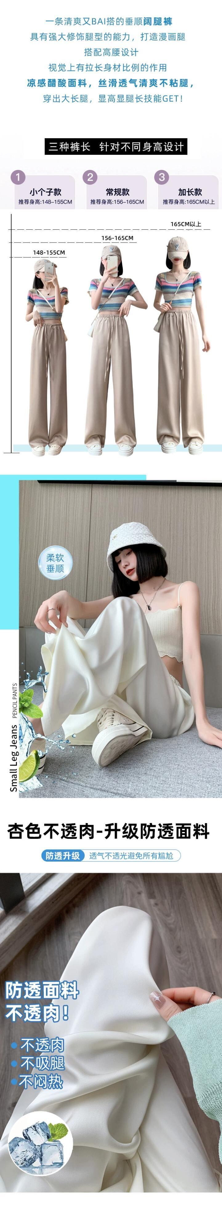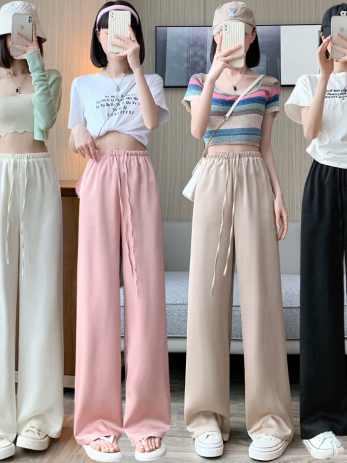アイスシルクアセテートワイドレッグパンツレディース夏薄セクションハイウエストフロアモップストレートレッグ長ズボンルーズカジュアルドレープクールパンツ ロング サマー 夏物 7460011029857043 | framboise21