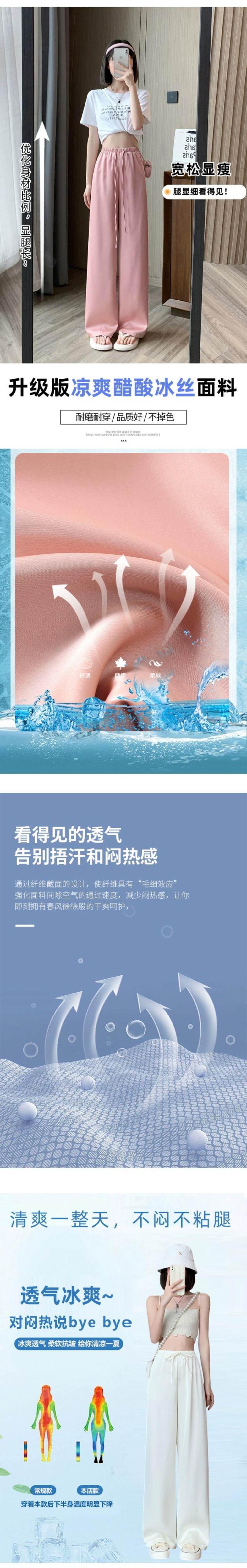 アイスシルクアセテートワイドレッグパンツレディース夏薄セクションハイウエストフロアモップストレートレッグ長ズボンルーズカジュアルドレープクールパンツ ロング サマー 夏物 7460011029857043