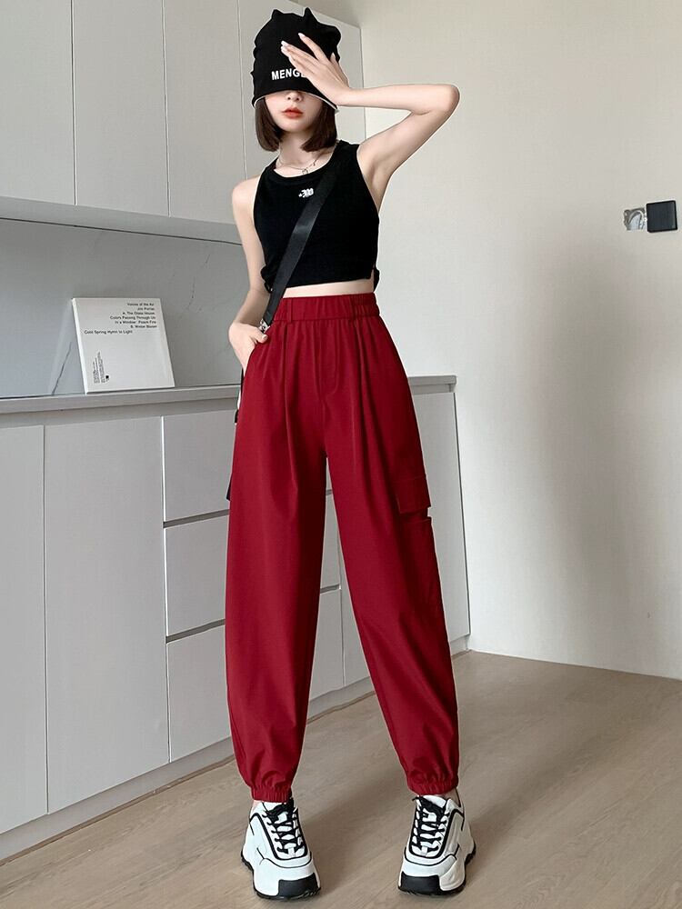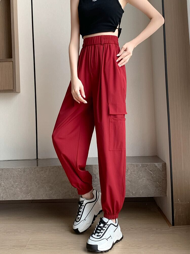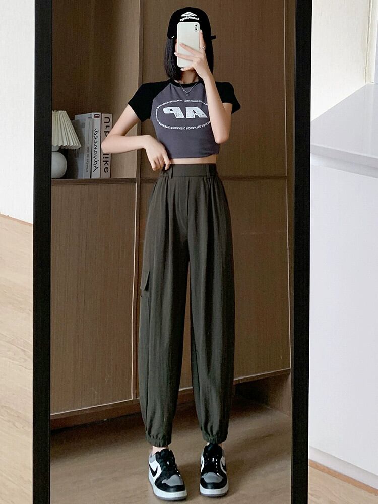 アイスシルクオーバーオールレディース夏薄手スポーツ速乾パンツアメリカンスタイルルーズカジュアル小さなハイウエストパンツ ハイウェスト サマー 夏物 7460062246205306 | framboise21