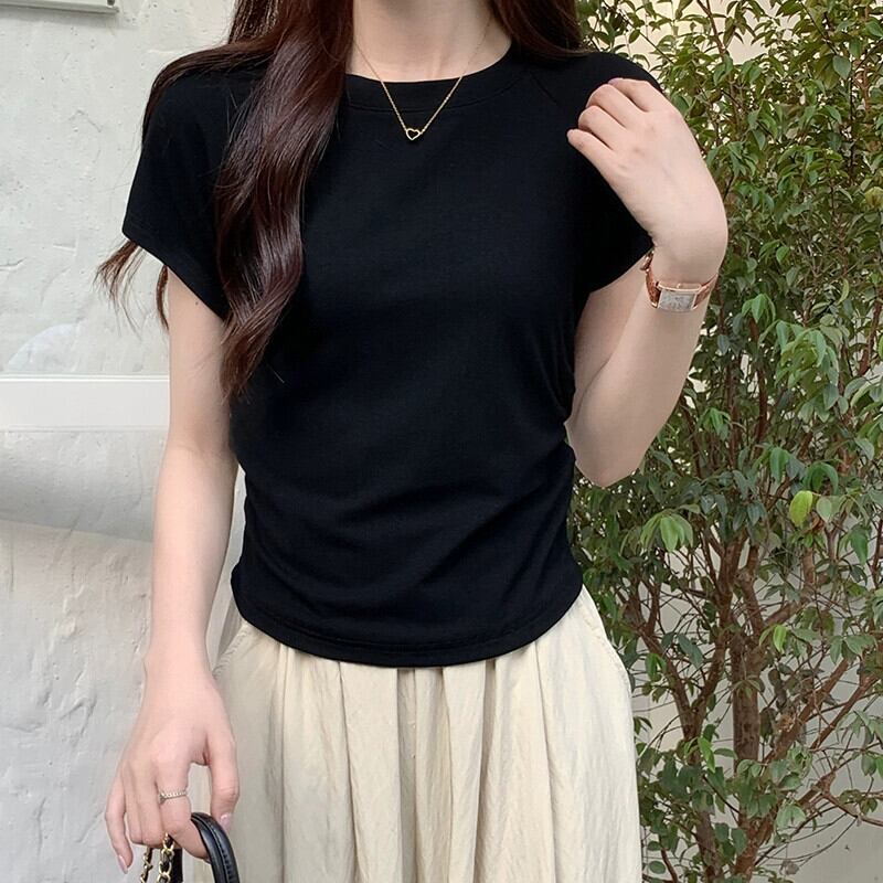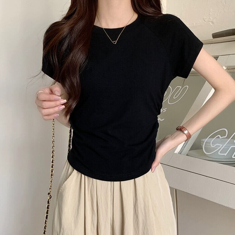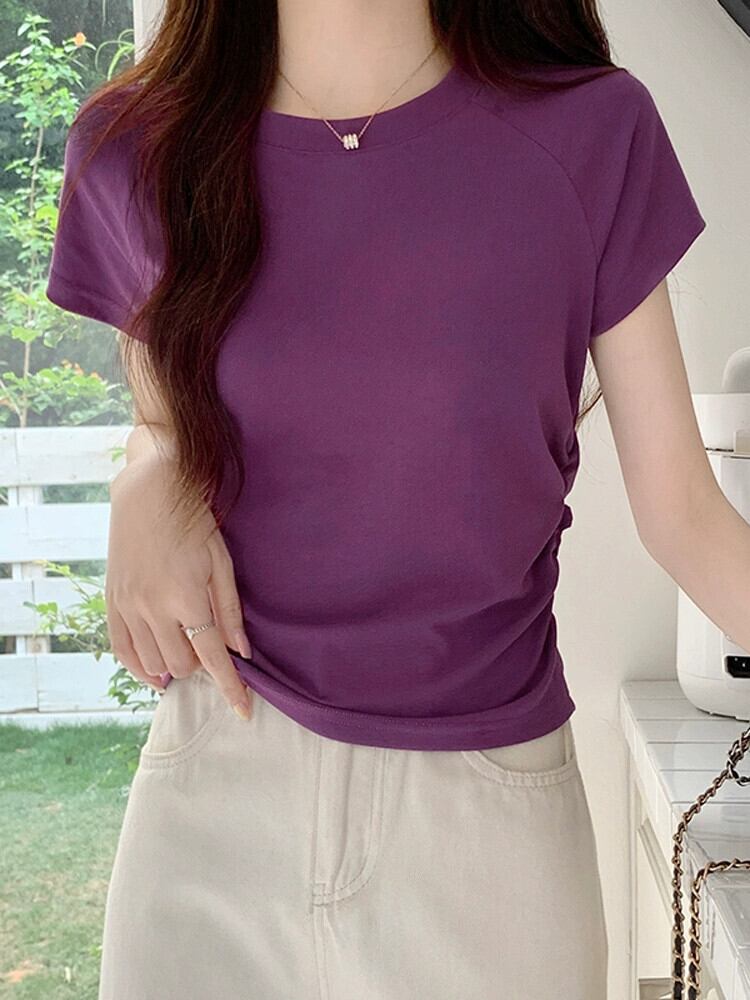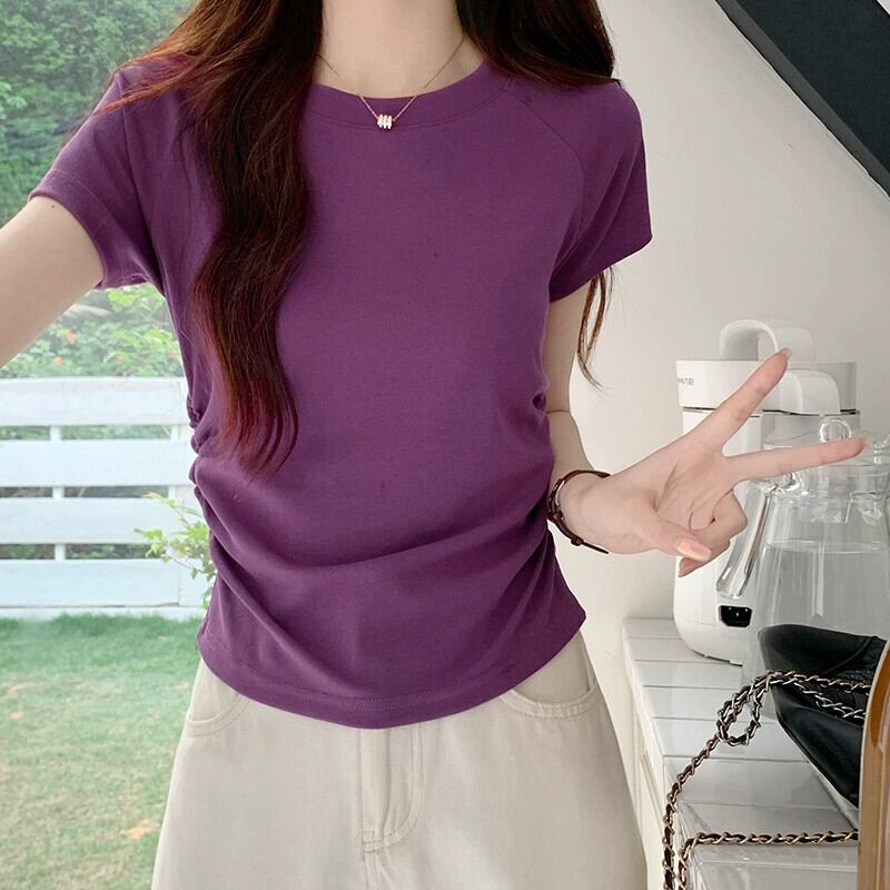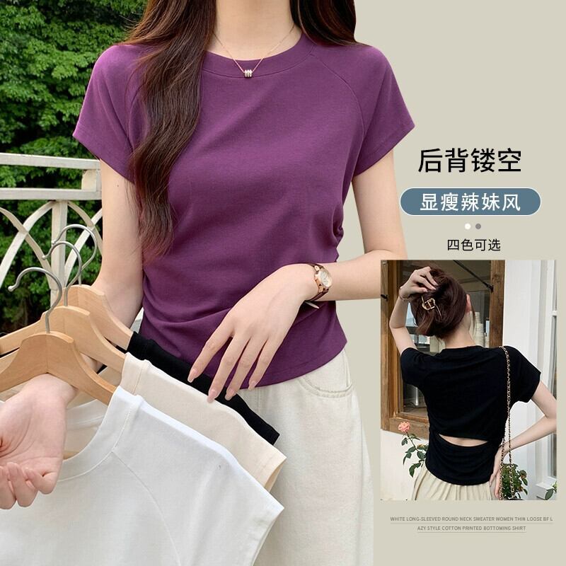 パープルコットンフロントショルダー半袖Tシャツレディースサマーデザイン自己修養の感覚ショートセクション不規則なバック中空フィッシュボーントップ 夏物 7460099667406983 | framboise21