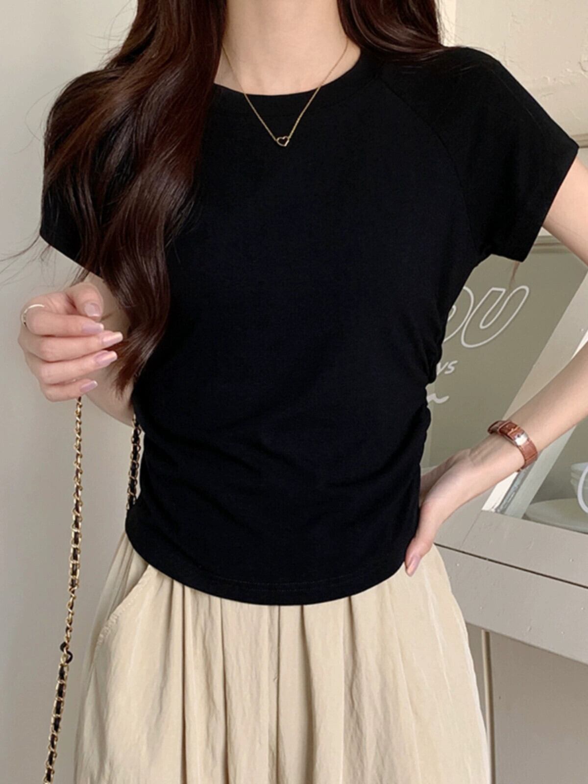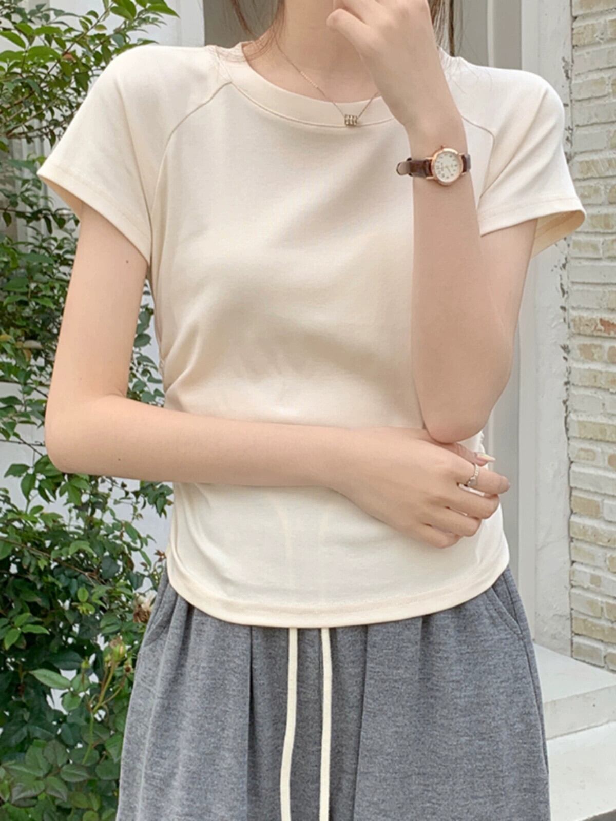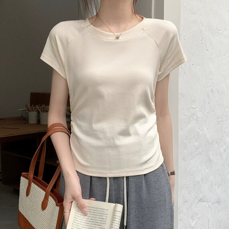 パープルコットンフロントショルダー半袖Tシャツレディースサマーデザイン自己修養の感覚ショートセクション不規則なバック中空フィッシュボーントップ 夏物 7460099667406983 | framboise21