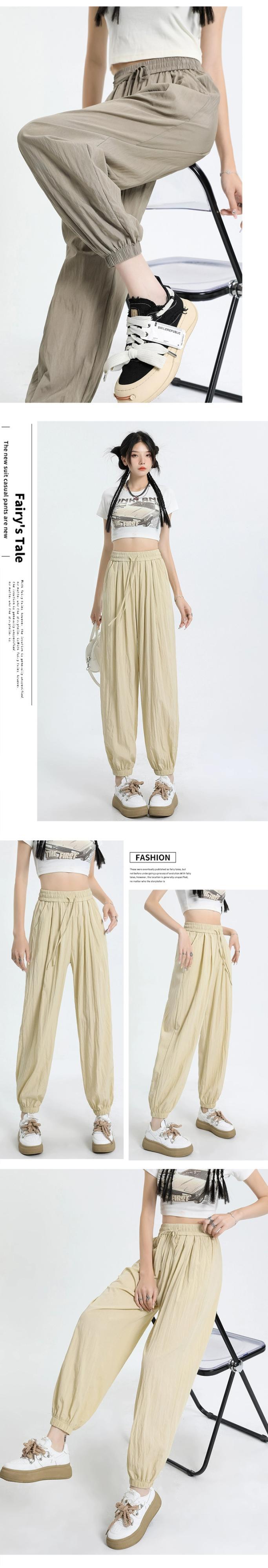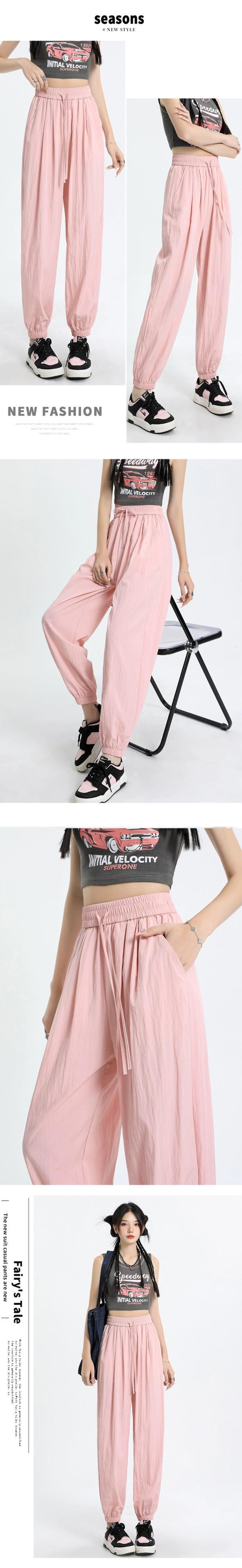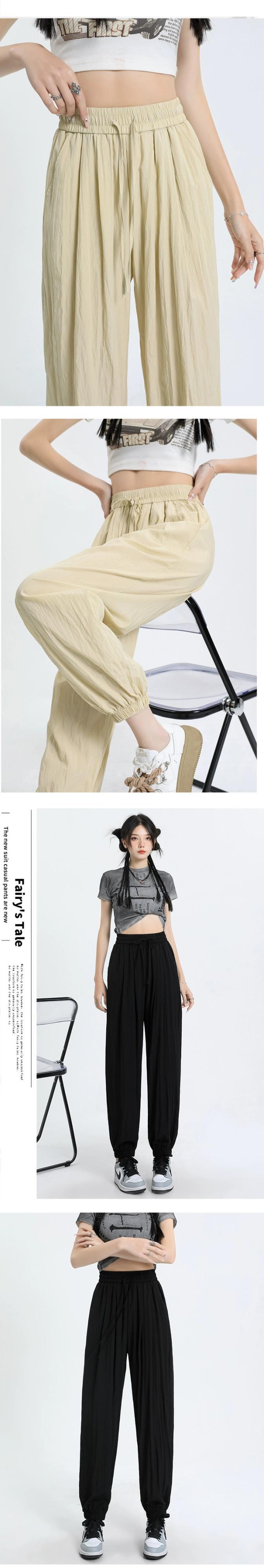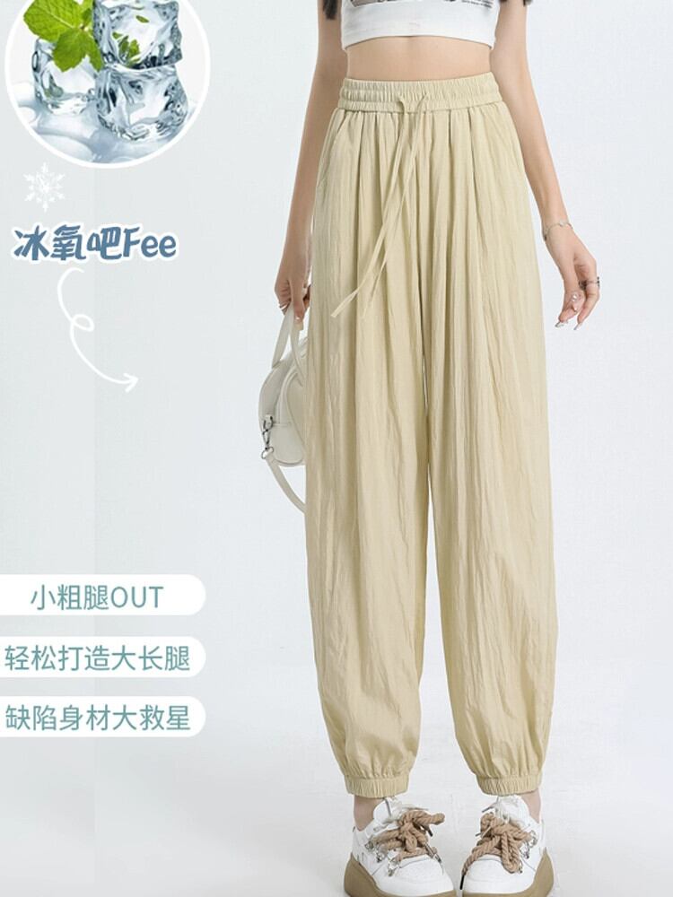 ビームアイスシルクスウェットパンツ女性の夏薄いカジュアルプリーツ 9 ポイントパンツスリムハイウエストドレープ大根ハーレムパンツ ハイウェスト サマー 夏物 7460039278832138 | framboise21