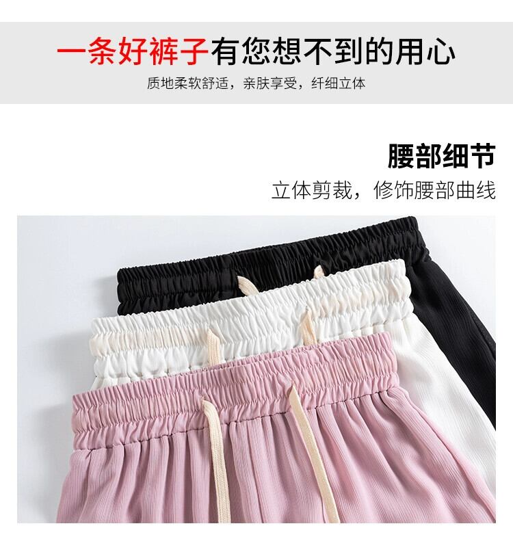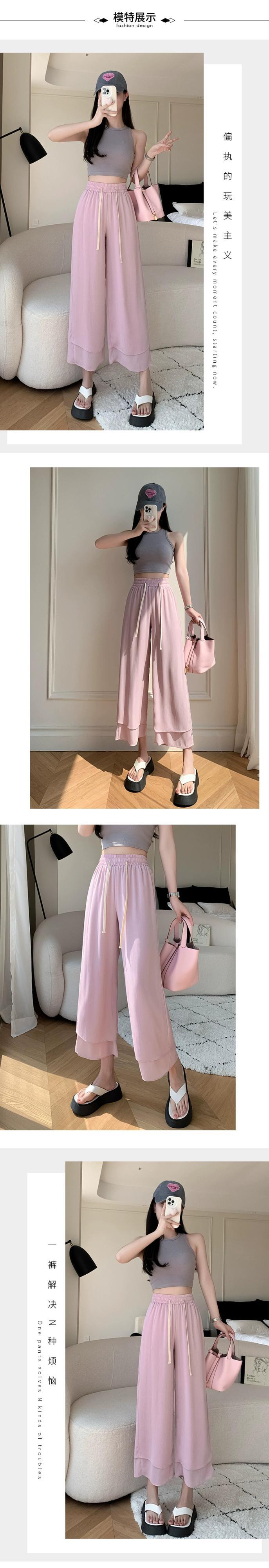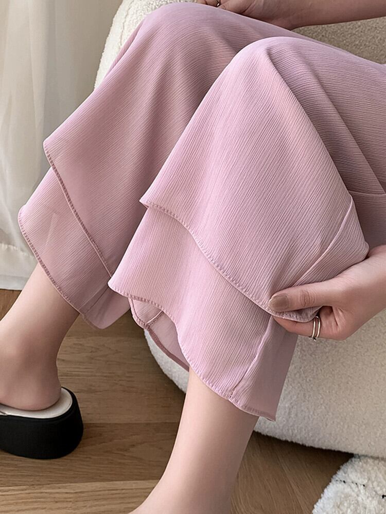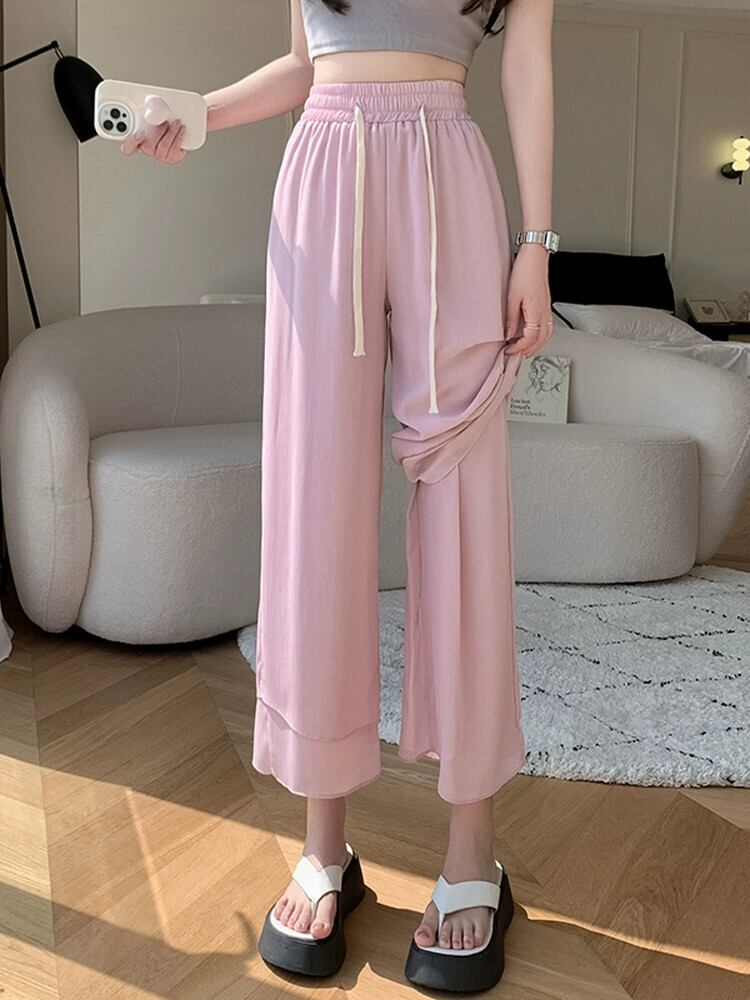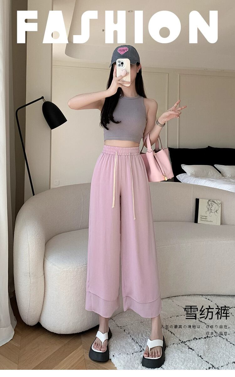 ピンクのエレガントなアイスシルクワイドレッグパンツ女性の夏の薄いセクション9点シフォンパンツ小さな背の高いウエストドレープカジュアルパンツ サマー 夏物 746002572877714 | framboise21