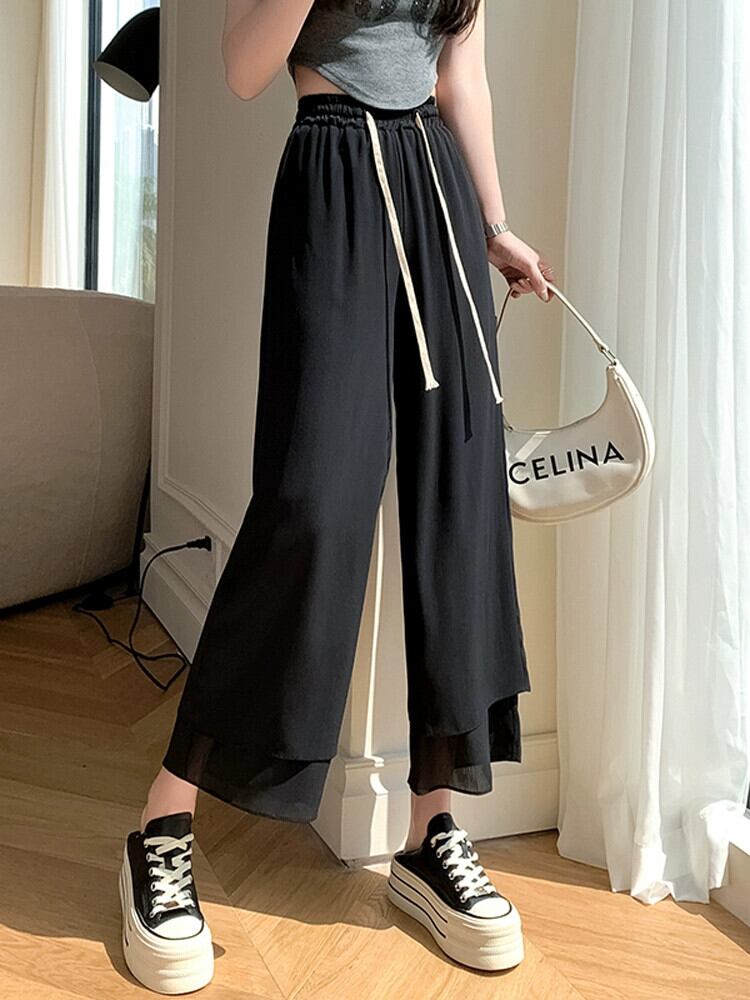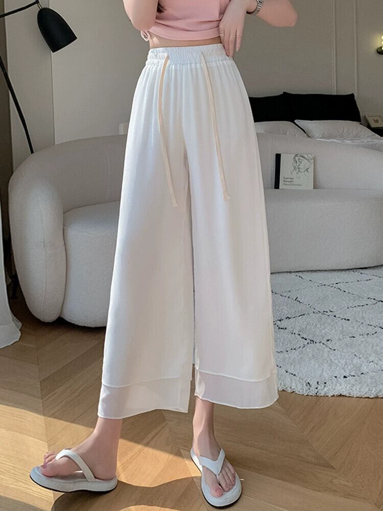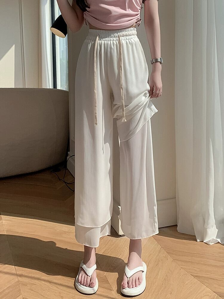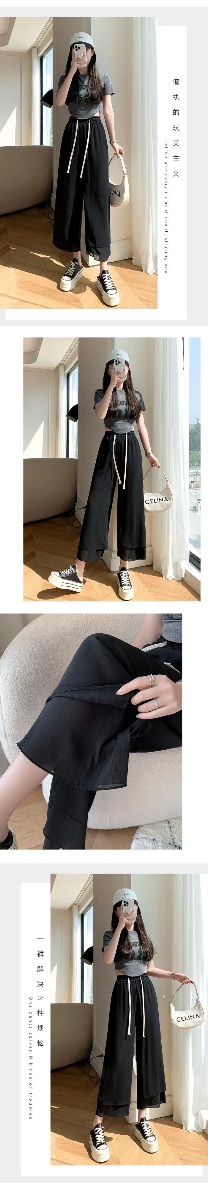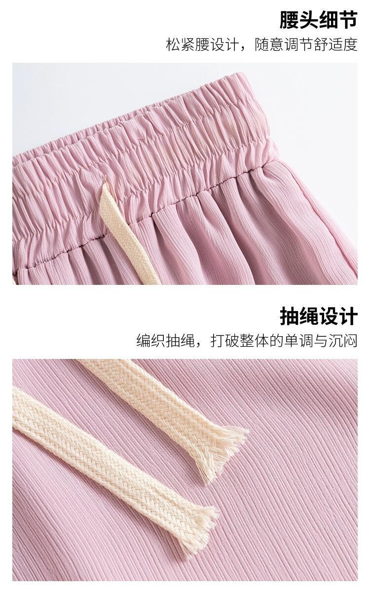 ピンクのエレガントなアイスシルクワイドレッグパンツ女性の夏の薄いセクション9点シフォンパンツ小さな背の高いウエストドレープカジュアルパンツ サマー 夏物 746002572877714 | framboise21