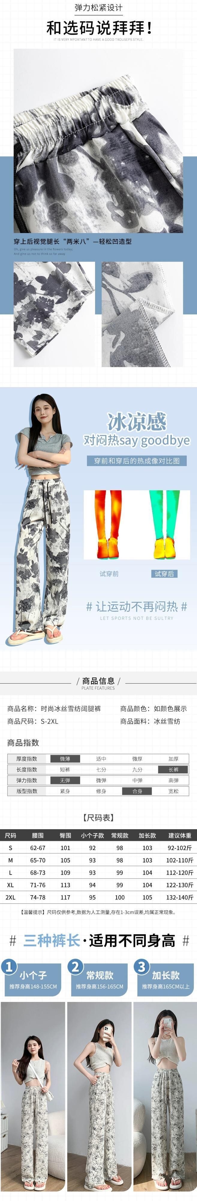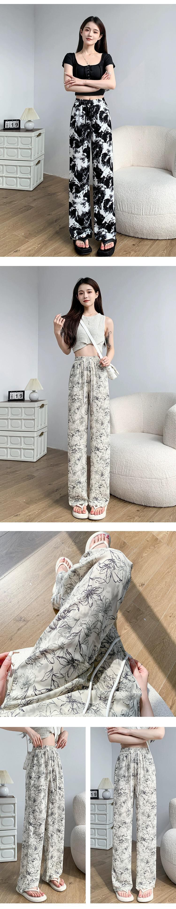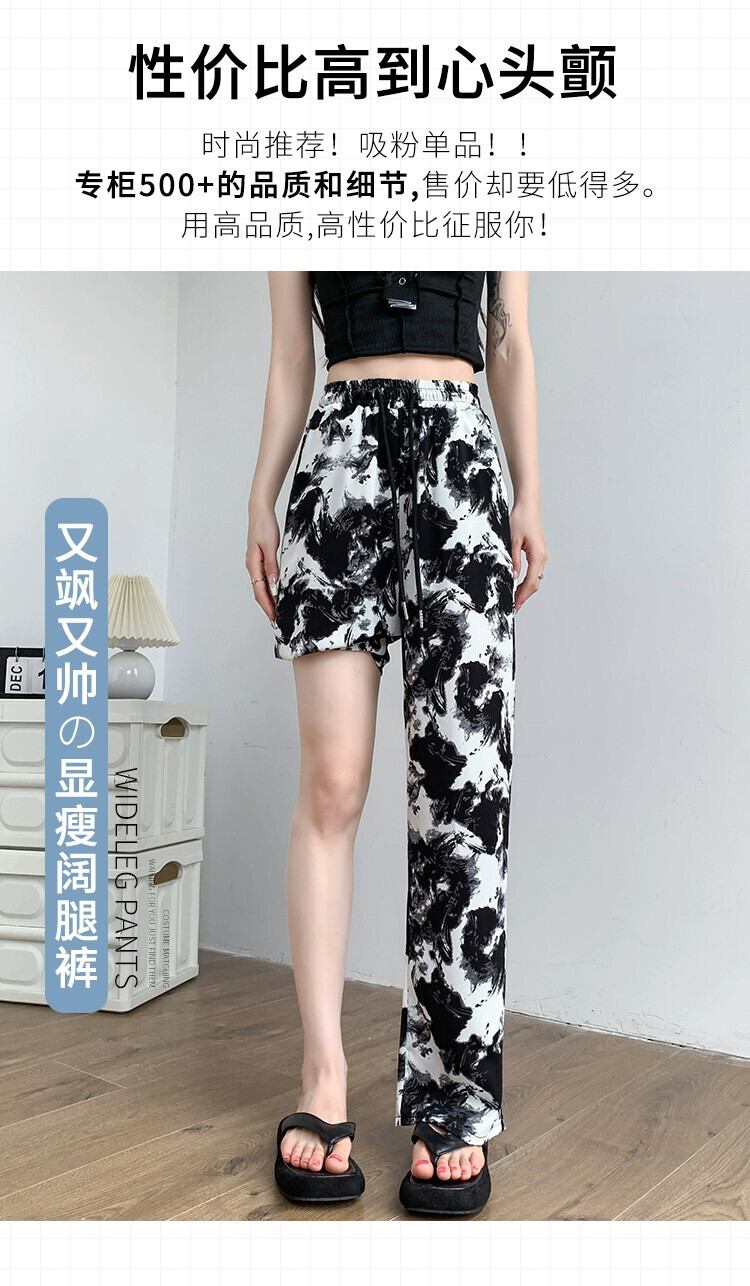 水墨画シフォンワイドレッグパンツレディース夏薄氷シルクモップタイダイロングパンツルーズドレープストレートレッグカジュアルパンツ サマー 夏物 7460072399737168 | framboise21