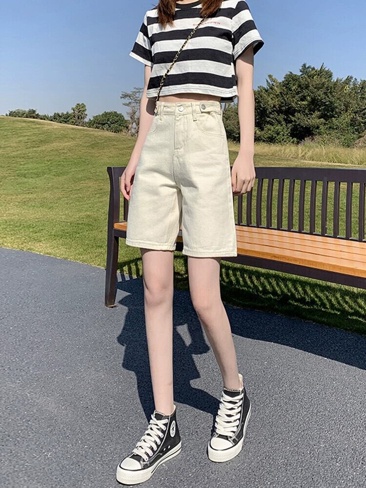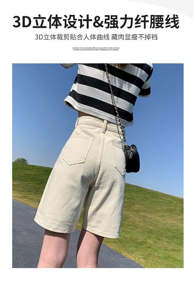 アプリコット 5 点デニム ショートパンツ レディース 夏 薄手 5 点パンツ ゆったり アウター オールマッチ ハイウエスト ワイドレッグ ストレート パンツ ハイウェスト サマー 夏物 ショーツ ブルマー 7460066400974789 | framboise21