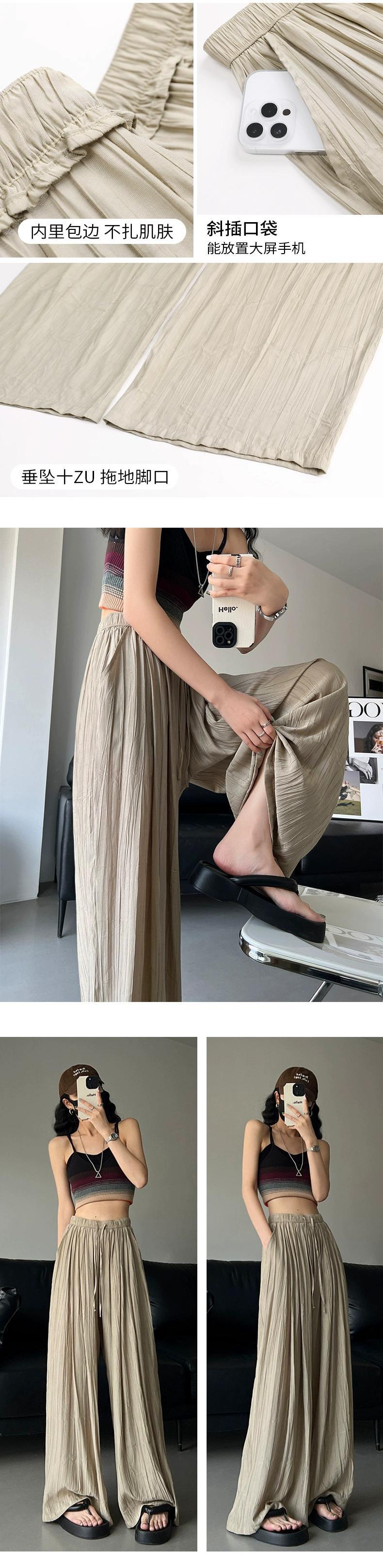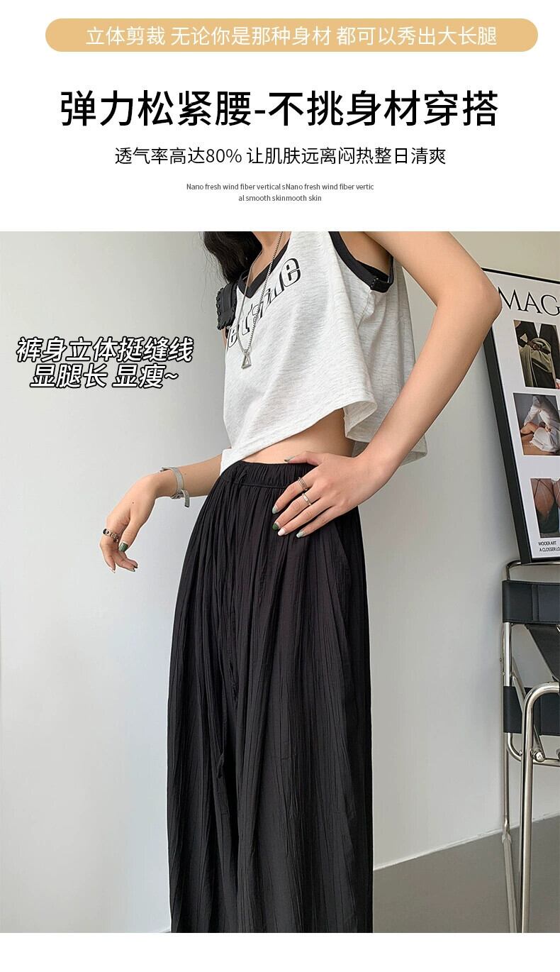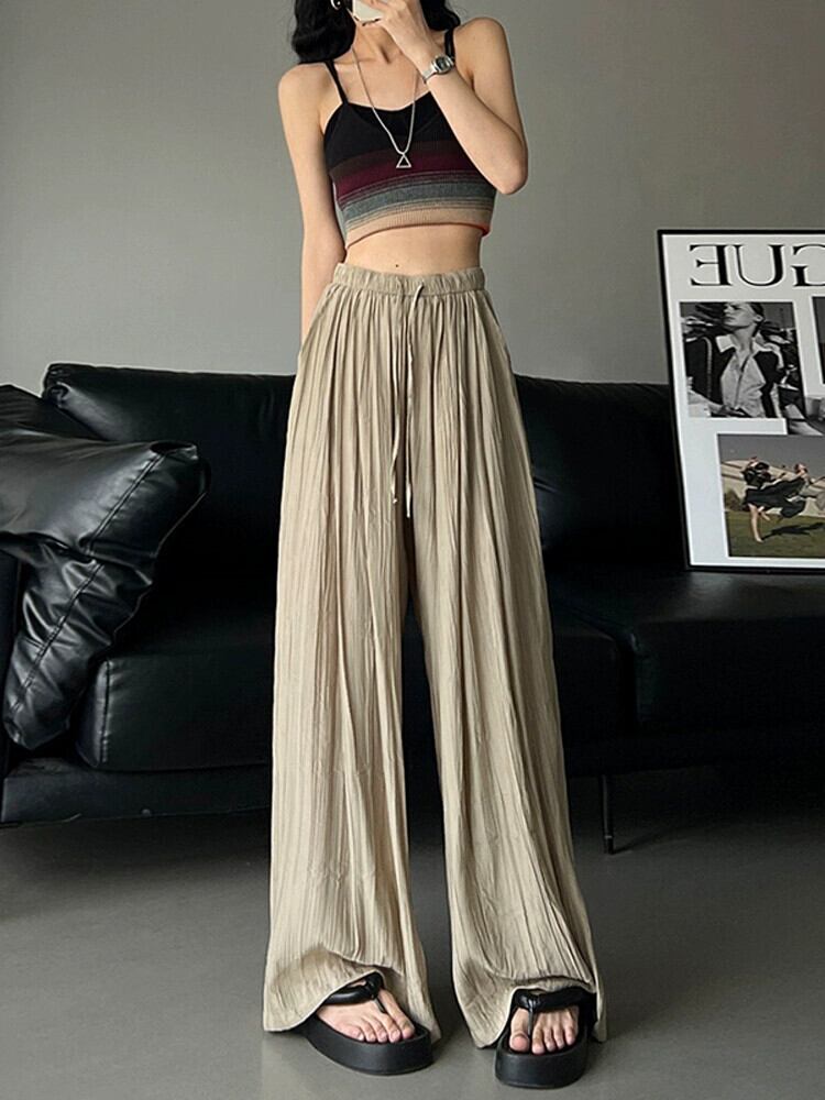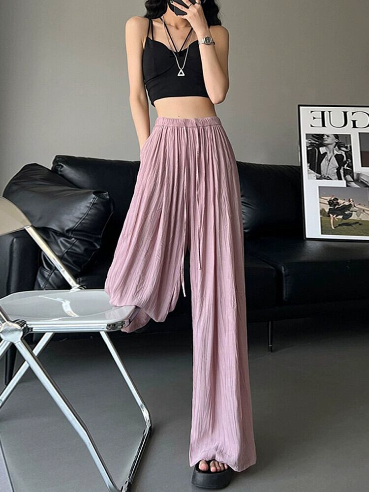 アイスシルクコットンとリネンのワイドレッグパンツレディース夏薄手リネンレディースパンツルーズで多用途なハイウエストプリーツドレープカジュアルパンツ ハイウェスト サマー 夏物 7460086895688314 | framboise21