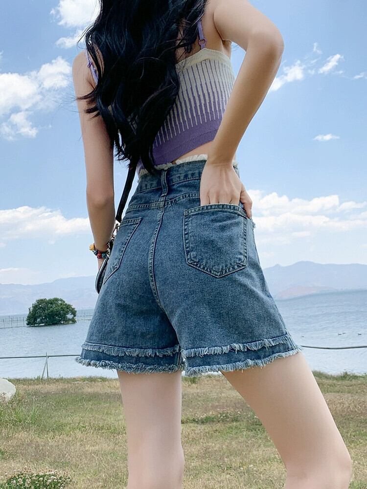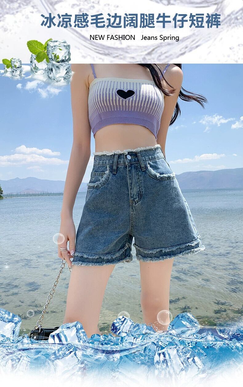 アイスシルク デニム ショートパンツ レディース 夏 薄手 ハイウエスト パンツ ルーズ アウター 小さな A ライン ワイドレッグ パンツ 切りっぱなしエッジ付き サマー 夏物 ショーツ ブルマー Aライン 7460043120187229 | framboise21