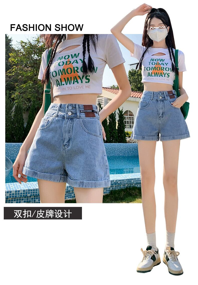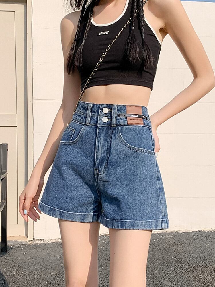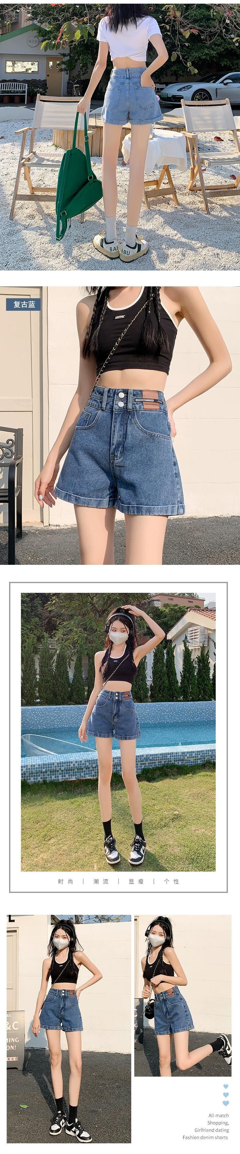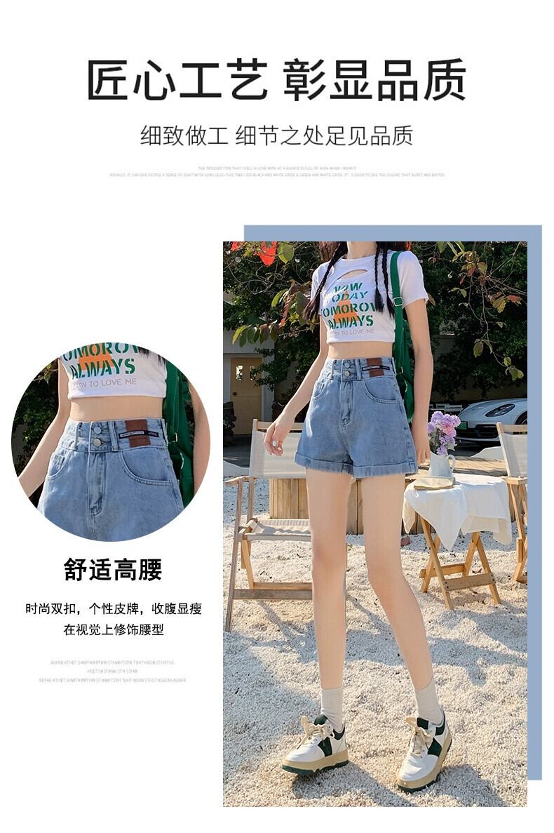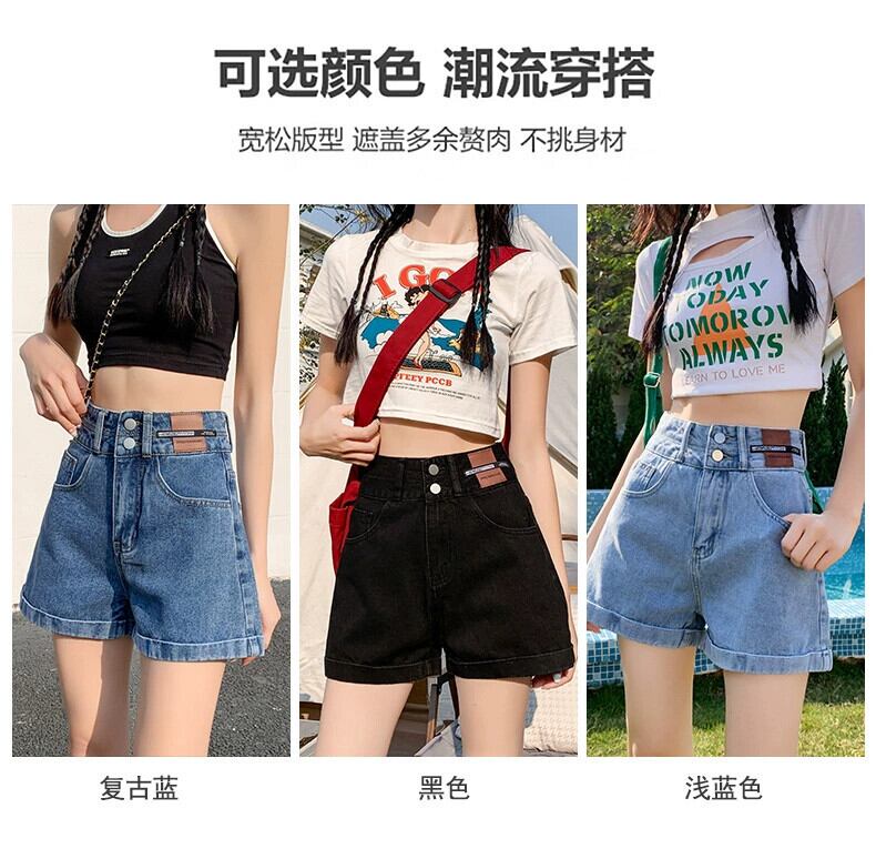 レトロブルー A ラインデニムショートパンツ女性の夏の 2023 新しいルーズオールマッチアウターネットレッドハイウエストワイドレッグパンツ ハイウェスト サマー 夏物 ショーツ ブルマー Aライン 7460051615571340 | framboise21