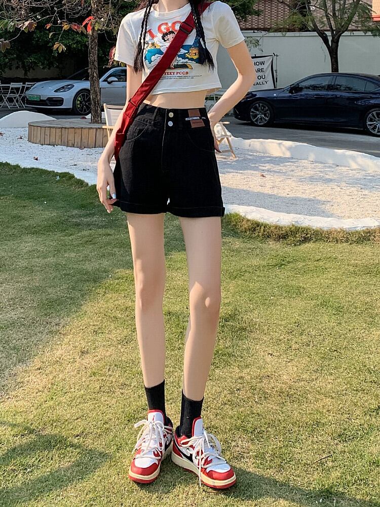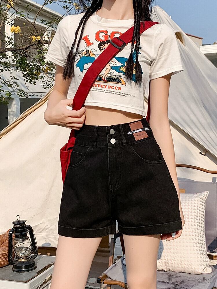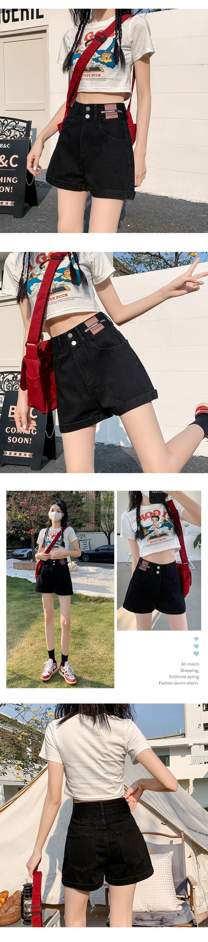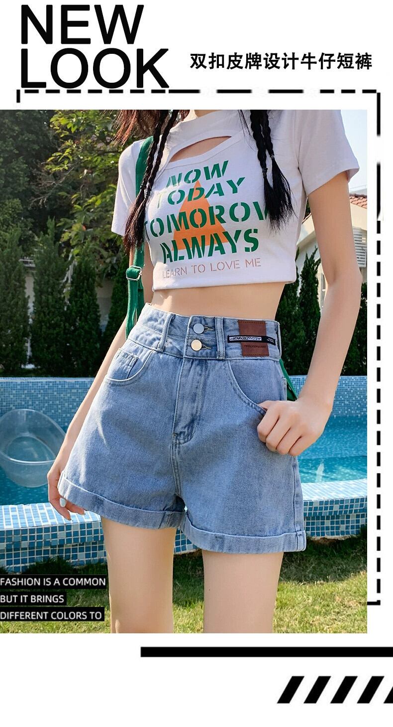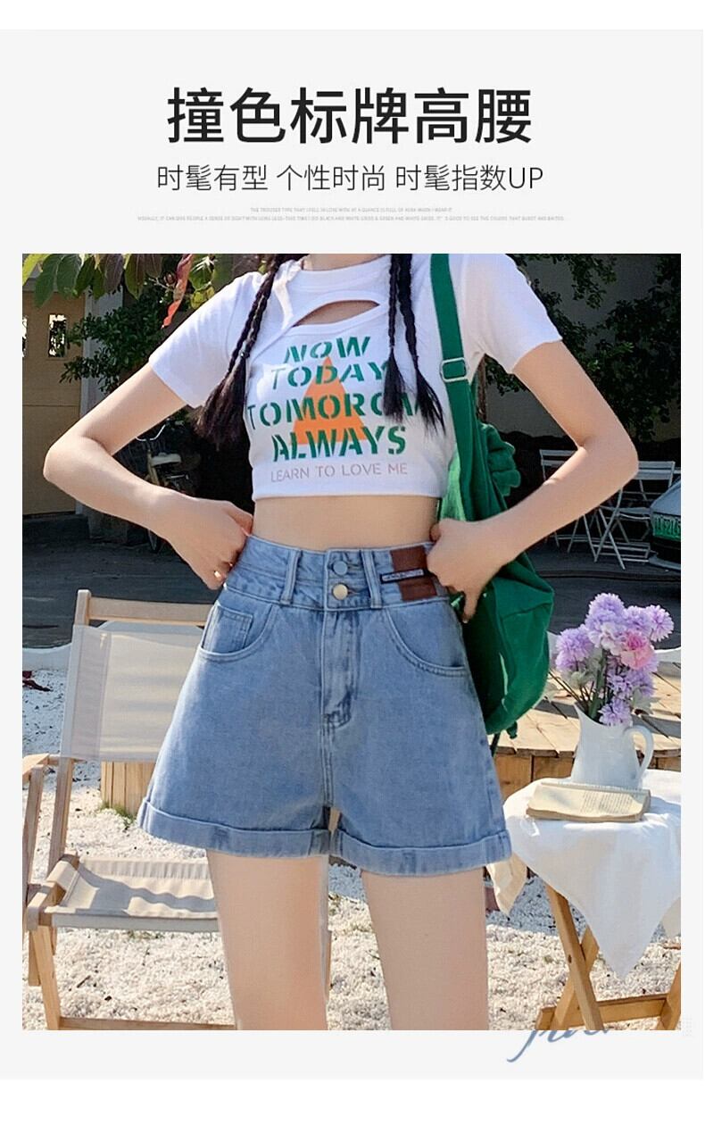 レトロブルー A ラインデニムショートパンツ女性の夏の 2023 新しいルーズオールマッチアウターネットレッドハイウエストワイドレッグパンツ ハイウェスト サマー 夏物 ショーツ ブルマー Aライン 7460051615571340 | framboise21