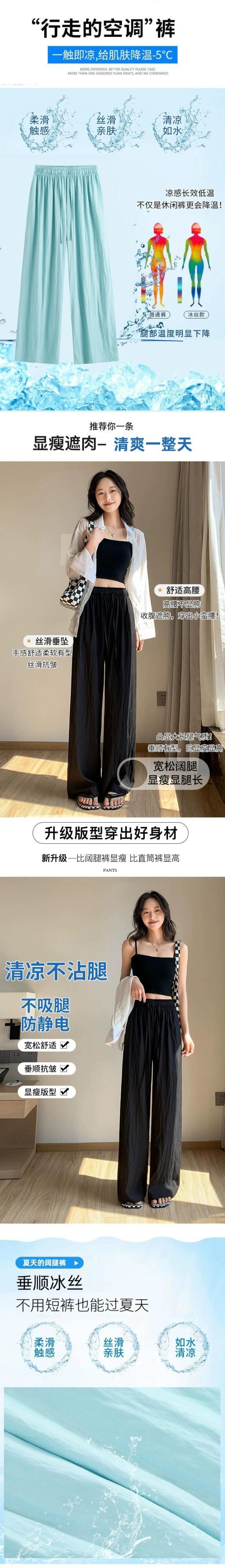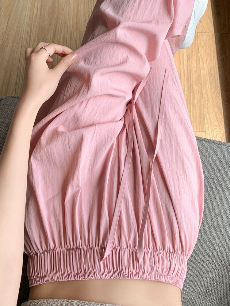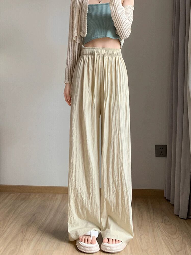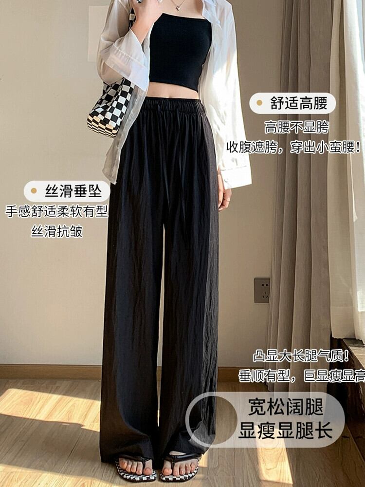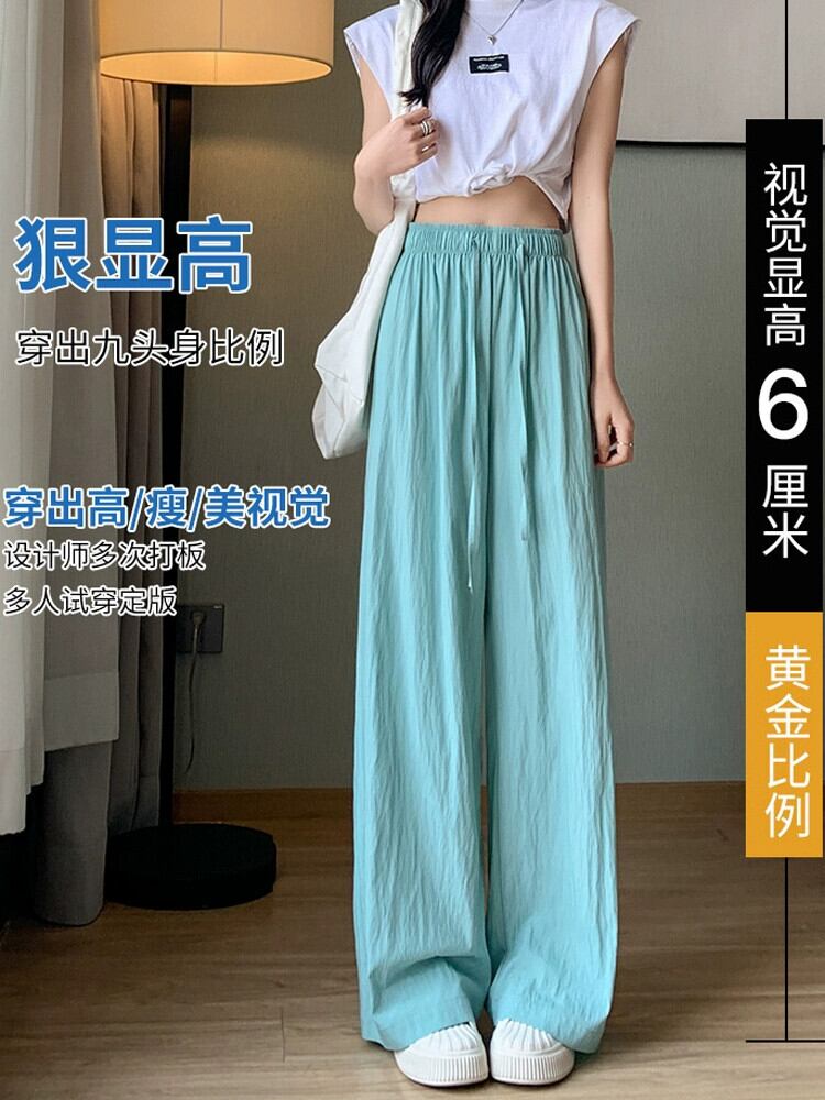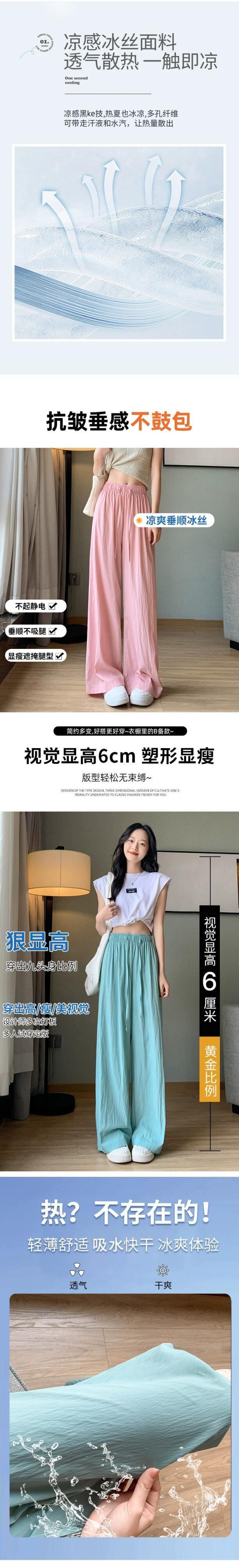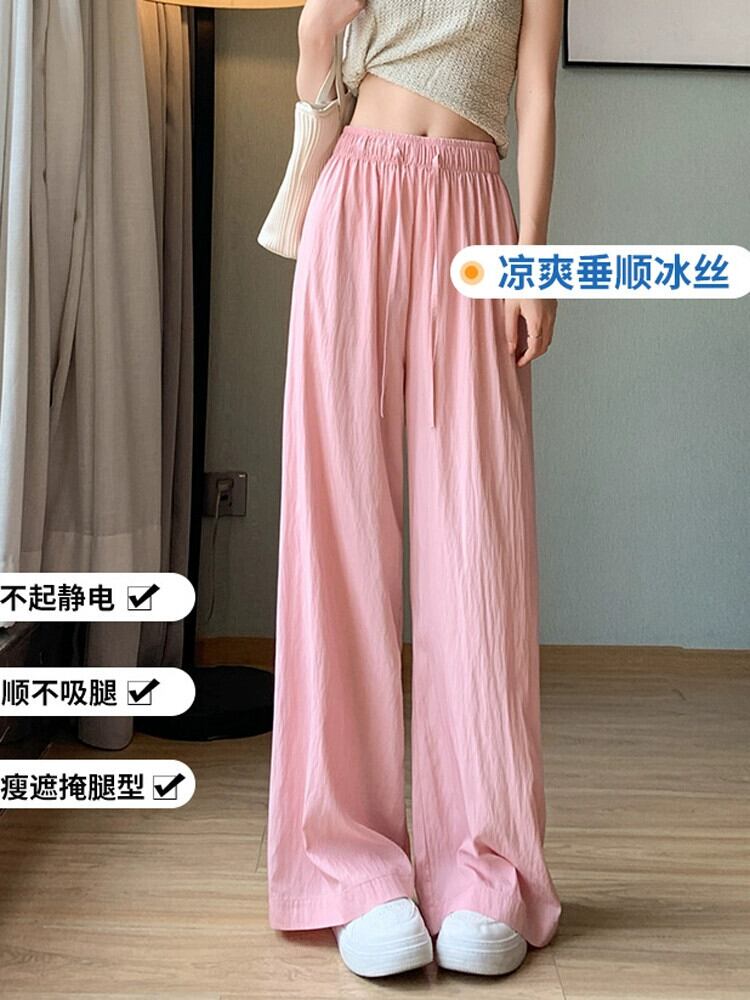 アイスシルクドレープワイドレッグパンツレディース夏薄いピンクテクスチャードパンツルーズスリムハイウエストモップカジュアルパンツ ハイウェスト レッド サマー 夏物 7460027952752395 | framboise21
