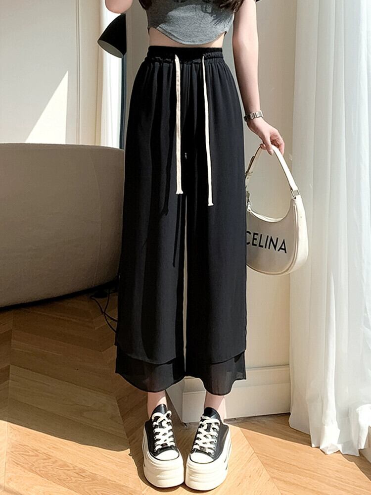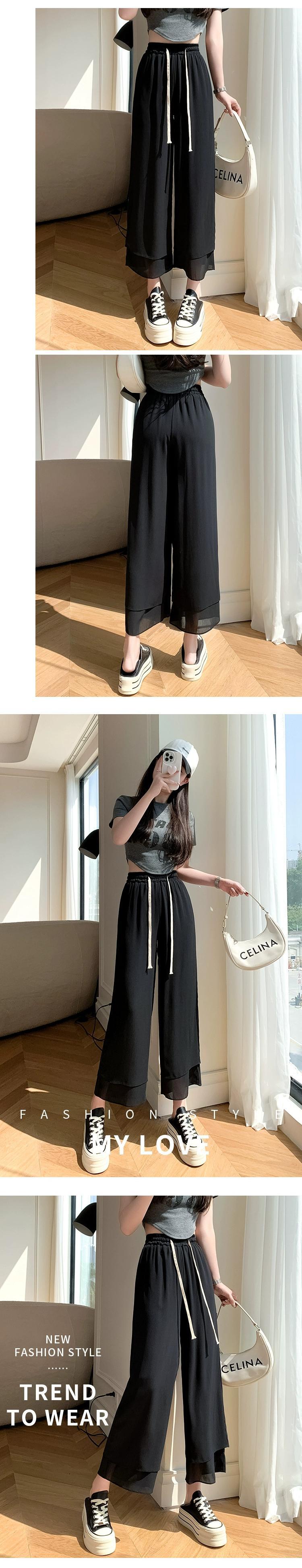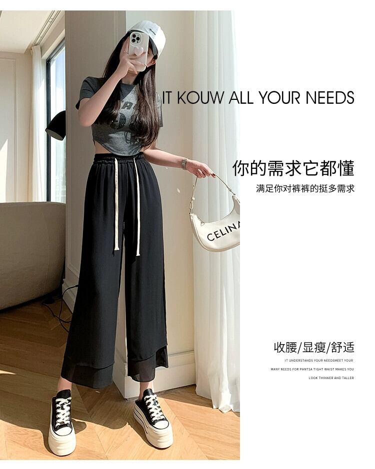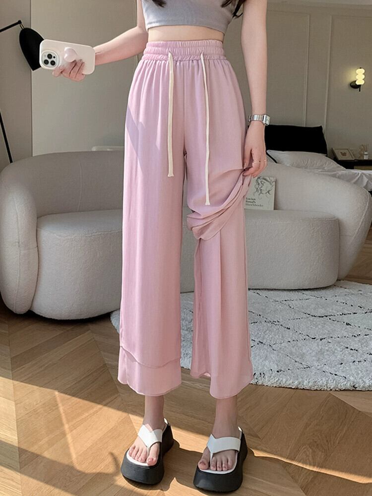 アイスシルクシフォンワイドレッグパンツレディース2023夏新作小さいストレート薄いセクション9ポイントパンツカジュアルハイウエストパンツ サマー 夏物 7460088765508580 | framboise21