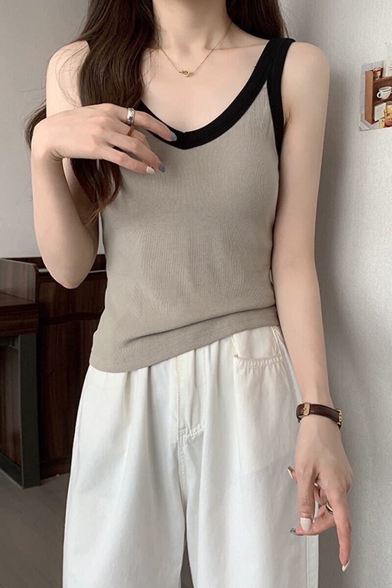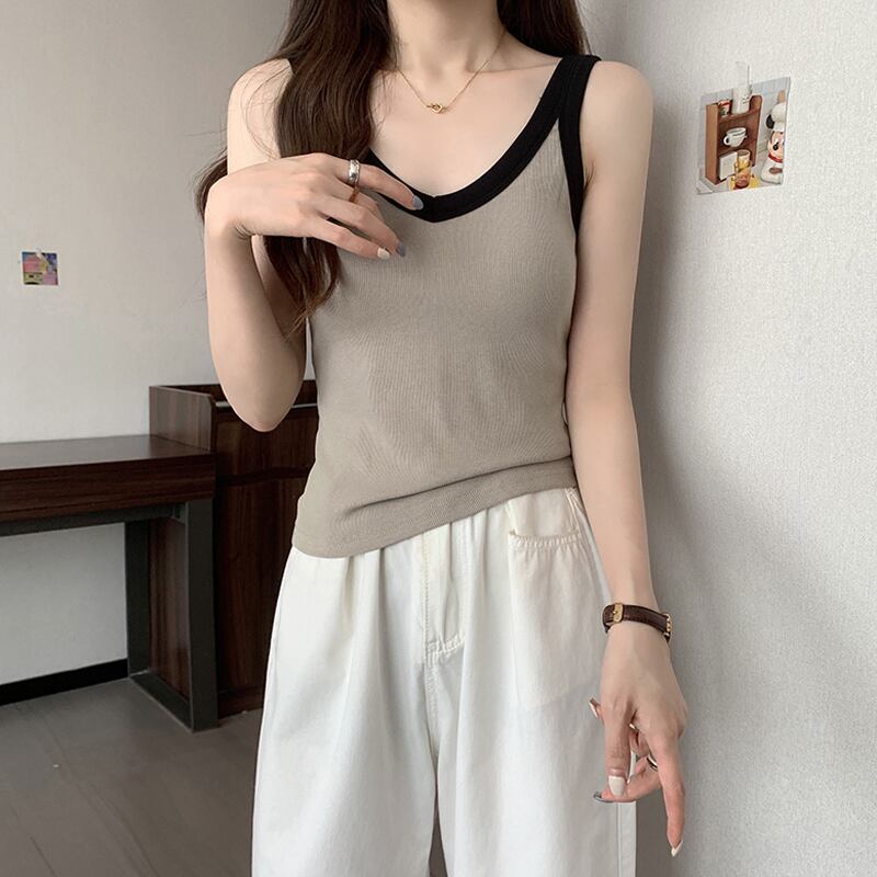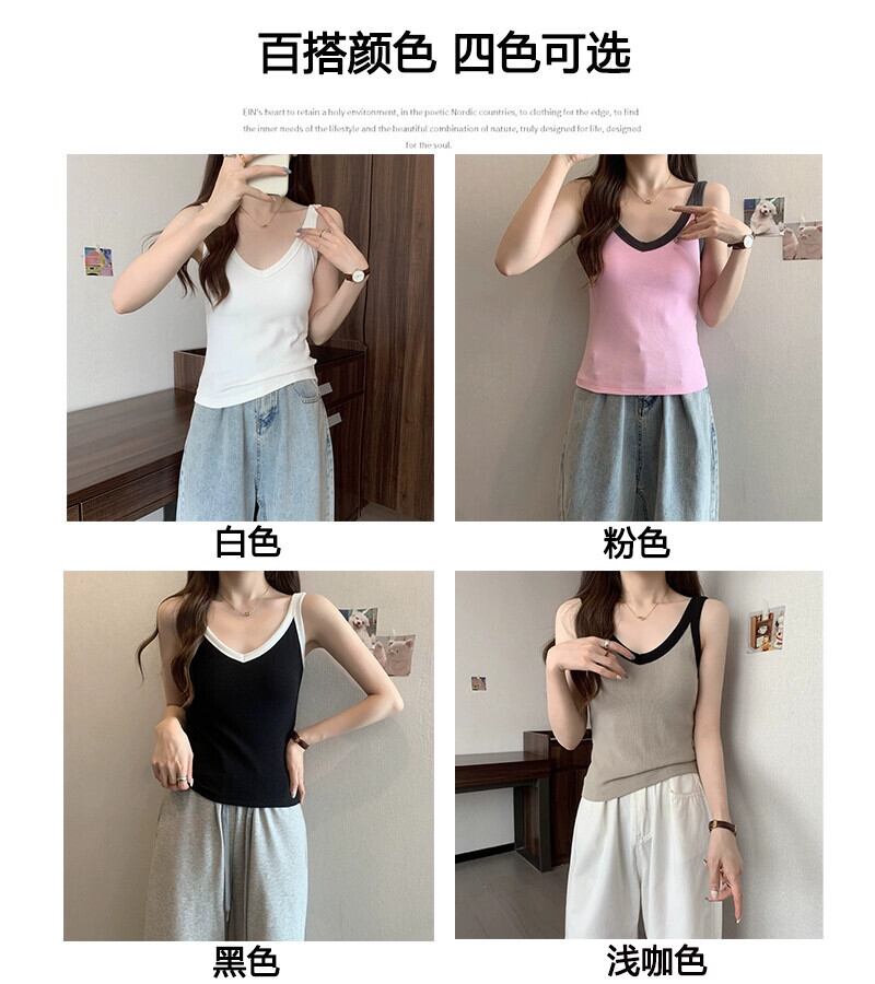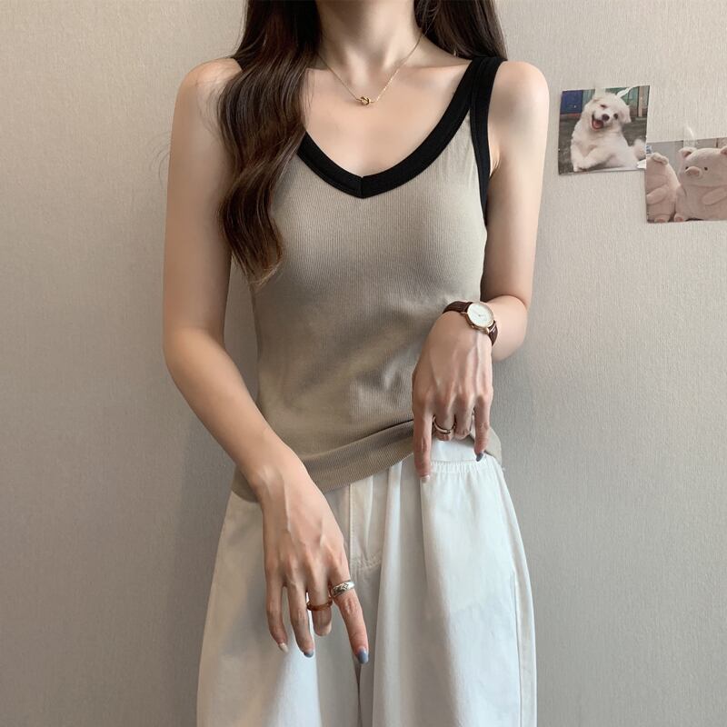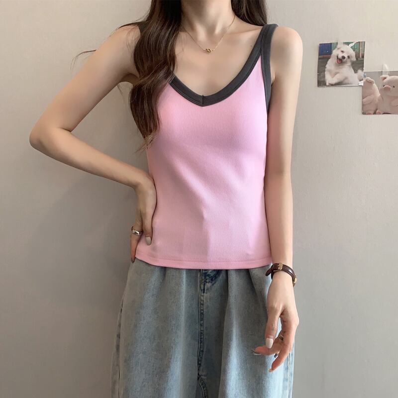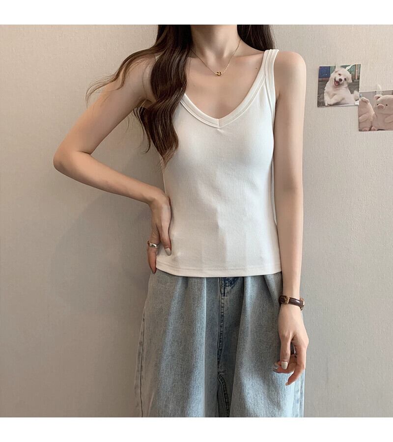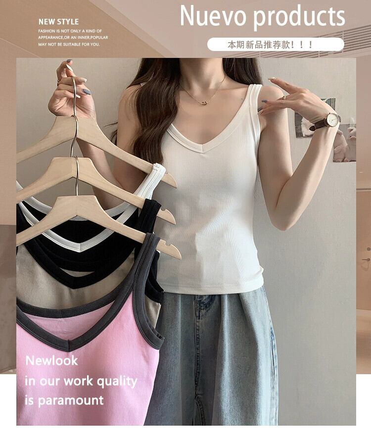 V ネック キャミソール 胸パッド付き レディース 夏 インナー スリム 小さめ アウター 胸カバー ショート ノースリーブ 小さめ トップス 半袖 ハーフスリーブ サマー 夏物 Vネック 7460092723677164 | framboise21