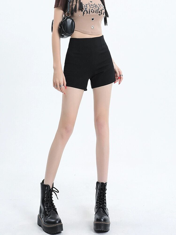 黒のaラインショーツ女性の夏のアウターハイウエスト弾性パンツ小さなセクシーな薄いタイトなパンツ ハイウェスト ブラック エラスティック 伸縮 サマー 夏物 ブルマー 7460010784375160 | framboise21