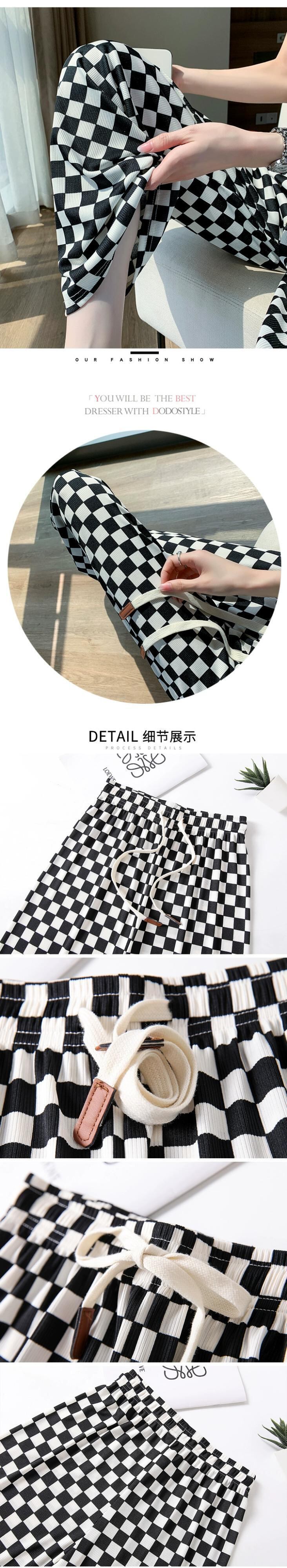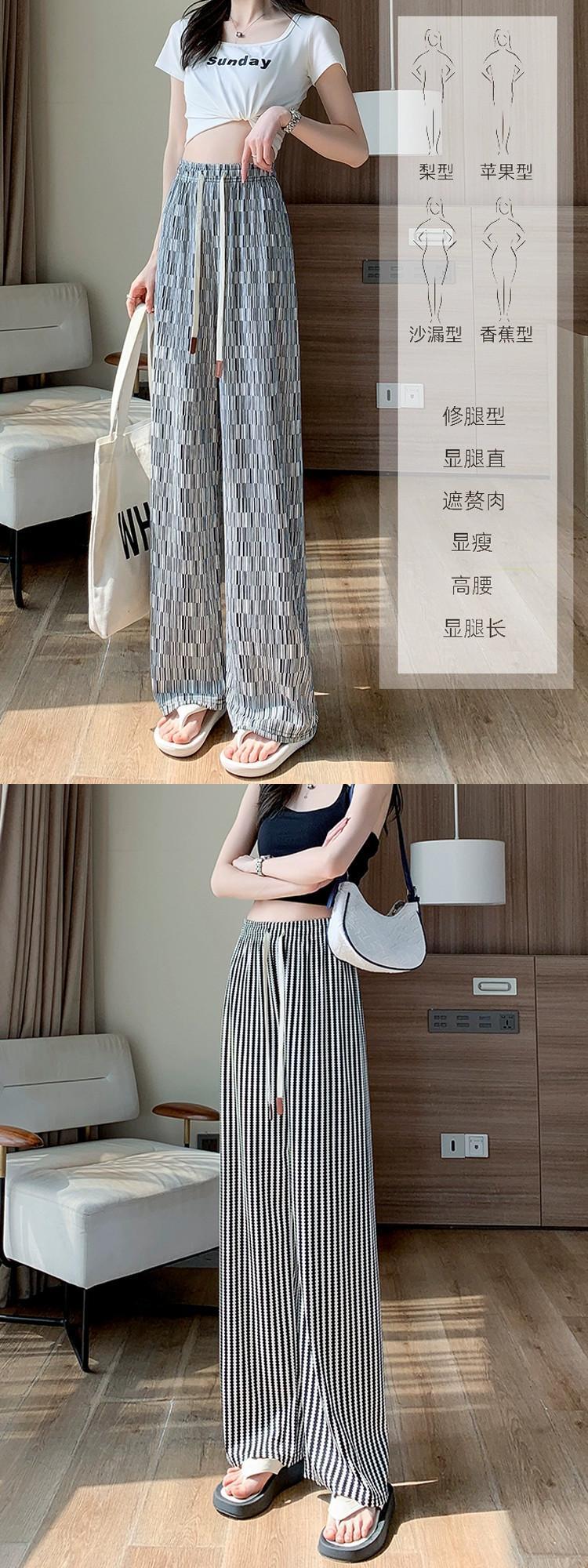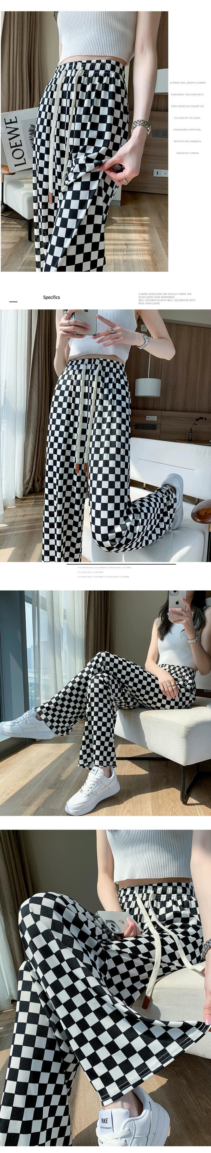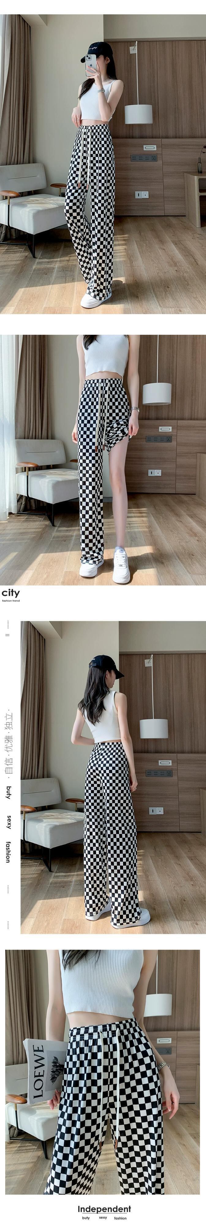 黒と白の小さな格子アイスシルクの女性のズボン夏薄いセクションハイウエストワイドレッグパンツルーズスリムドレープストレートカジュアルパンツ ハイウェスト ホワイト ブラック サマー 夏物 7460053734331497 | framboise21