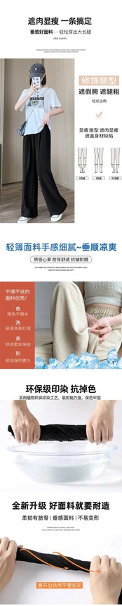 薄氷シルクプリーツワイドレッグパンツレディース夏ルーズカジュアルストレート日焼け止めロングパンツドレープハイウエストモップパンツ ハイウェスト サマー 夏物 7460060993477029