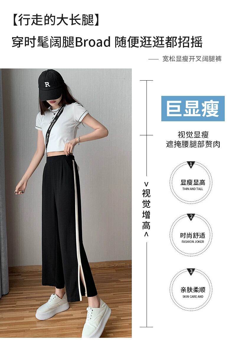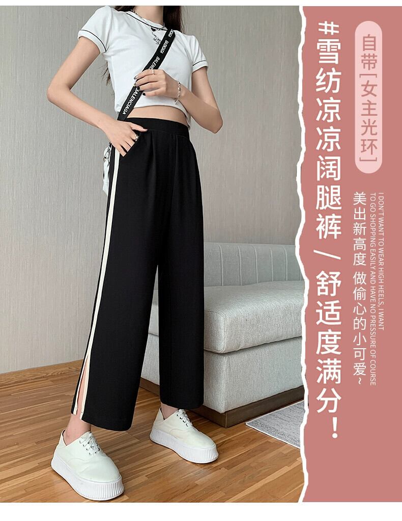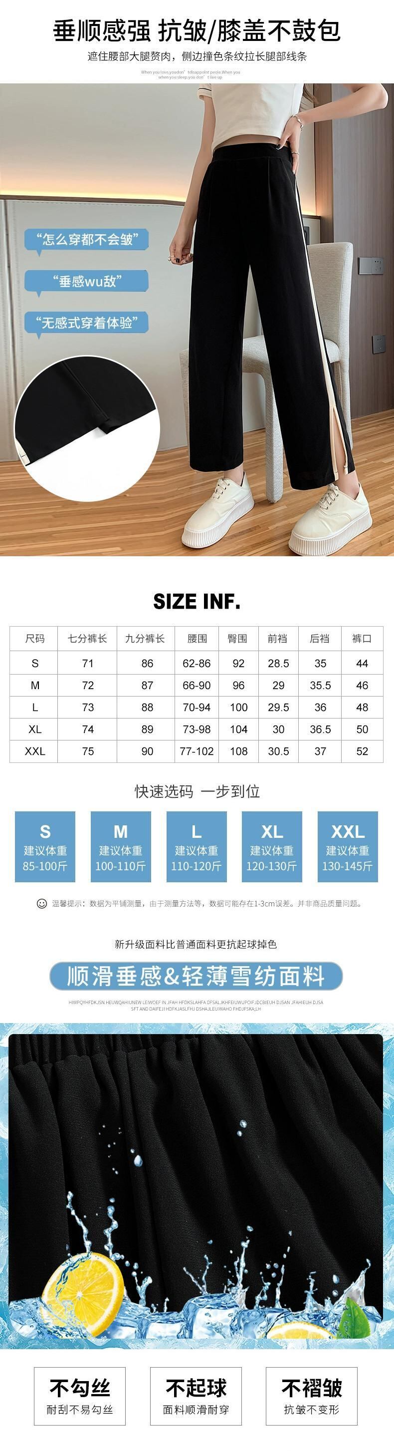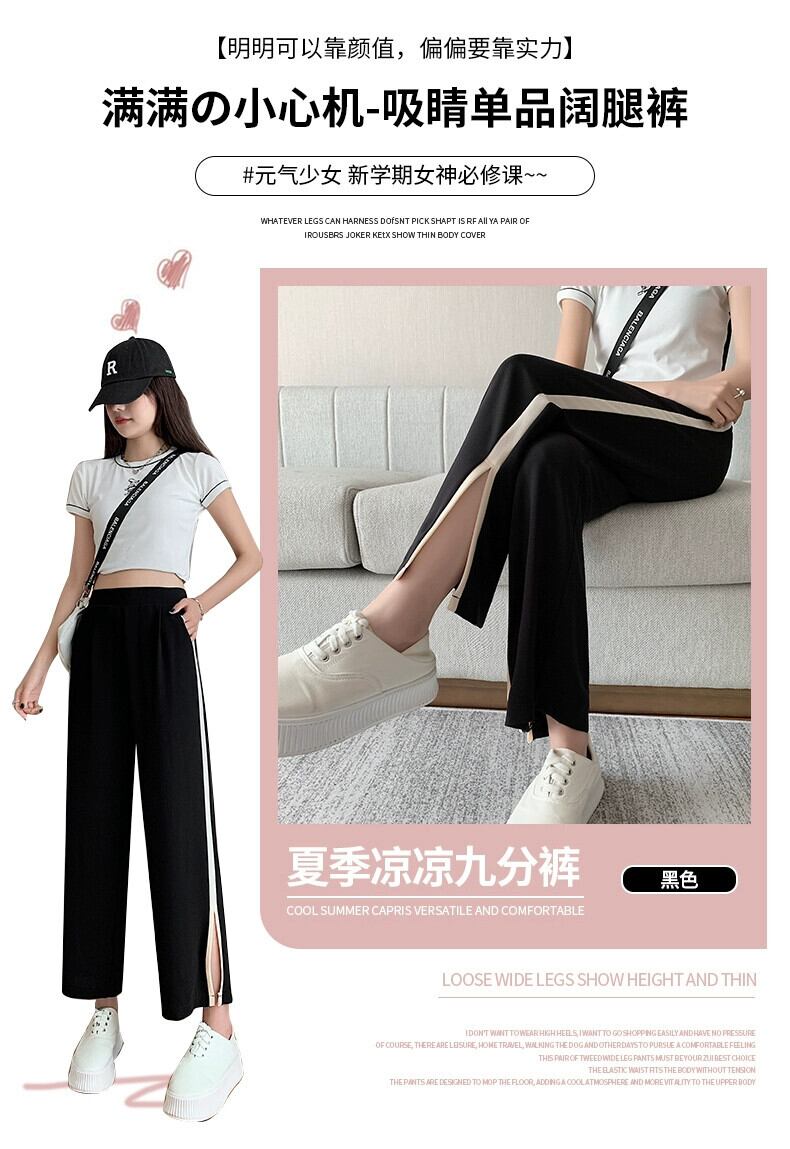 スリットアイスシルクワイドレッグパンツレディース夏薄手シフォン9点パンツ小さいゆったりハイウエストストレートカジュアルパンツ ハイウェスト サマー 夏物 7460067384735395 | framboise21