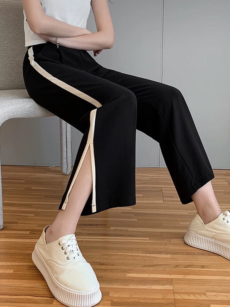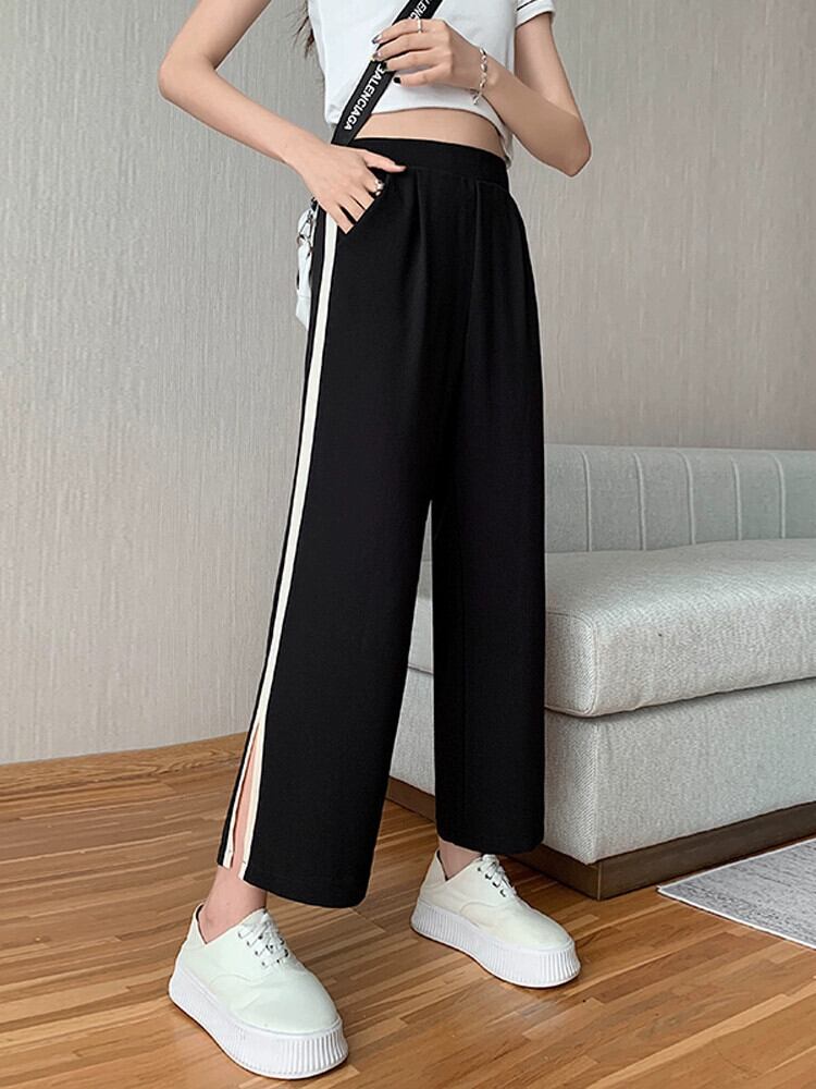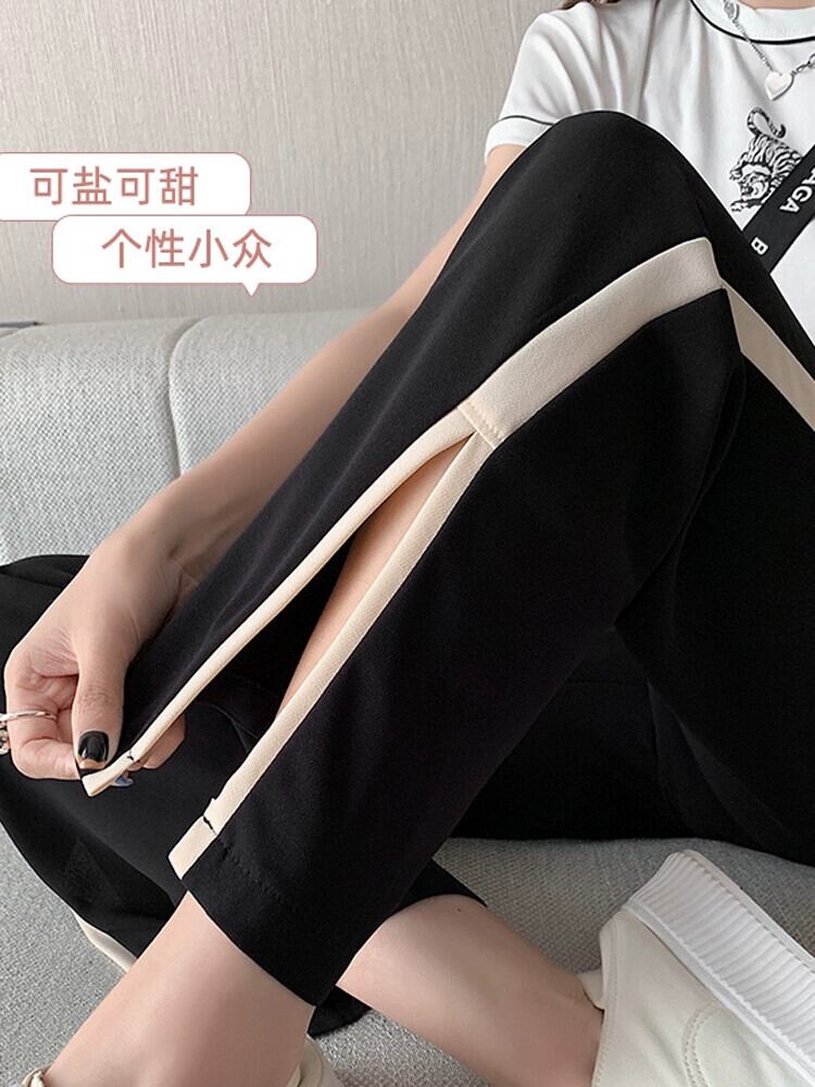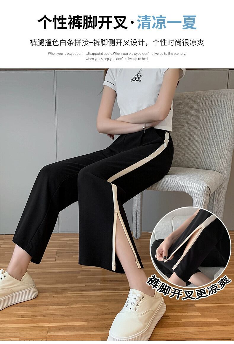 スリットアイスシルクワイドレッグパンツレディース夏薄手シフォン9点パンツ小さいゆったりハイウエストストレートカジュアルパンツ ハイウェスト サマー 夏物 7460067384735395 | framboise21