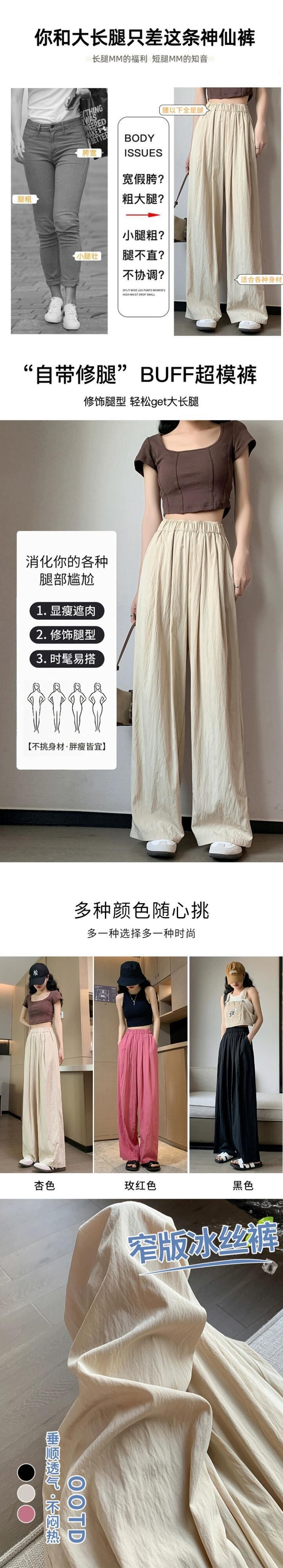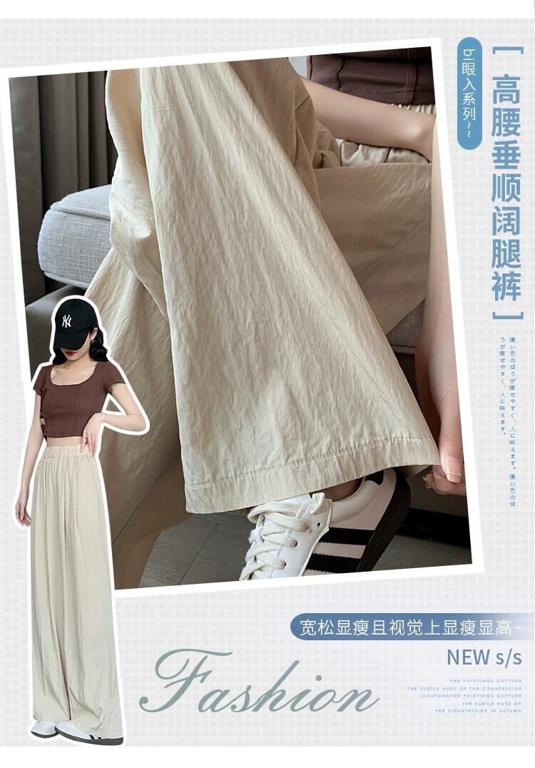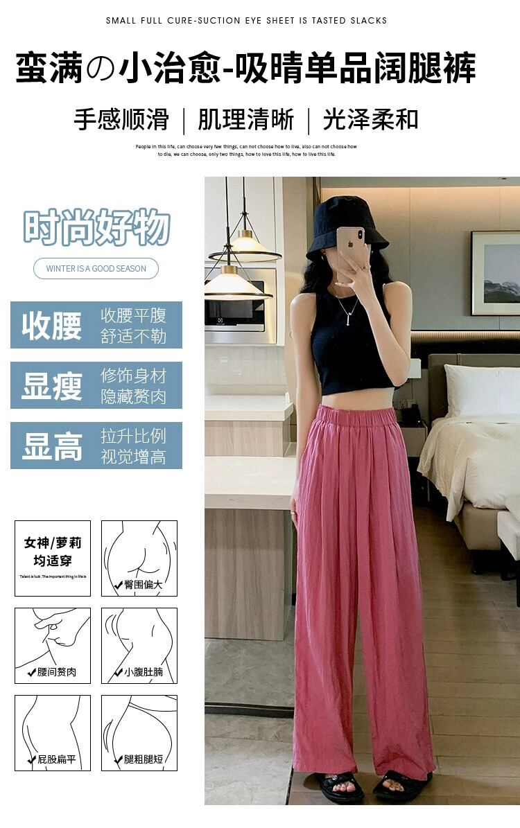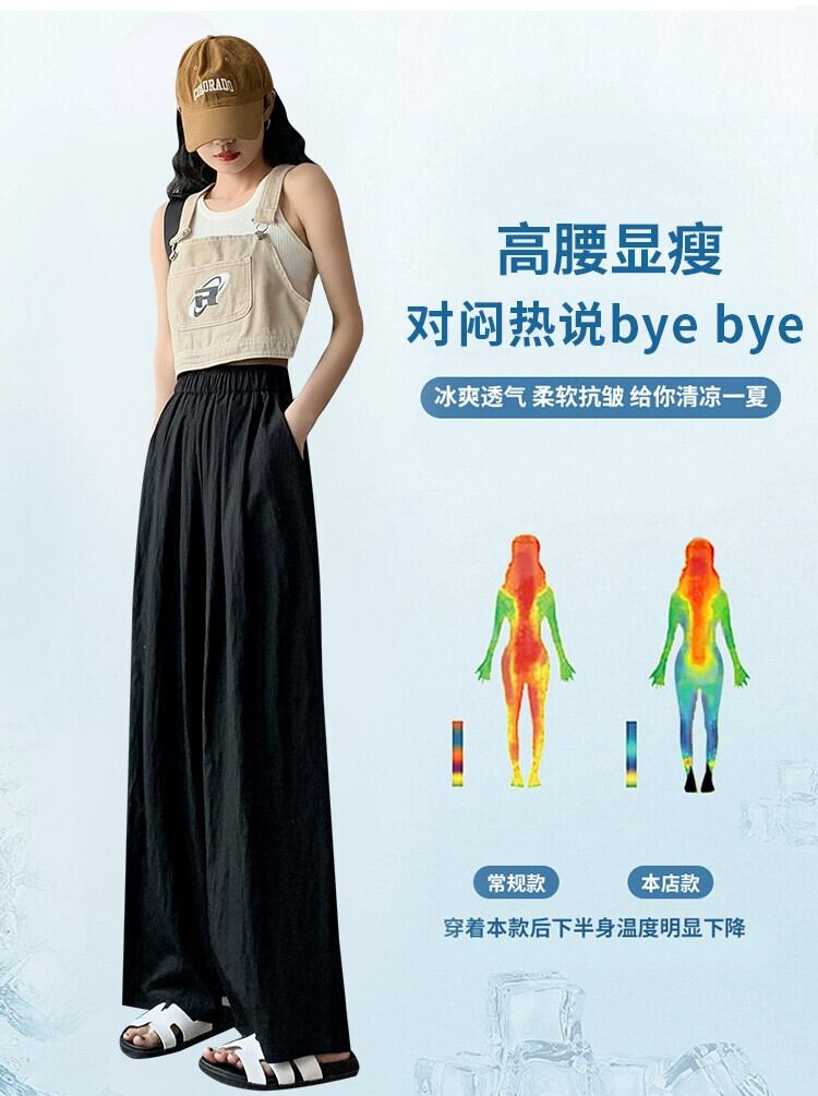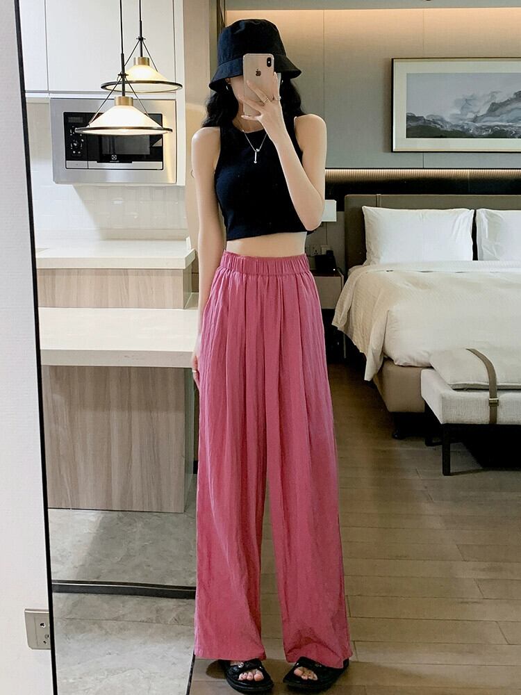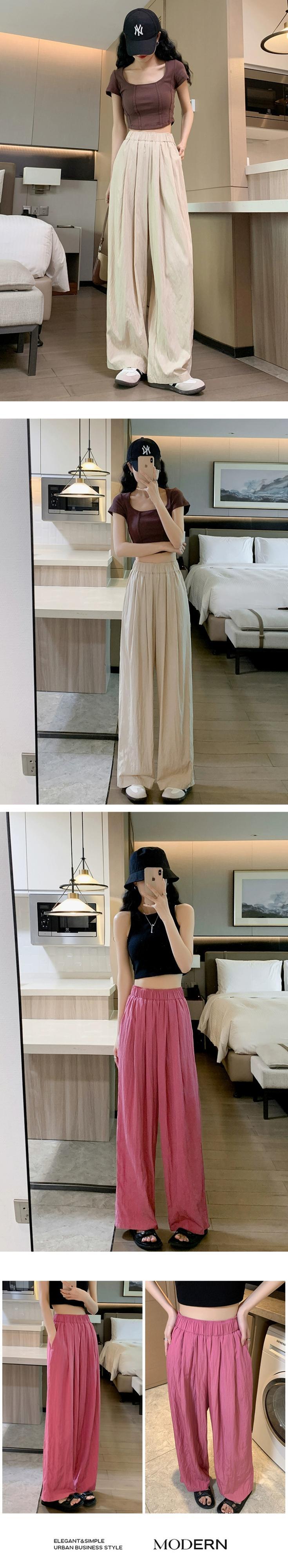 コットンとリネンのカジュアルパンツ、レディース夏薄氷シルクワイドレッグパンツ怠惰な風ルーズオールマッチナローバージョンプリーツモップパンツ サマー 夏物 7460082554458112 | framboise21