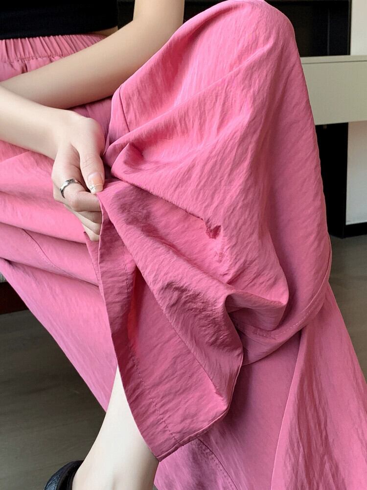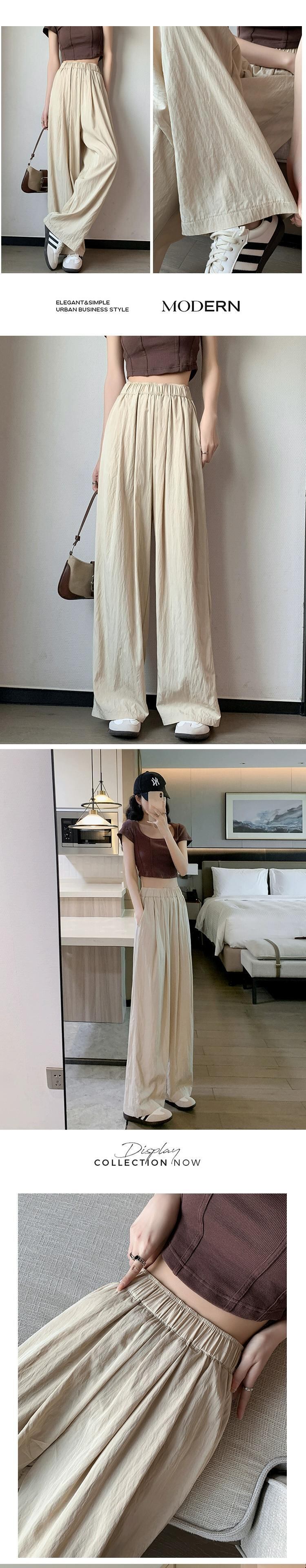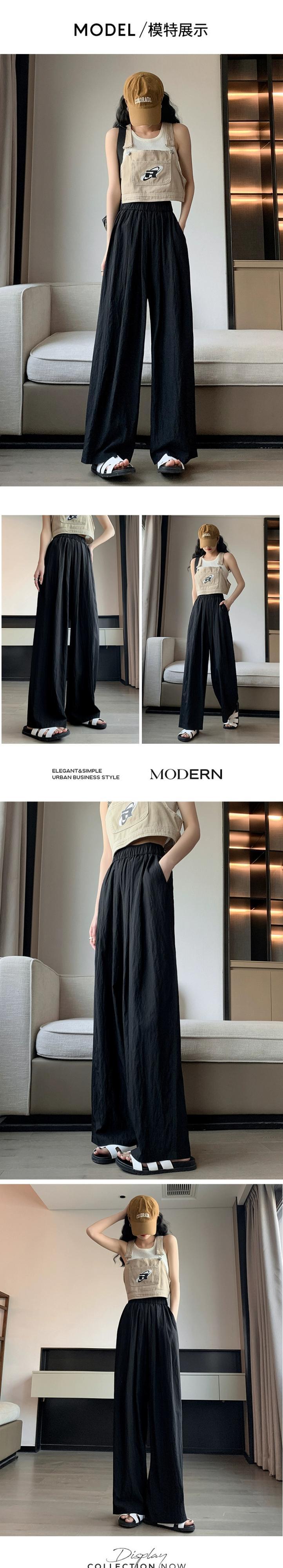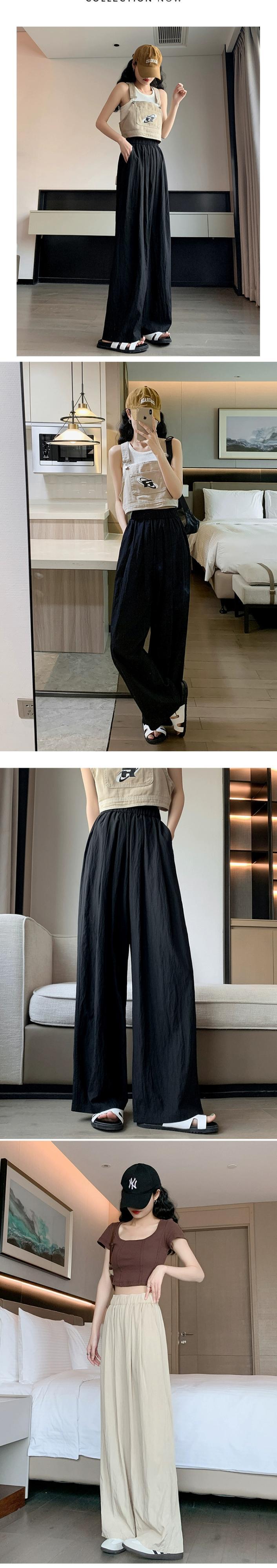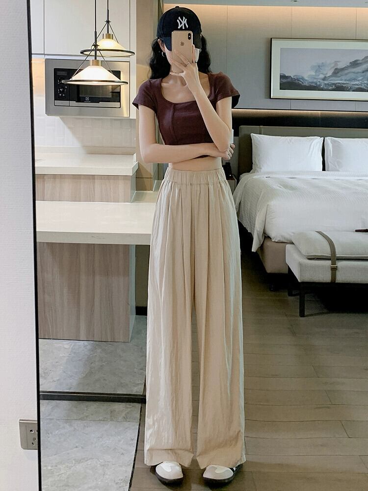 コットンとリネンのカジュアルパンツ、レディース夏薄氷シルクワイドレッグパンツ怠惰な風ルーズオールマッチナローバージョンプリーツモップパンツ サマー 夏物 7460082554458112 | framboise21