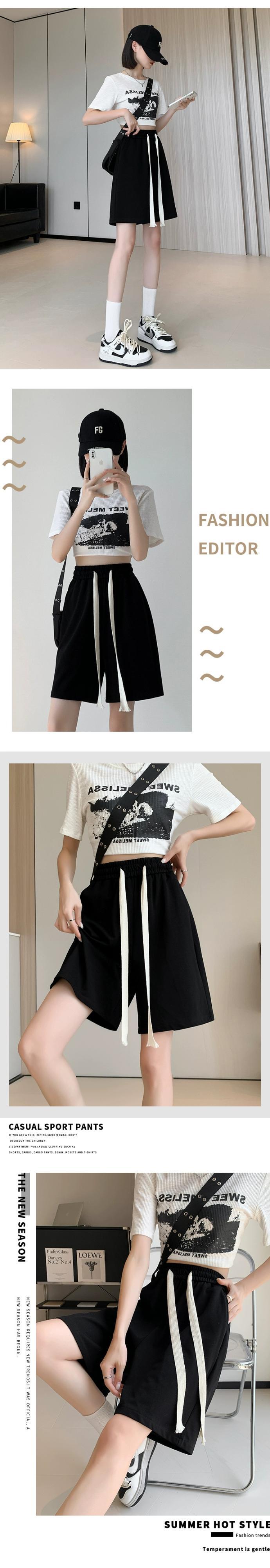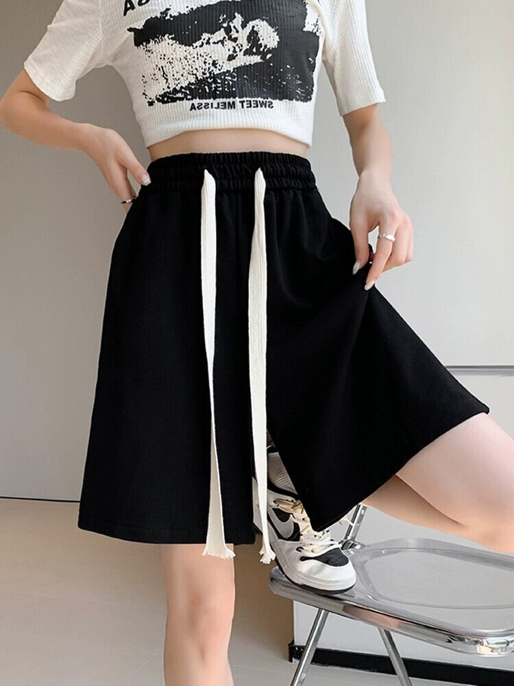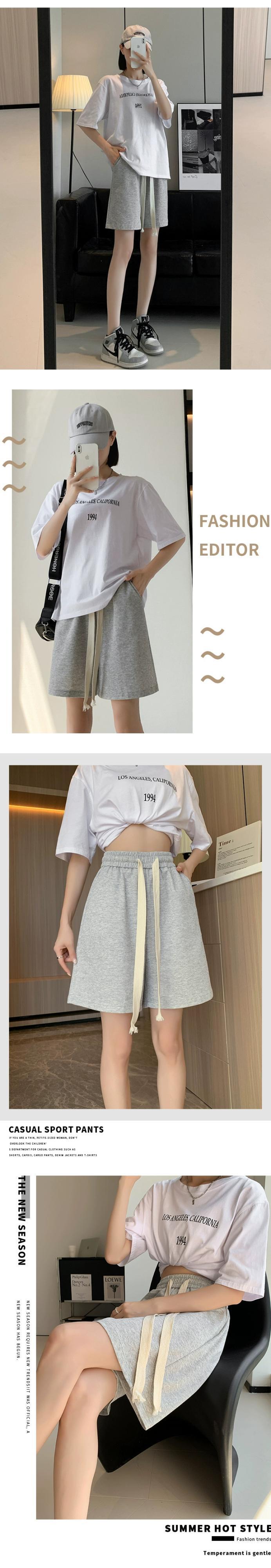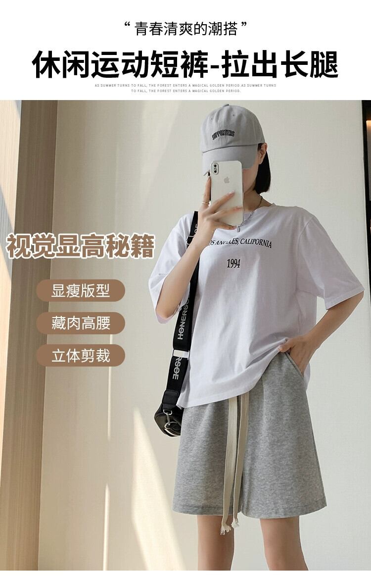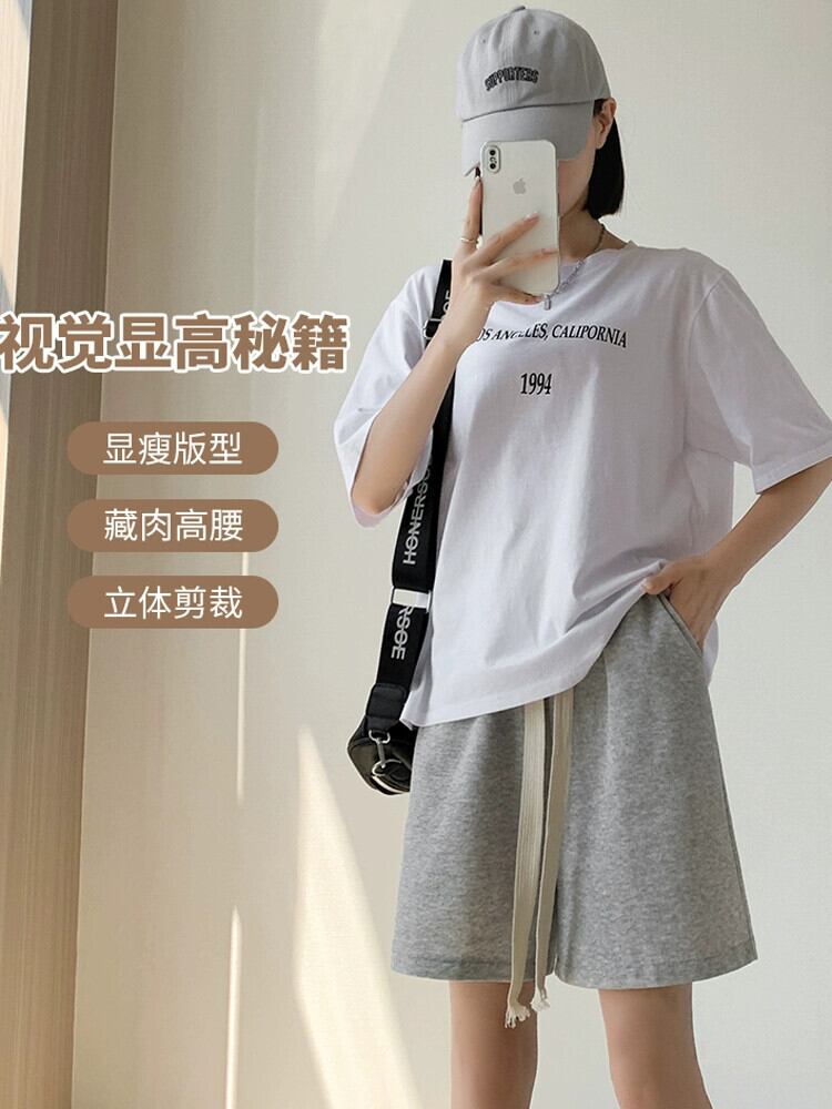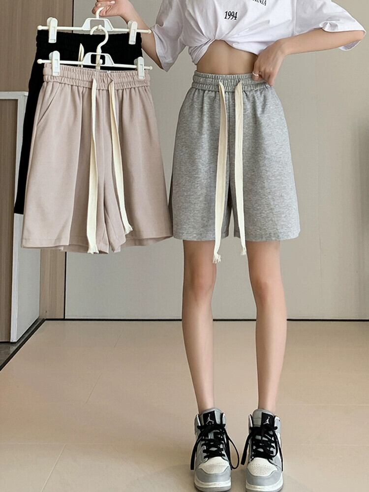 グレーの薄いスポーツショーツ女性の夏の新しいハイウエストミッドパンツ 5 点パンツルーズアウターストレートカジュアルパンツ サマー 夏物 ブルマー 7460045094741541 | framboise21