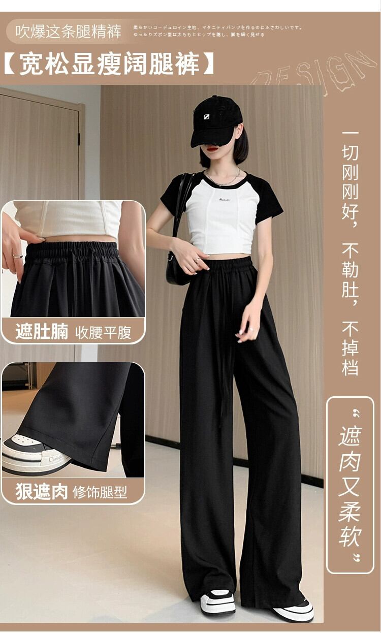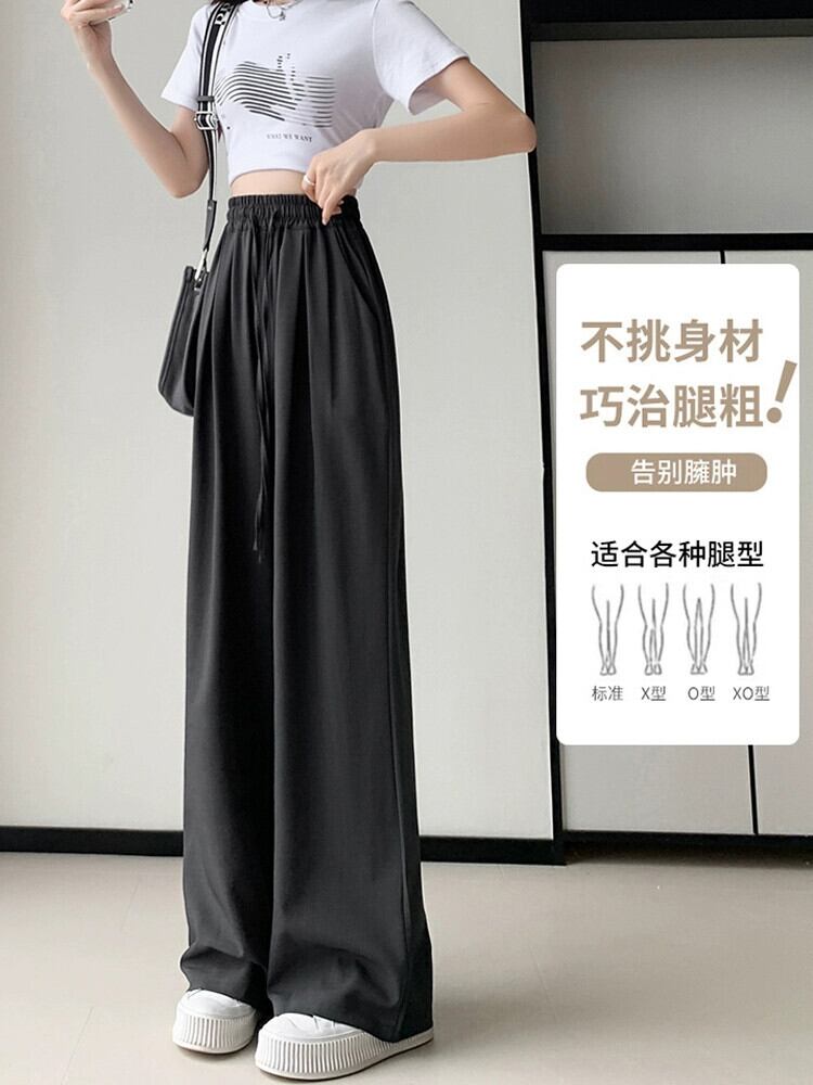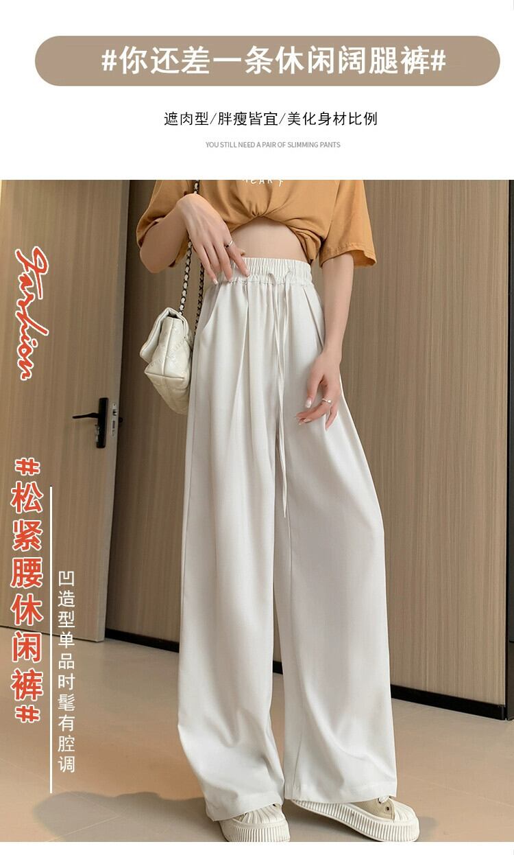 アイスシルクワイドレッグパンツレディース夏薄手ルーズストレートリネンレディースパンツスリムハイウエストドレープカジュアルコットンリネンパンツ ハイウェスト サマー 夏物 7460093426990183 | framboise21