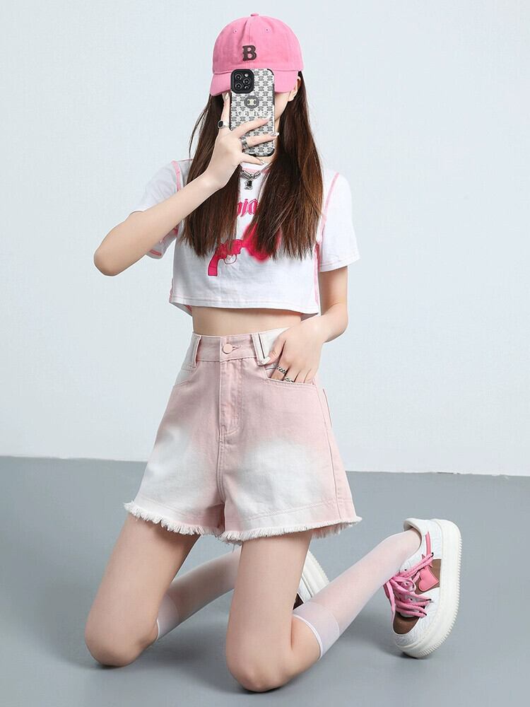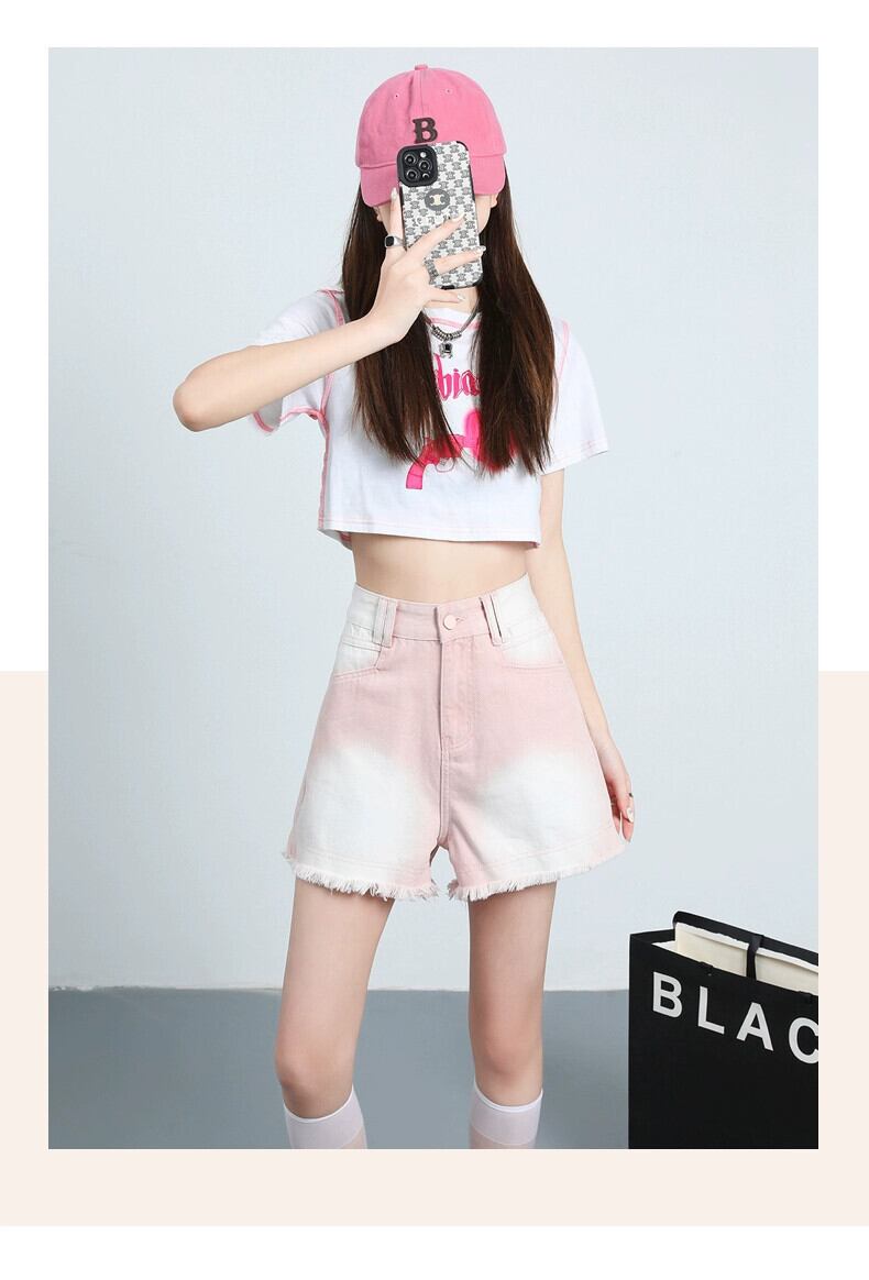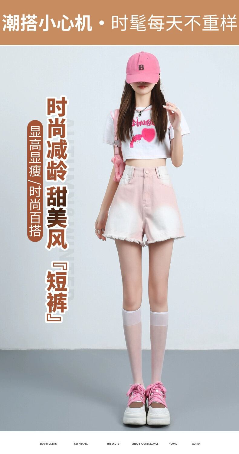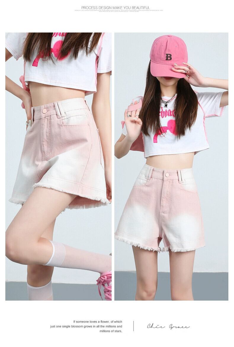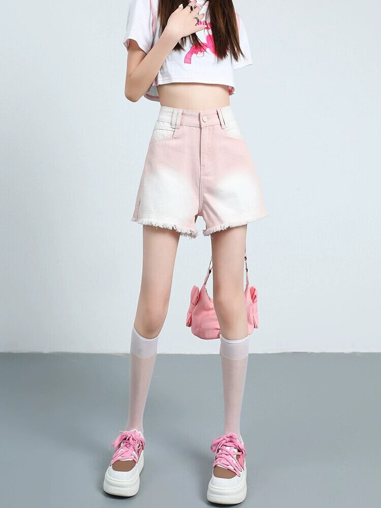 グラデーションワイドデニムショートパンツレディース夏デザインセンスオールマッチハイウエストローエッジAラインパンツ細身パンツ ハイウェスト サマー 夏物 ショーツ ブルマー 7460032639894821 | framboise21
