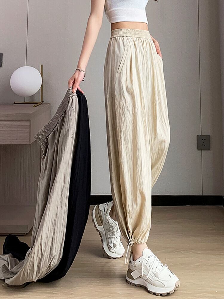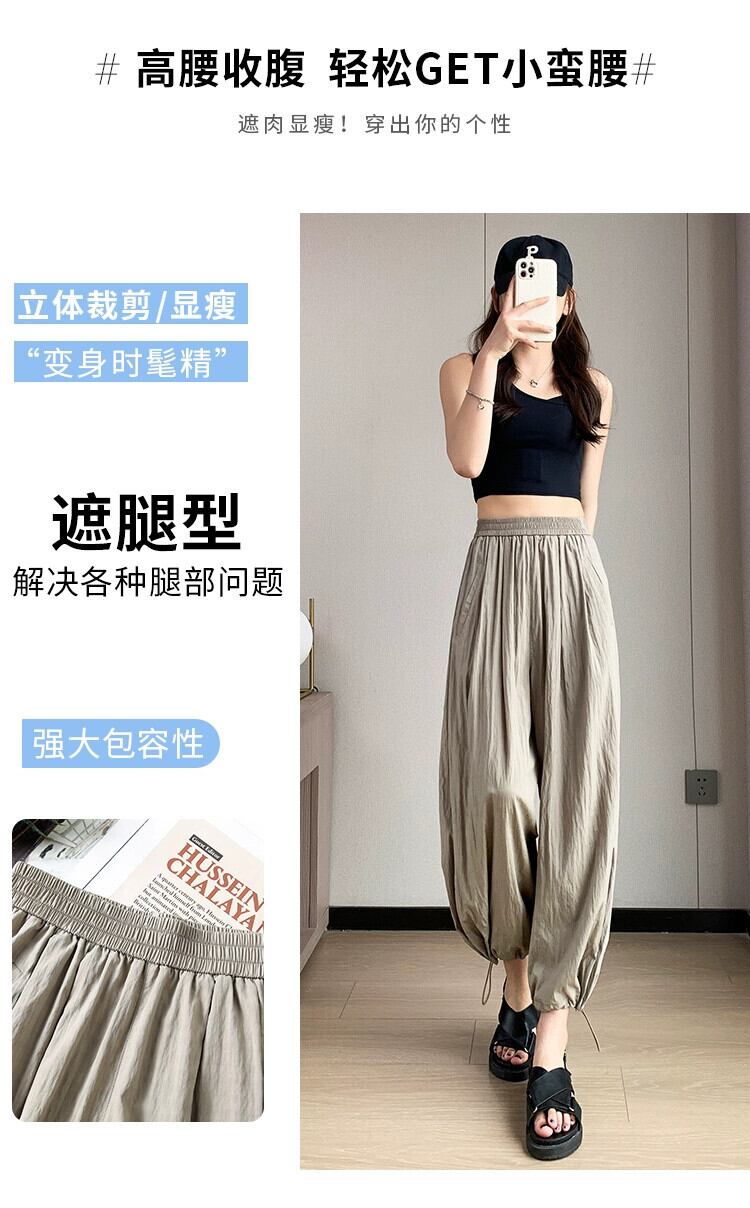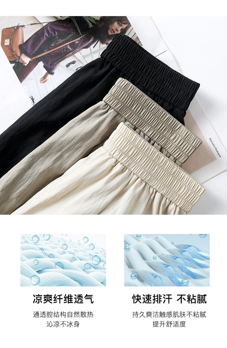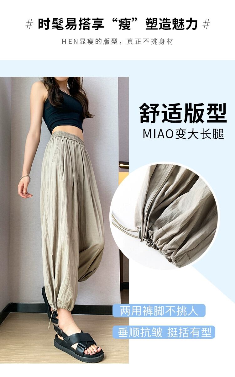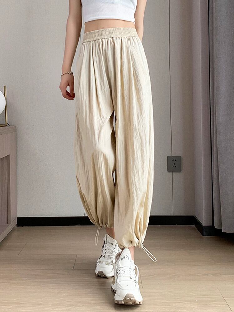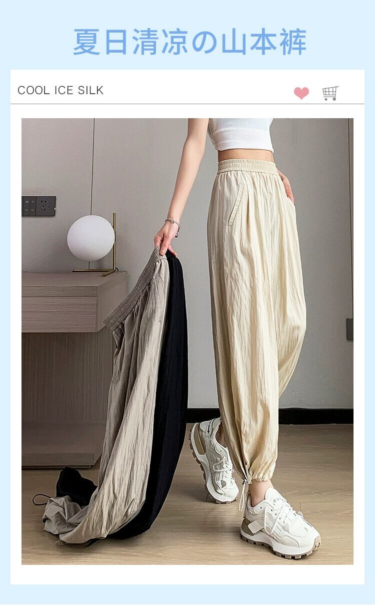ウエスト綿とリネンのワイドレッグパンツ女性の夏薄いアイスシルクハーレムパンツ小さなルーズフィートスポーツカジュアルパンツ コットン サマー 夏物 7460017489963278 | framboise21