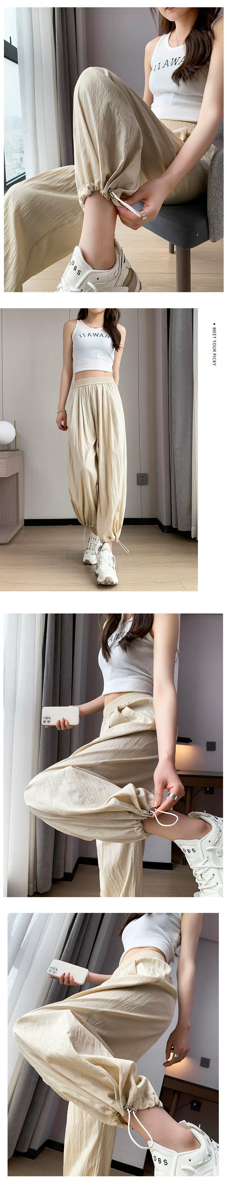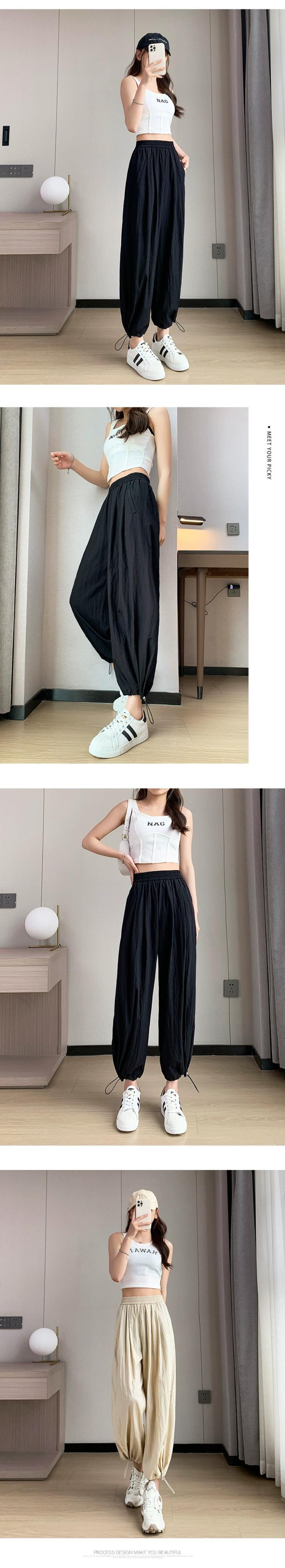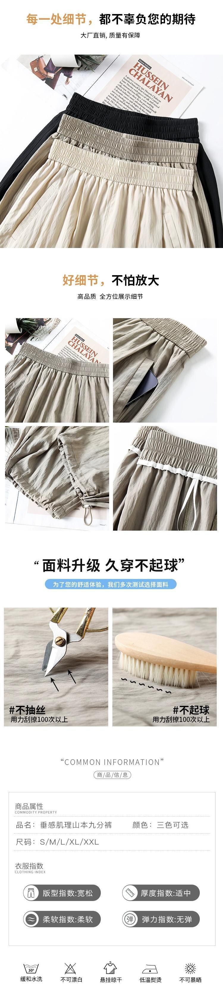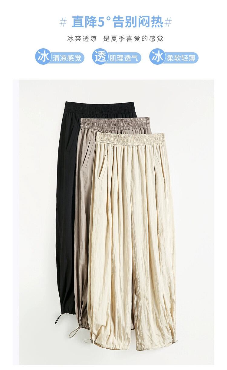 ウエスト綿とリネンのワイドレッグパンツ女性の夏薄いアイスシルクハーレムパンツ小さなルーズフィートスポーツカジュアルパンツ コットン サマー 夏物 7460017489963278 | framboise21