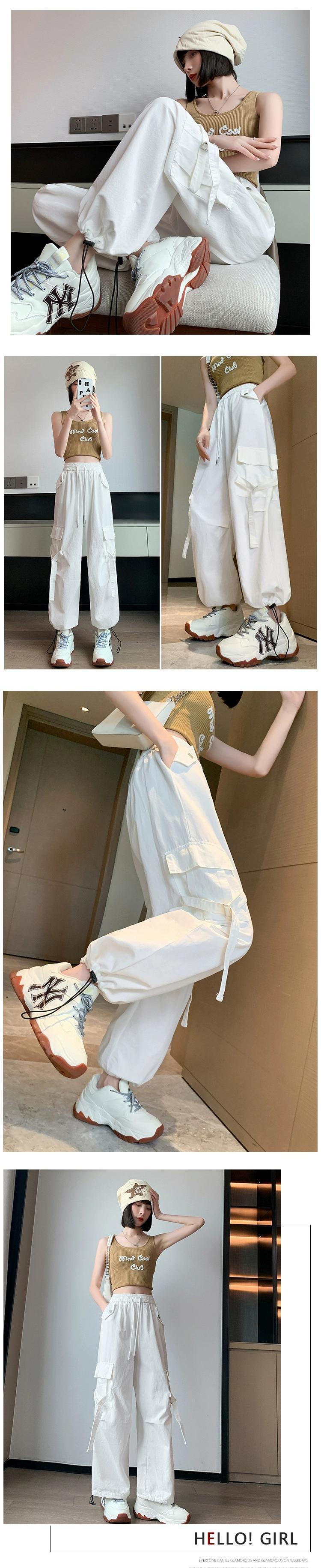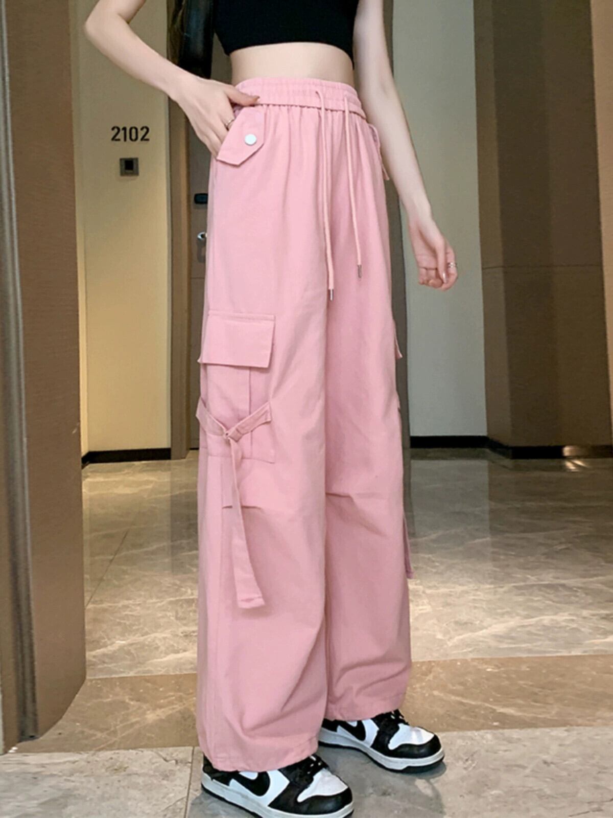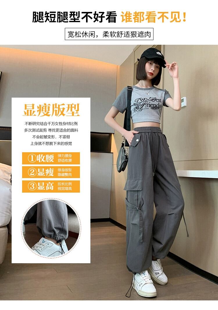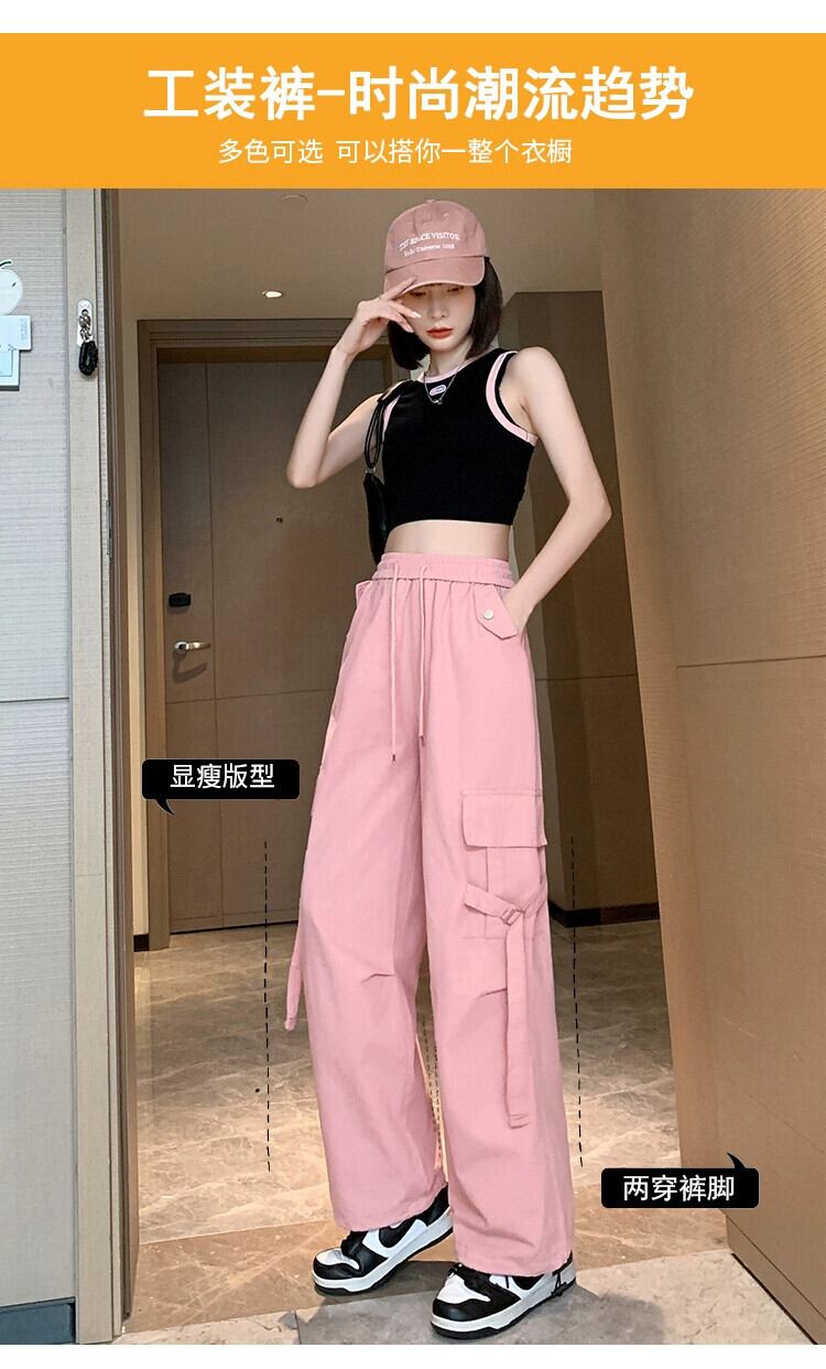 アメリカンスタイルの速乾性オーバーオール女性の夏スリムハイウエストドローストリングパンツルーズカジュアル弾性ウエストワイドレッグパンツ ハイウェスト エラスティック 伸縮 サマー 夏物 ワイドパンツ 746009046766970 | framboise21