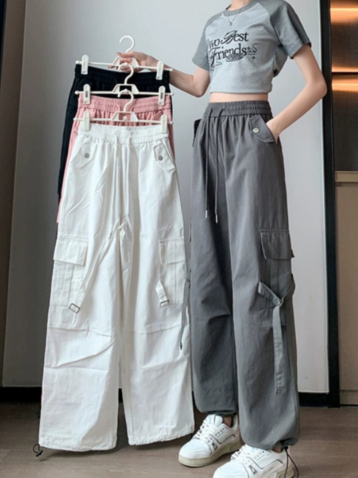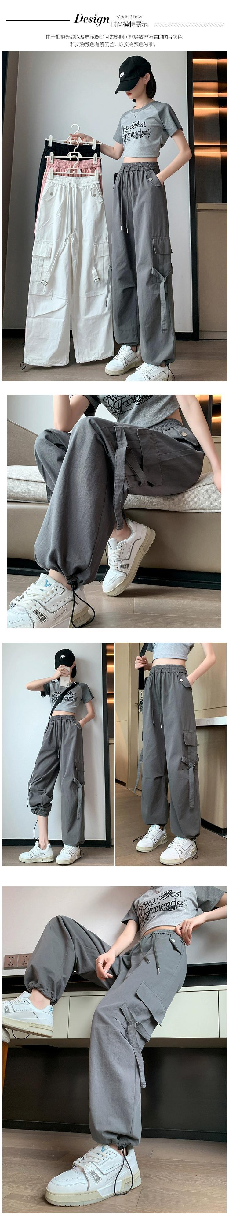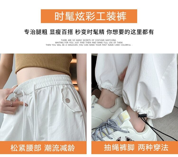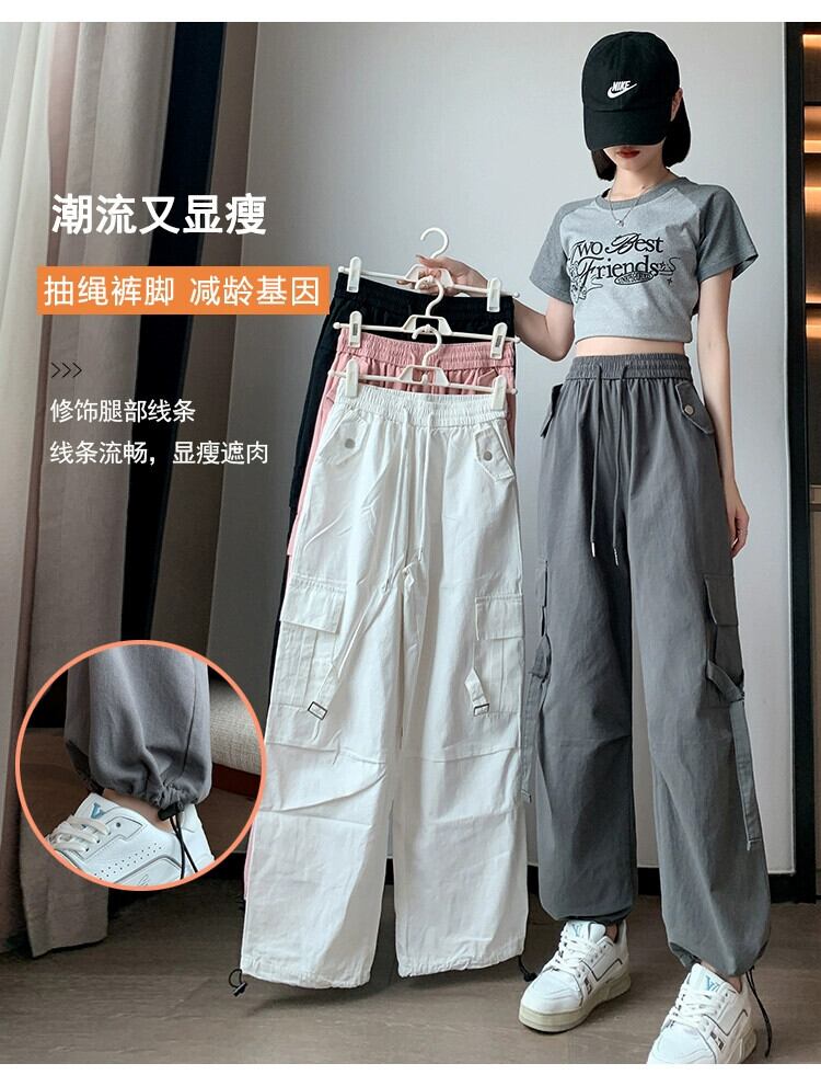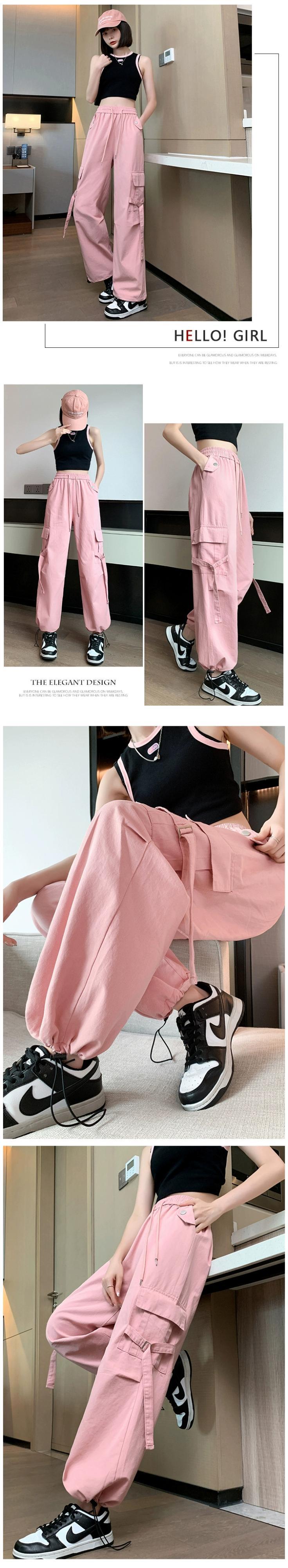 アメリカンスタイルの速乾性オーバーオール女性の夏スリムハイウエストドローストリングパンツルーズカジュアル弾性ウエストワイドレッグパンツ ハイウェスト エラスティック 伸縮 サマー 夏物 ワイドパンツ 746009046766970 | framboise21