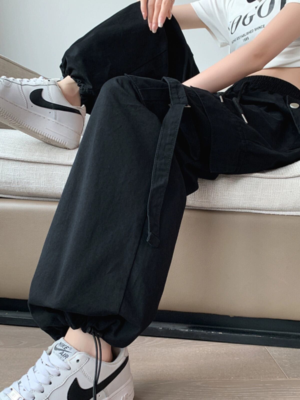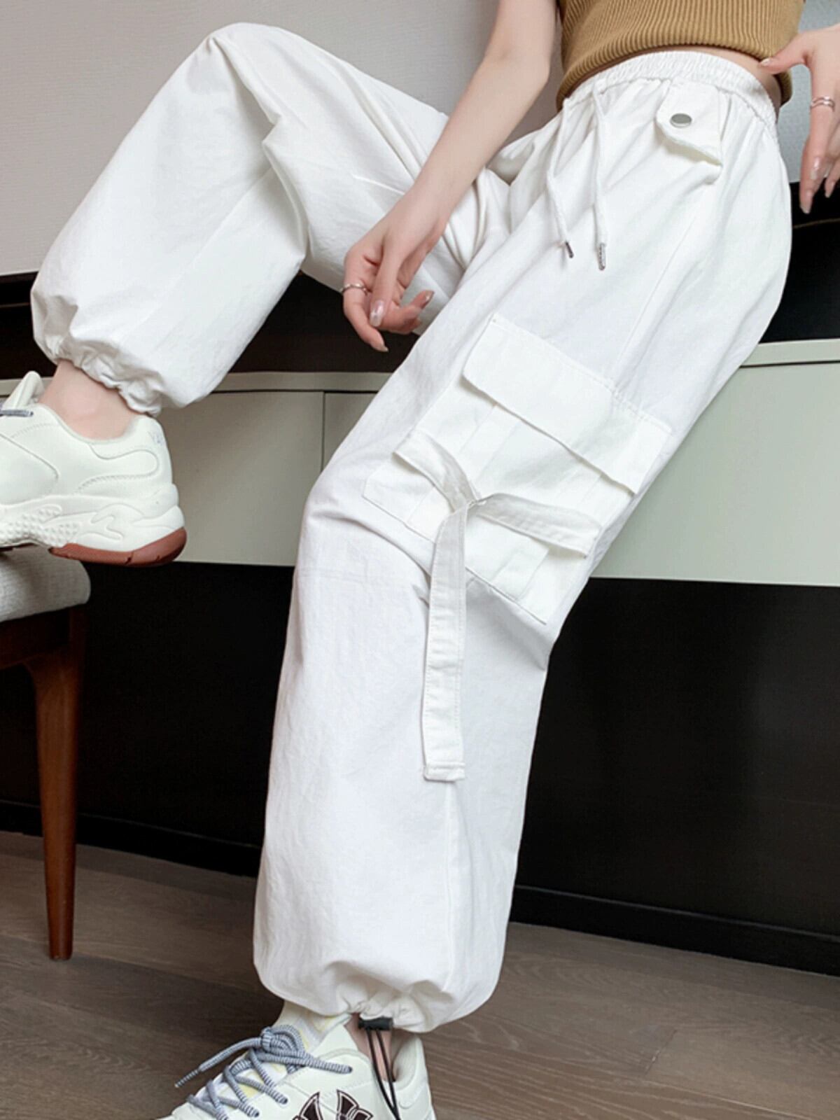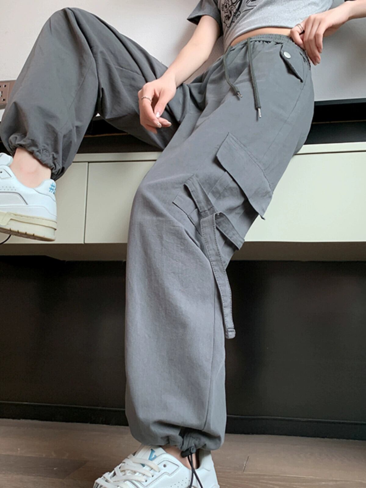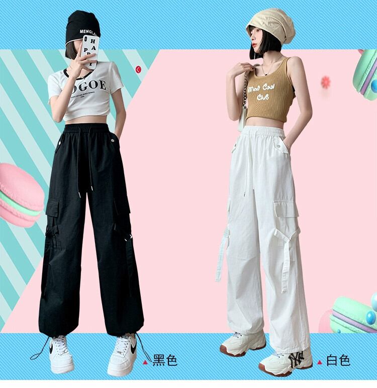 アメリカンスタイルの速乾性オーバーオール女性の夏スリムハイウエストドローストリングパンツルーズカジュアル弾性ウエストワイドレッグパンツ ハイウェスト エラスティック 伸縮 サマー 夏物 ワイドパンツ 746009046766970 | framboise21