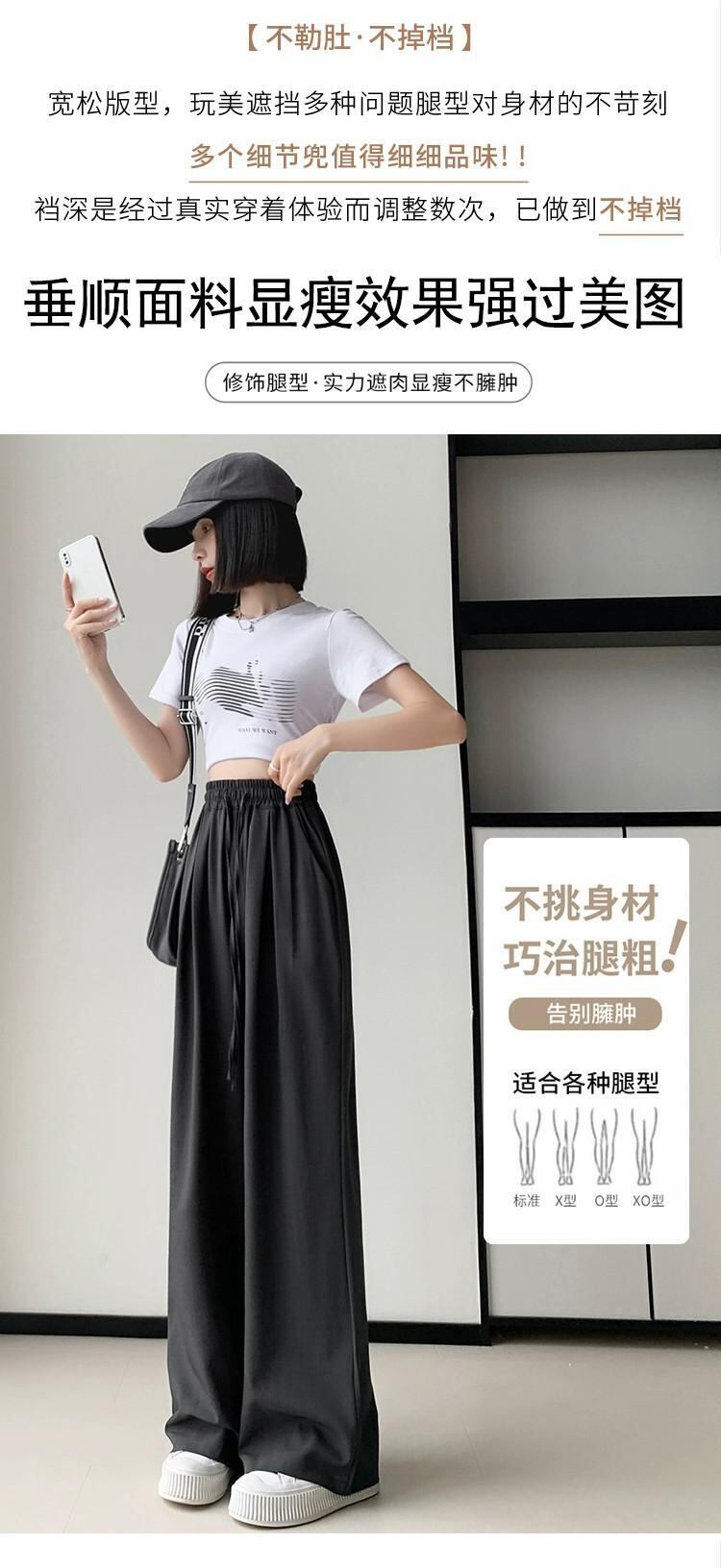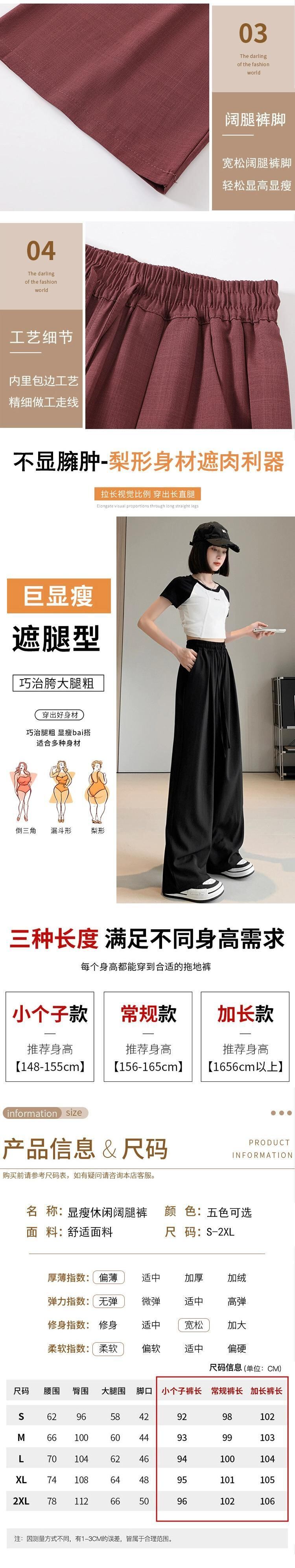ブラックアイスシルクワイドレッグパンツレディース夏薄セクションハイウエストドレープコットンとリネンパンツルーズストレートカジュアルリネンレディースパンツ ハイウェスト サマー 夏物 7460029107112225 | framboise21