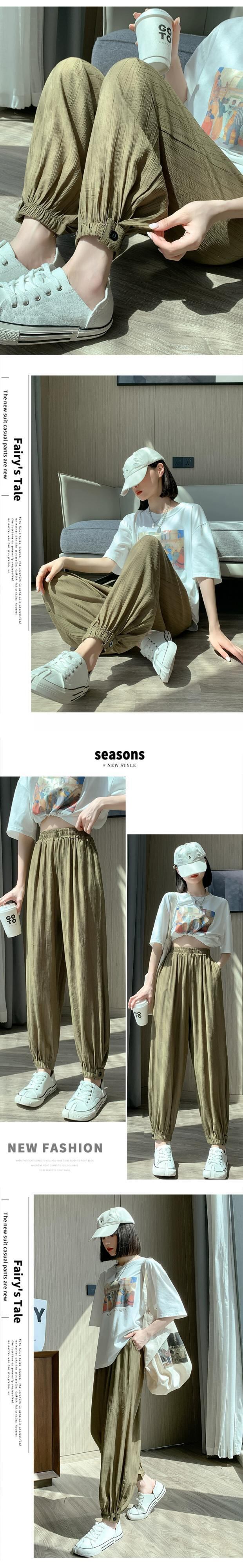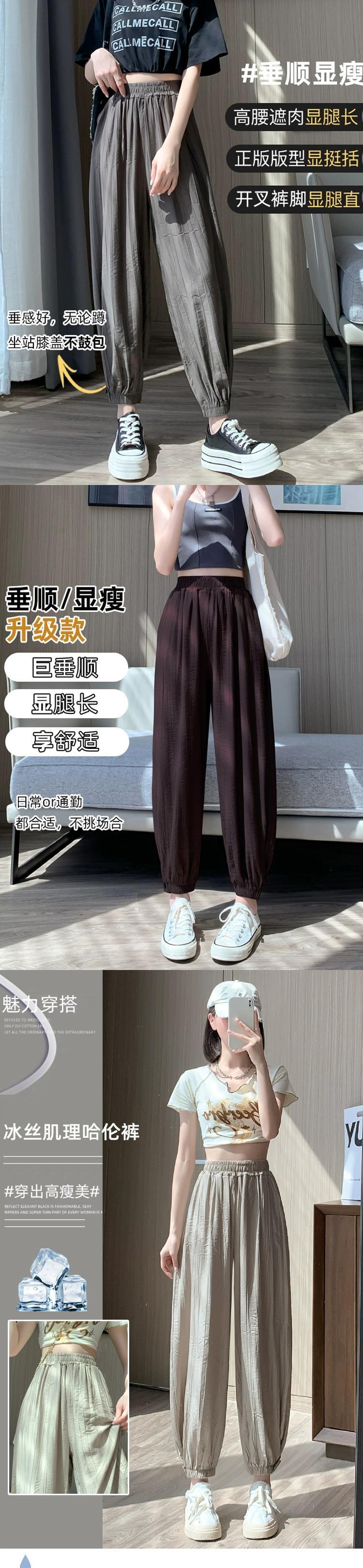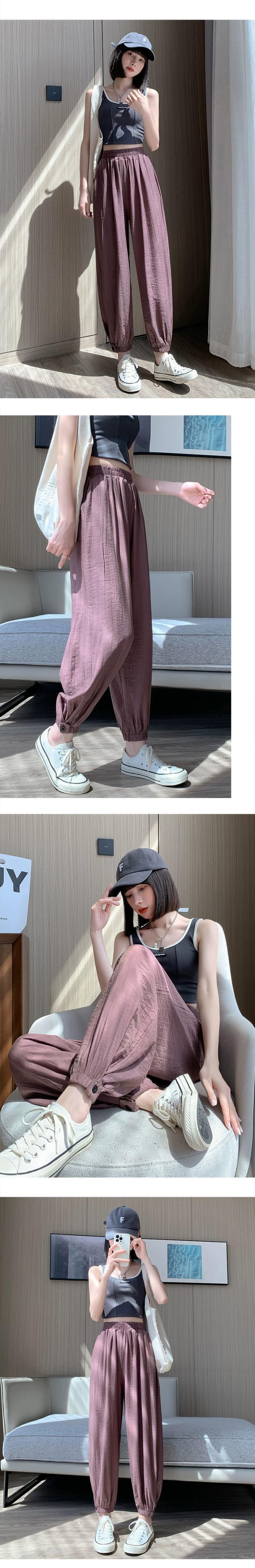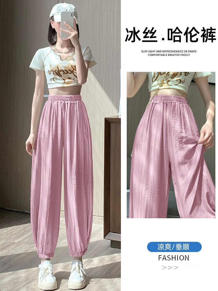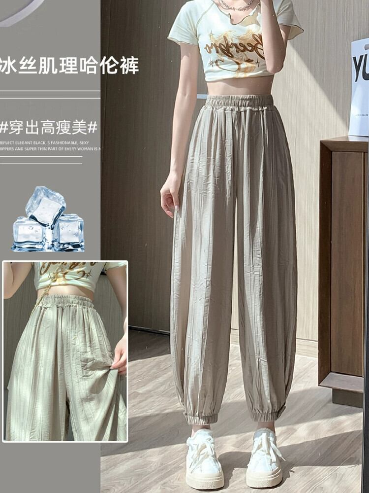 コットンリネンアイスシルク 9 点パンツ女性の夏の薄いセクションハーレムパンツ小さなルーズスリムハイウエストビーム足カジュアルパンツ ハイウェスト サマー 夏物 7460032416079747 | framboise21