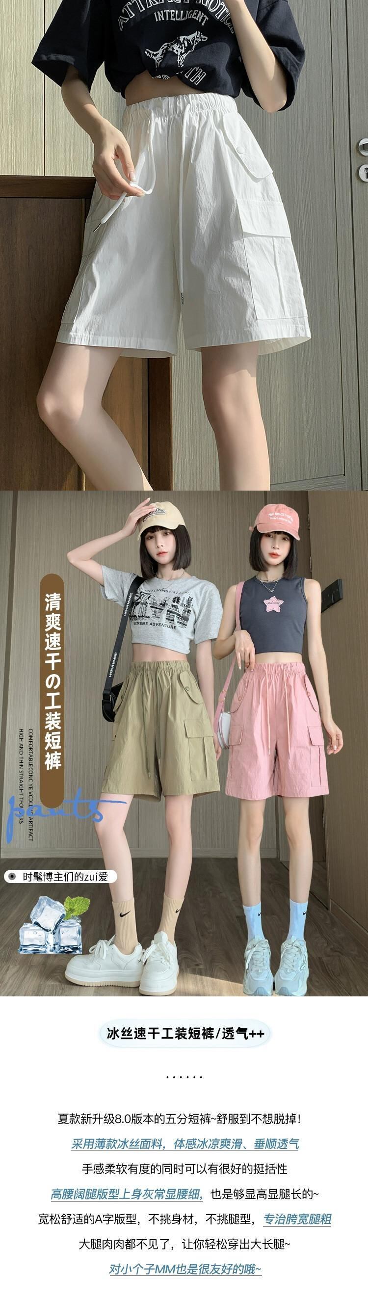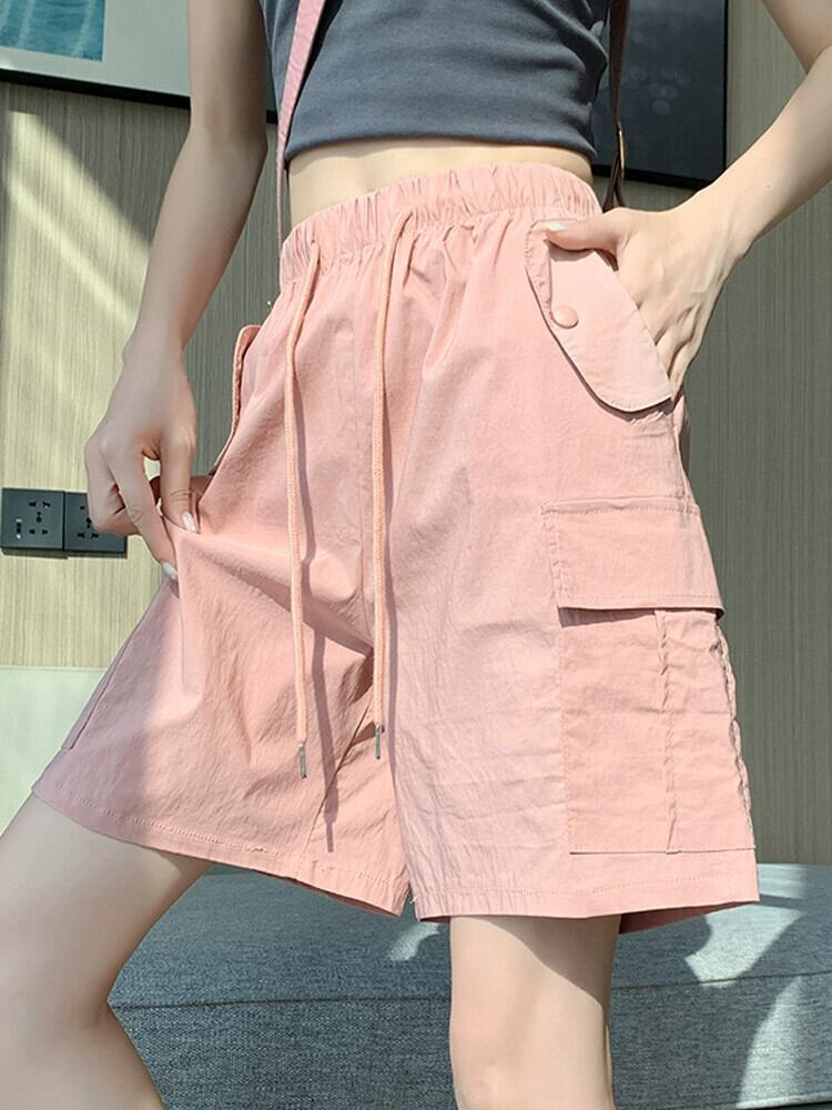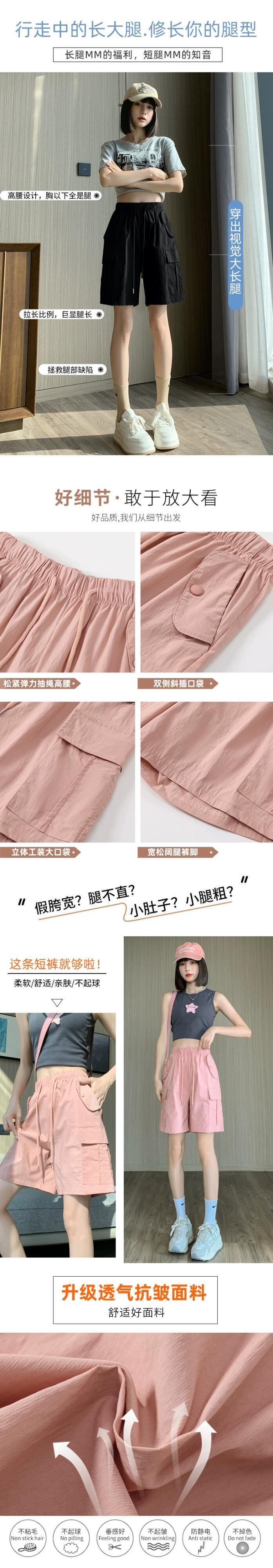 アメリカンスタイルのピンクの5点式カジュアルショーツレディース夏薄手ツーリング速乾パンツルーズスリムハイウエストスポーツパンツ サマー 夏物 ブルマー 7460045557268916 | framboise21