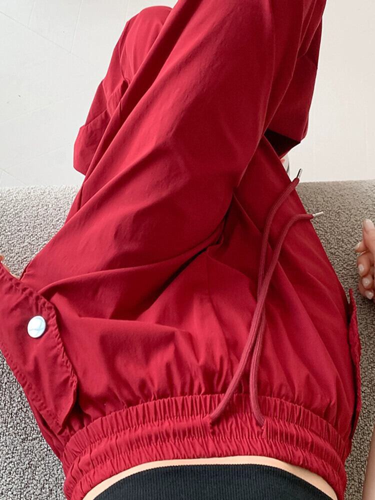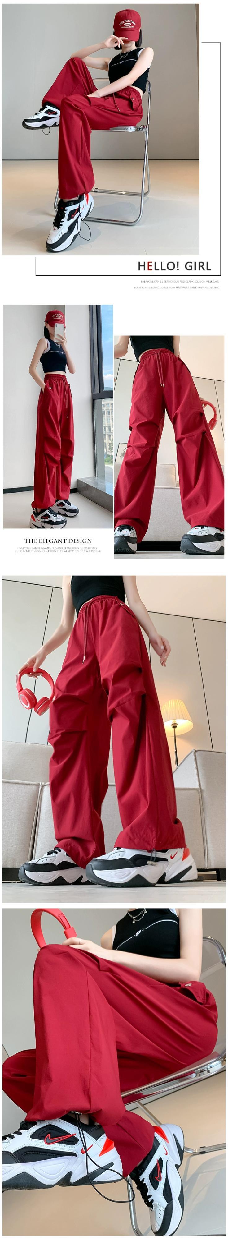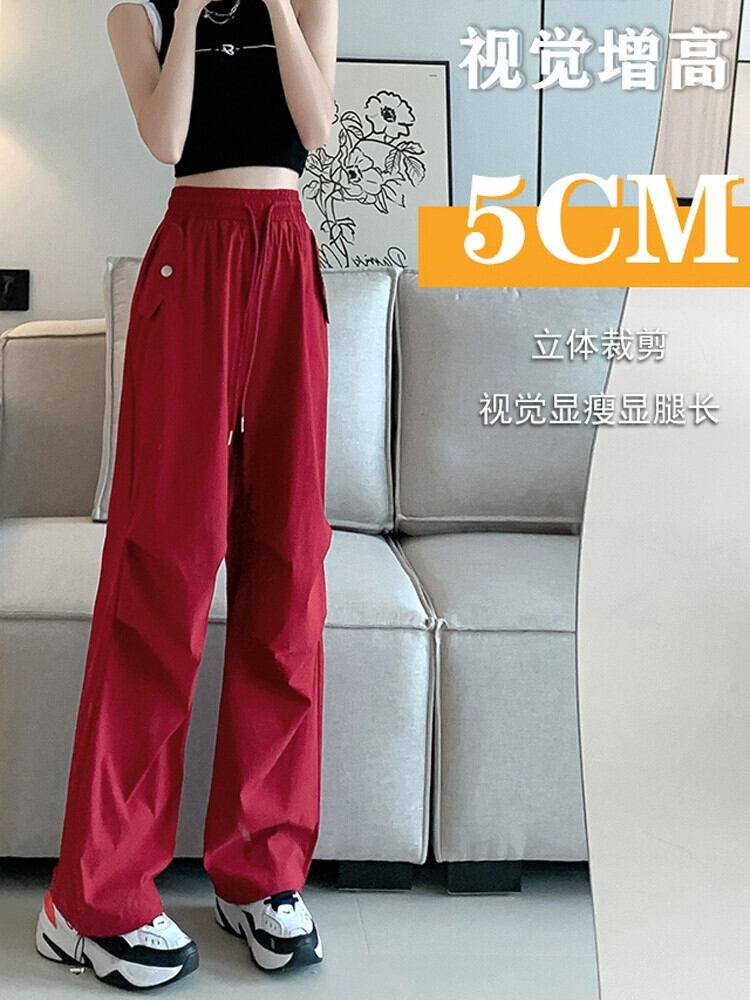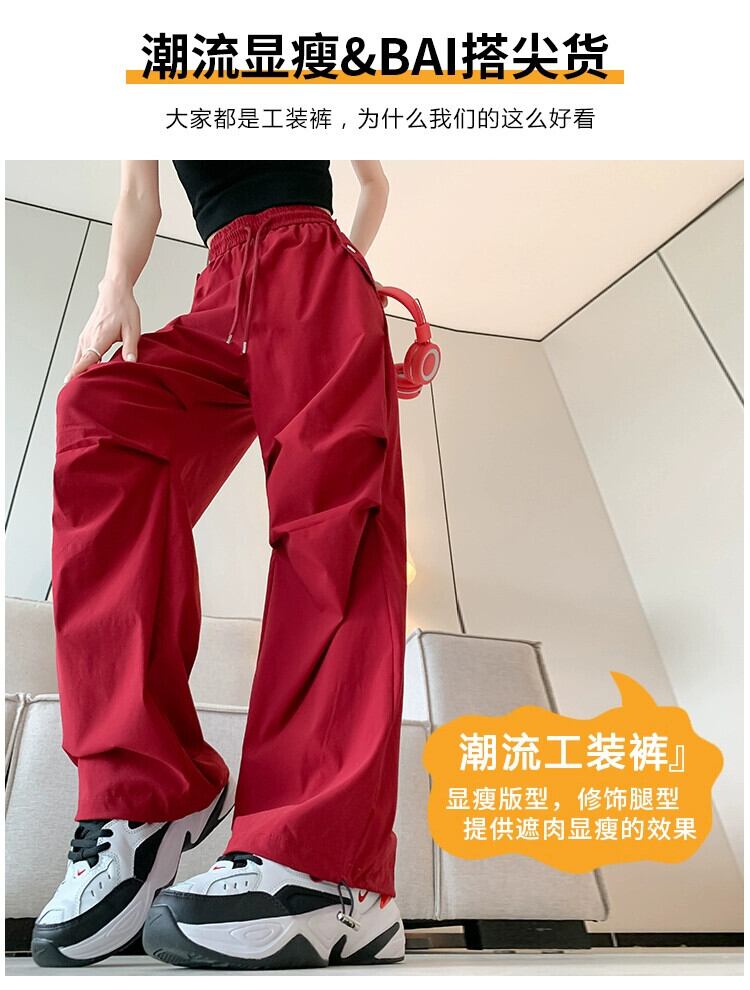アメリカの速乾性オーバーオール夏の女性の 2023 新しい薄セクションパンツハイウエストドレープカジュアルワイドレッグパンツレッド ハイウェスト サマー 夏物 7460038730607503 | framboise21