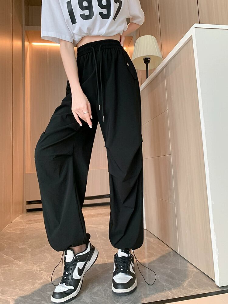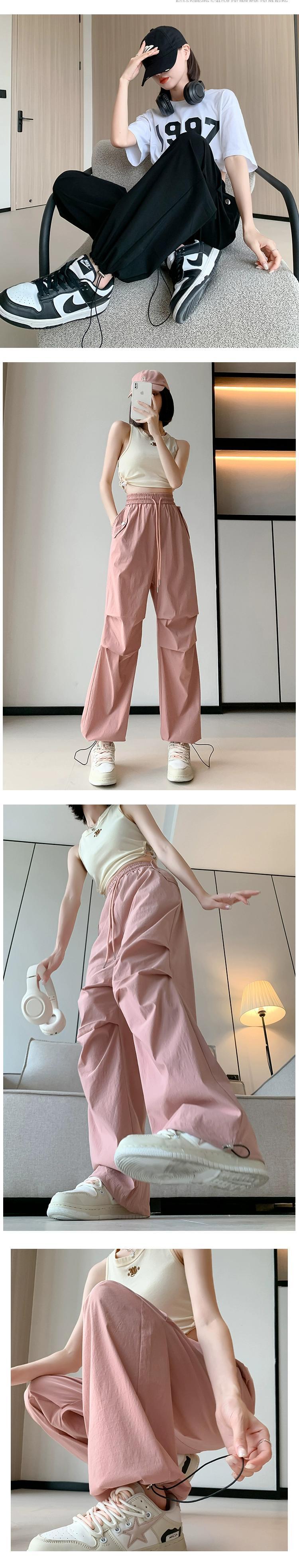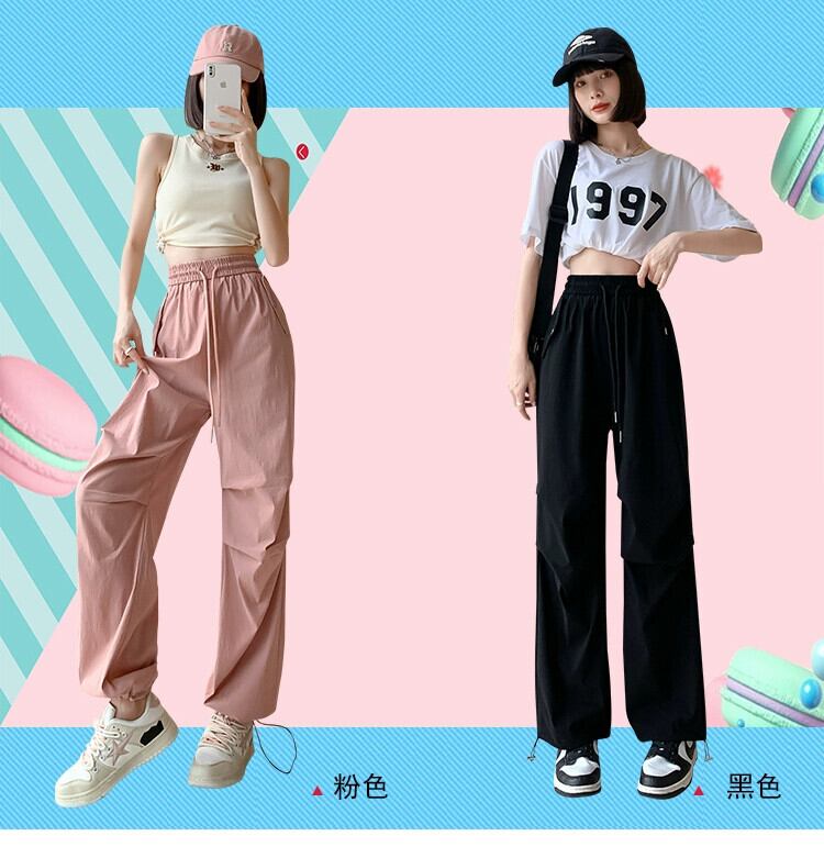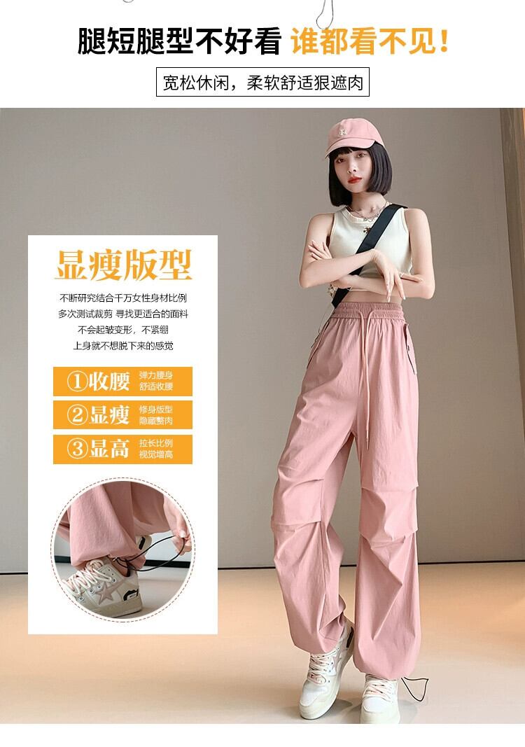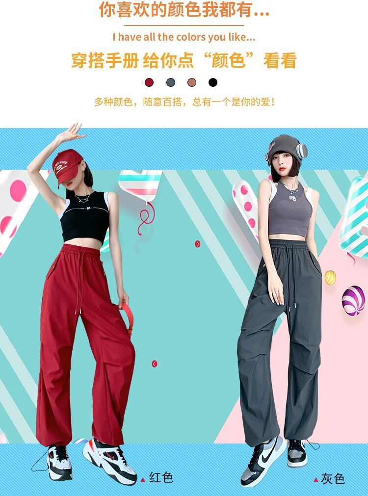 アメリカの速乾性オーバーオール夏の女性の 2023 新しい薄セクションパンツハイウエストドレープカジュアルワイドレッグパンツレッド ハイウェスト サマー 夏物 7460038730607503 | framboise21