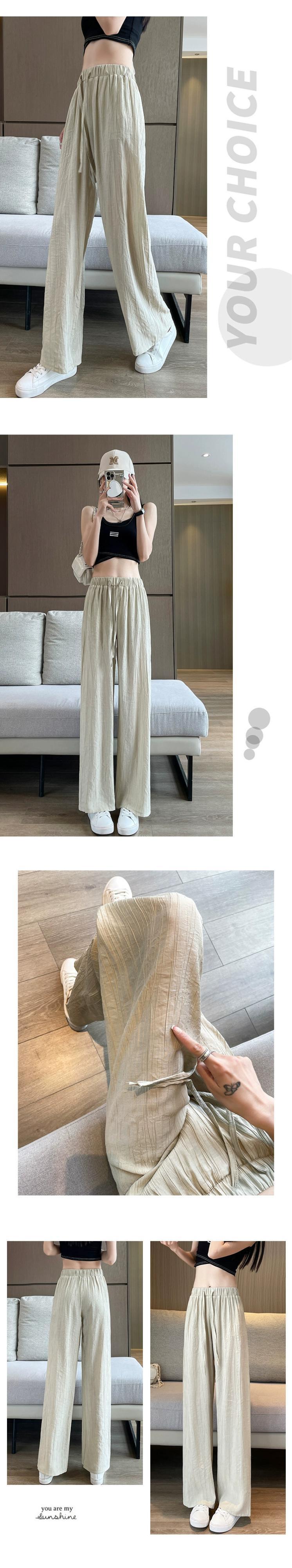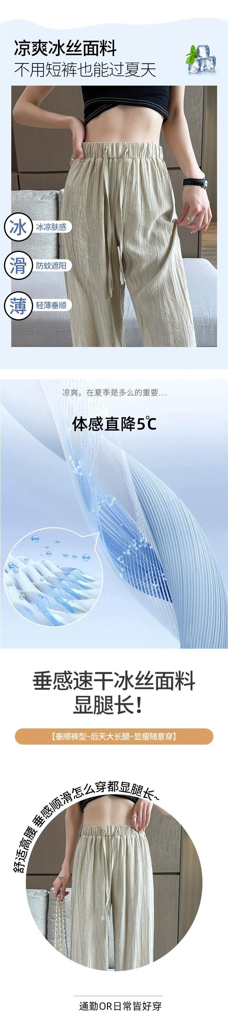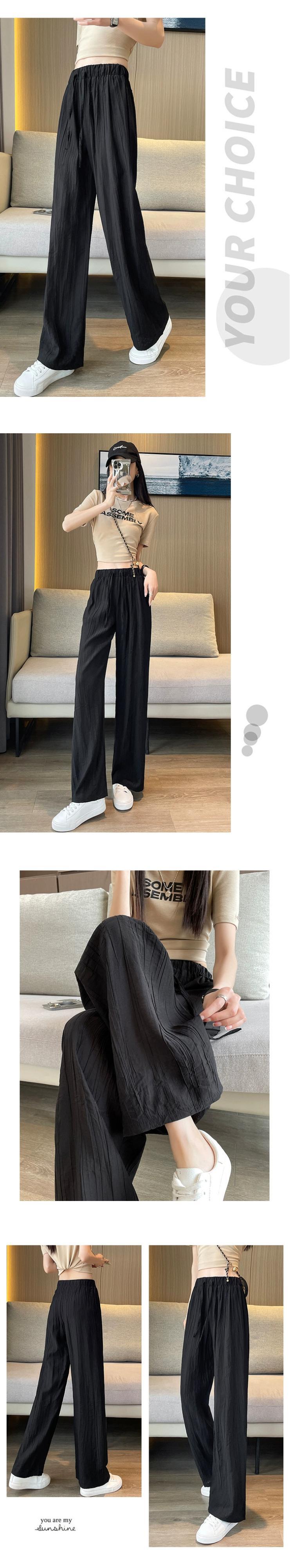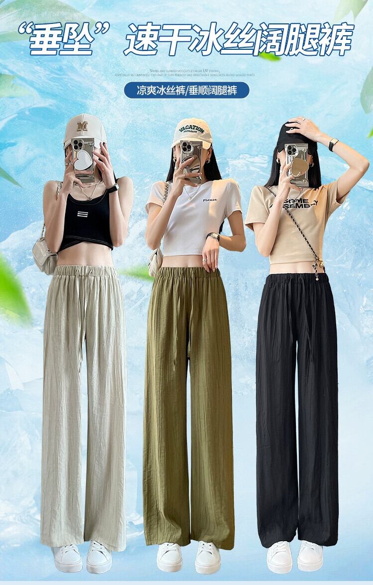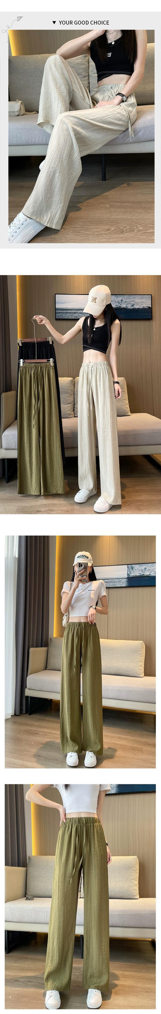 テクスチャードアイスシルクワイドレッグパンツレディース夏薄い日焼け止めひだクールパンツルーズドレープストレートカジュアルパンツ レッド サマー 夏物 7460097583347380 | framboise21