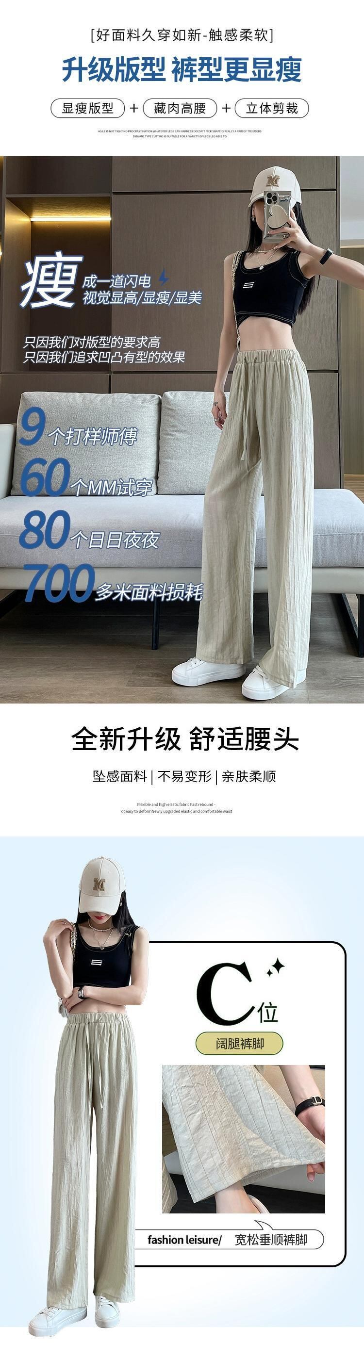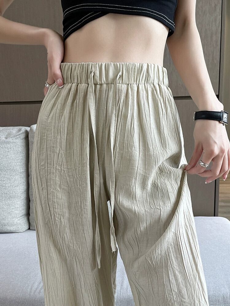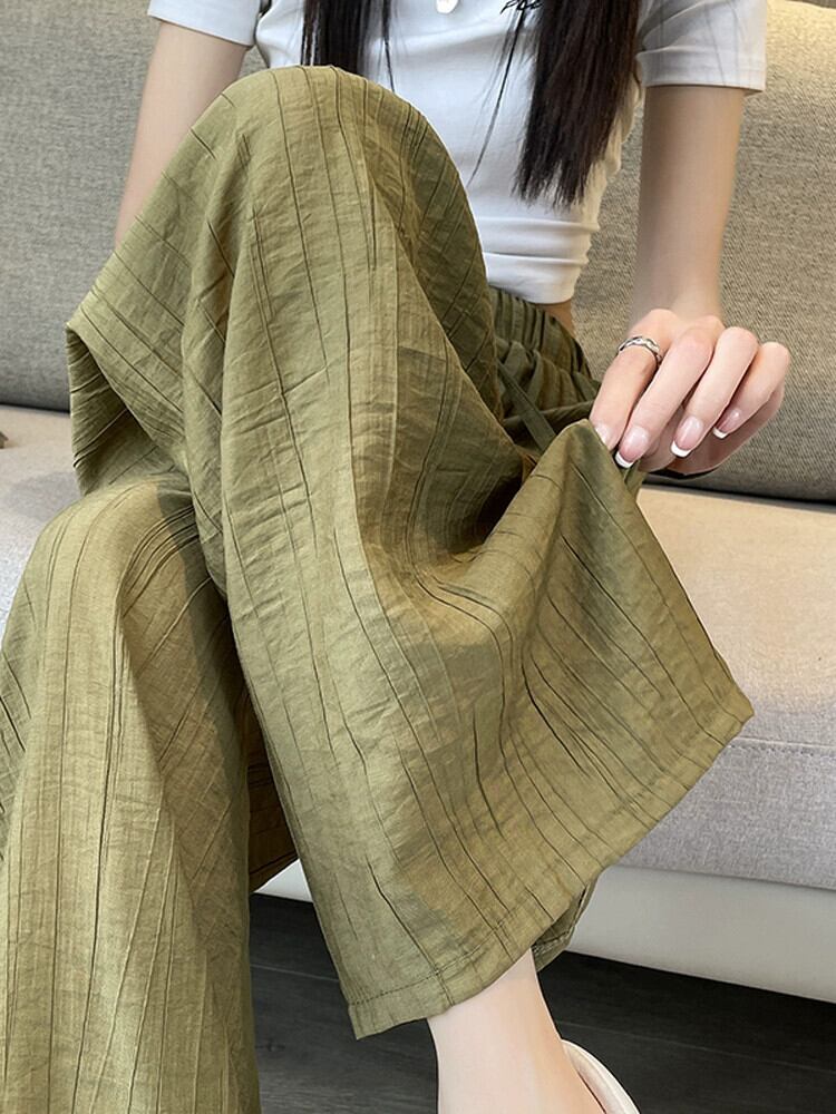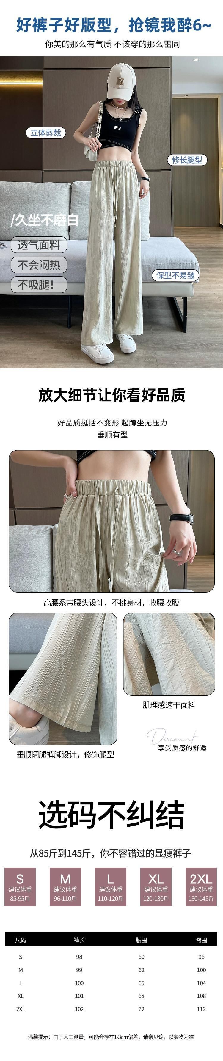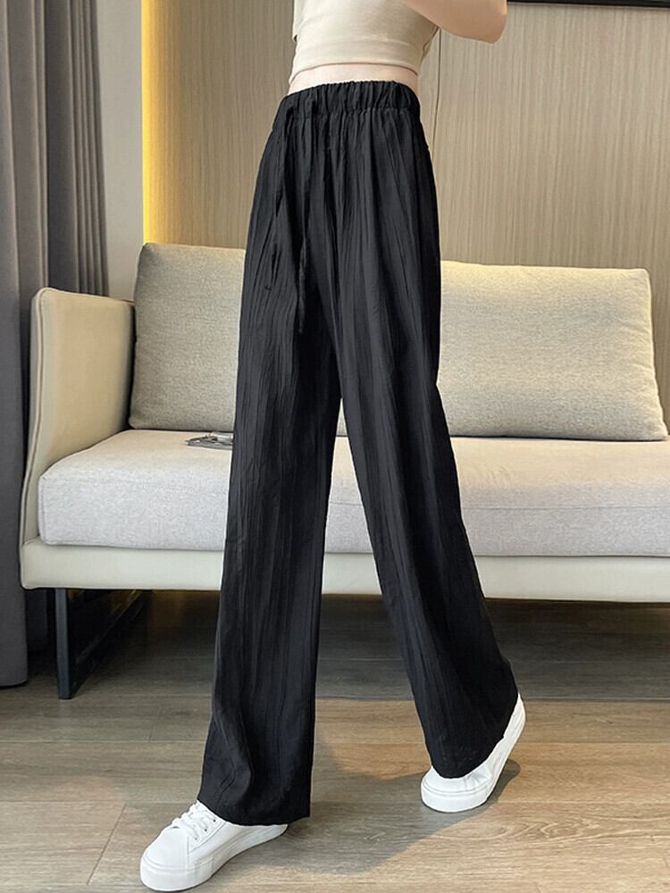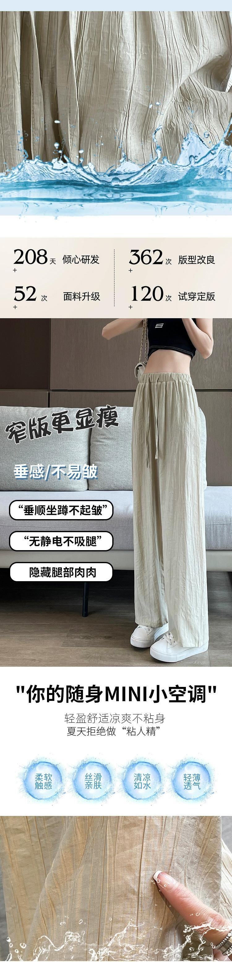 テクスチャードアイスシルクワイドレッグパンツレディース夏薄い日焼け止めひだクールパンツルーズドレープストレートカジュアルパンツ レッド サマー 夏物 7460097583347380 | framboise21