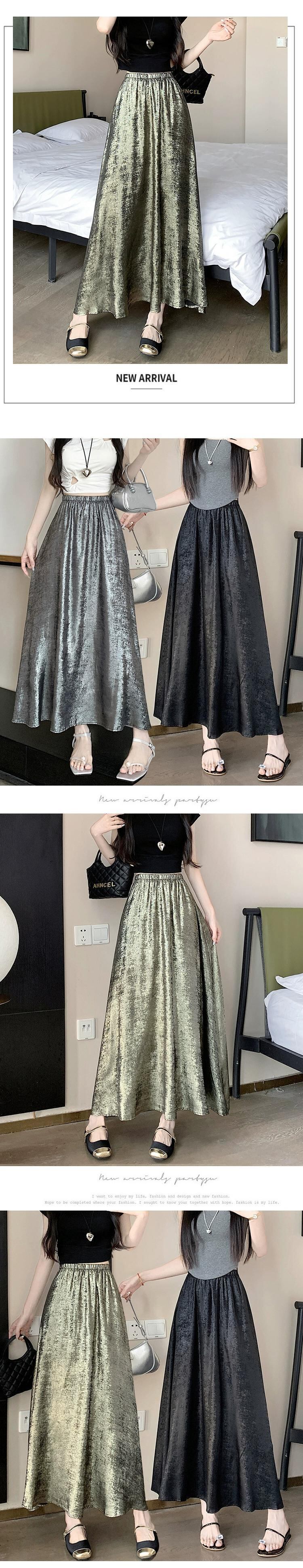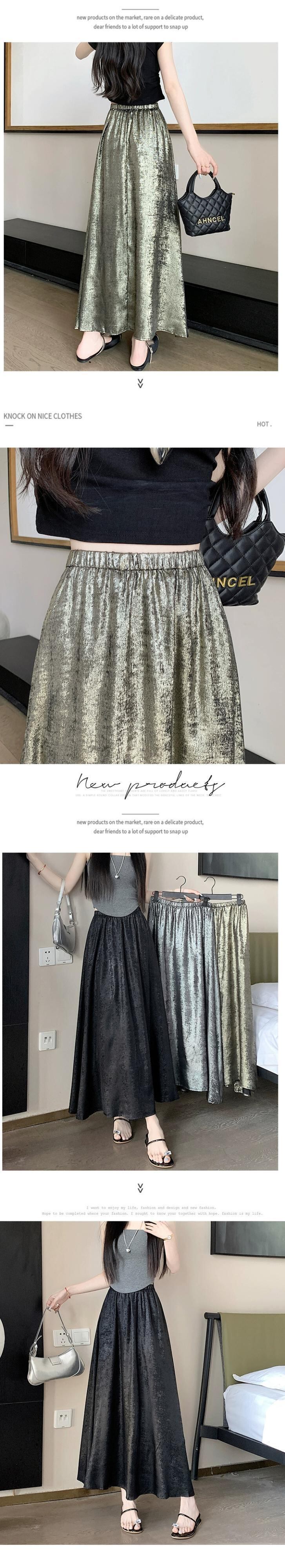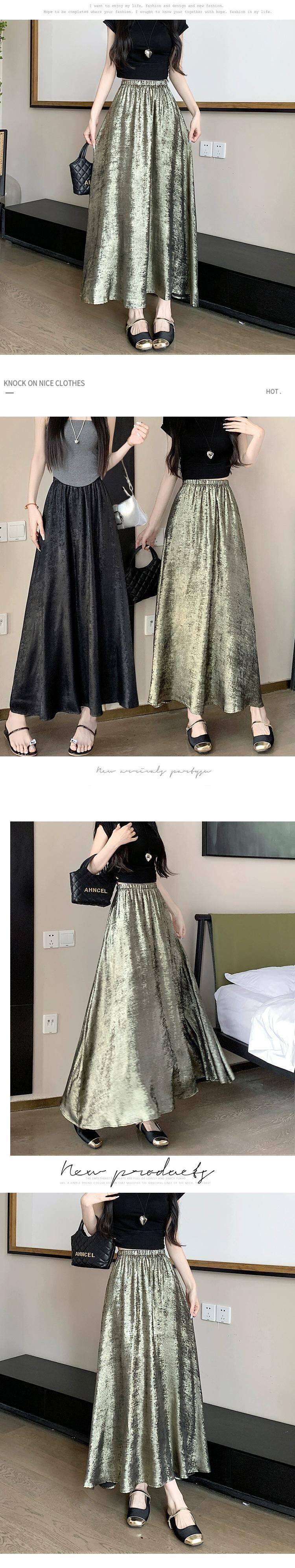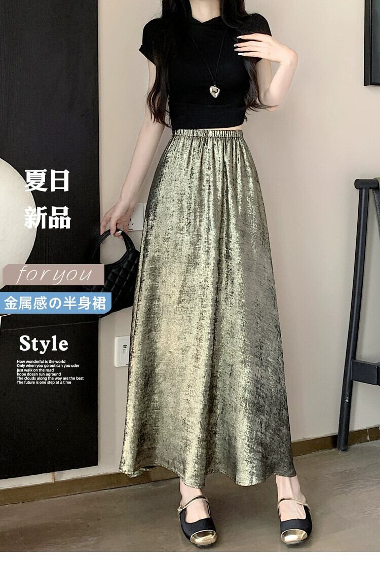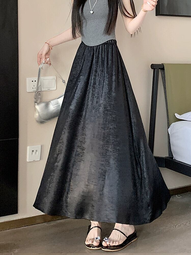 黒のハイウエスト A ライン スカート レディース 夏の新作フレンチ アンブレラ スカート高品質スリム ミドル丈光沢のあるスカート ブラック サマー 夏物 Aライン 7460032342200748 | framboise21
