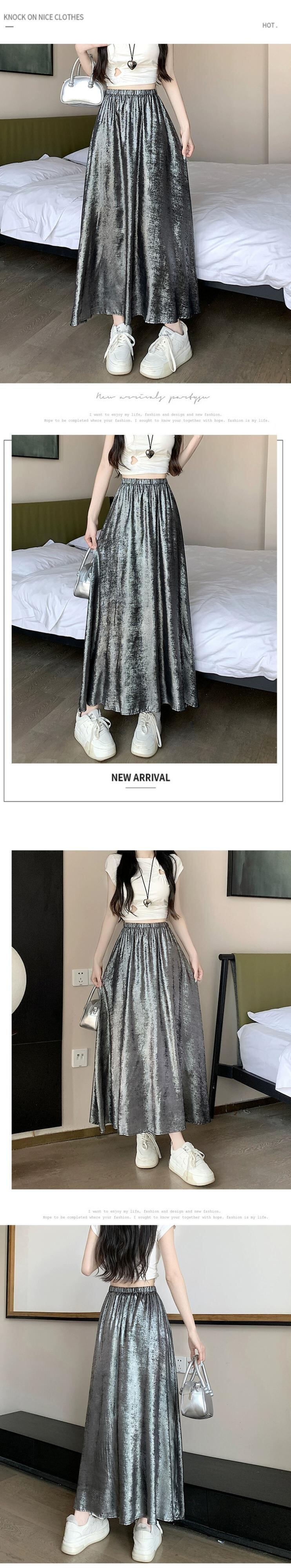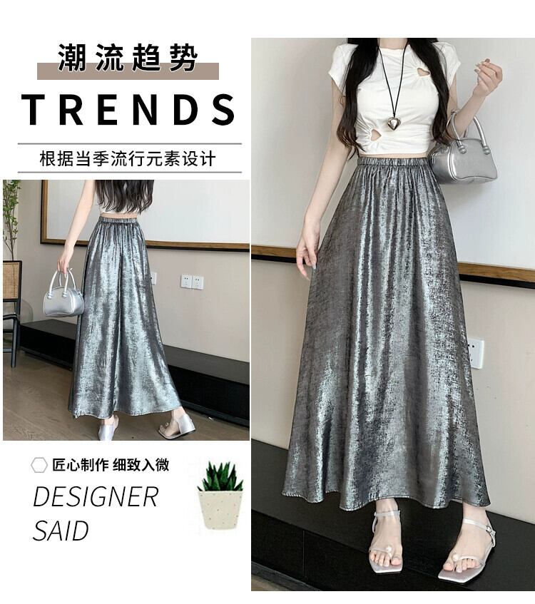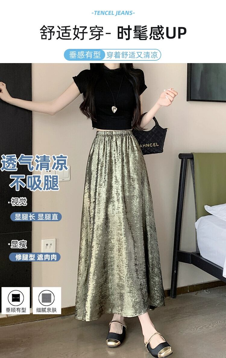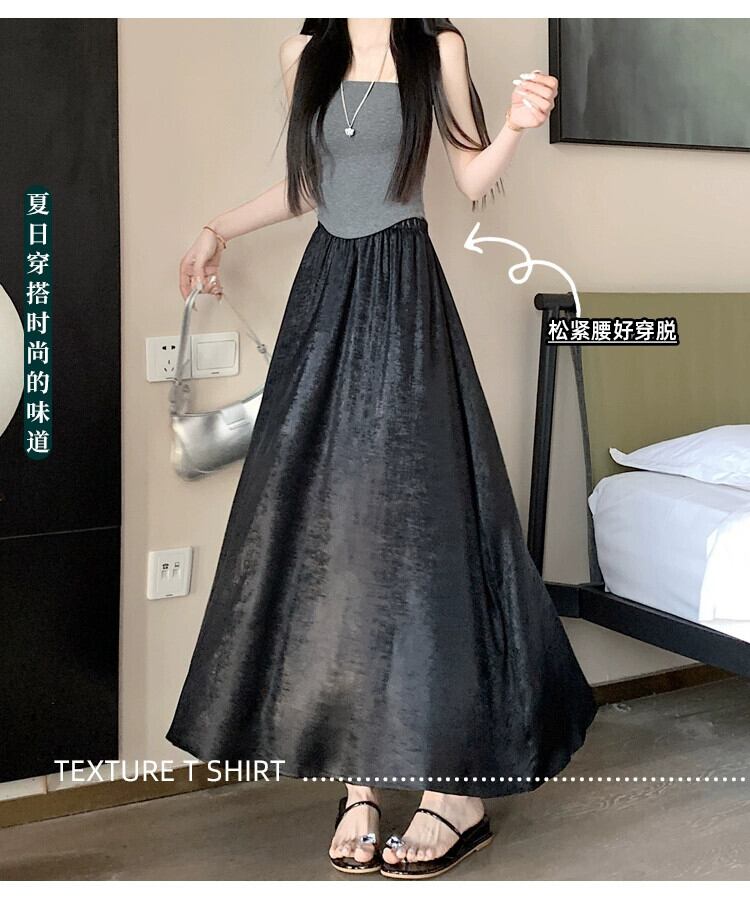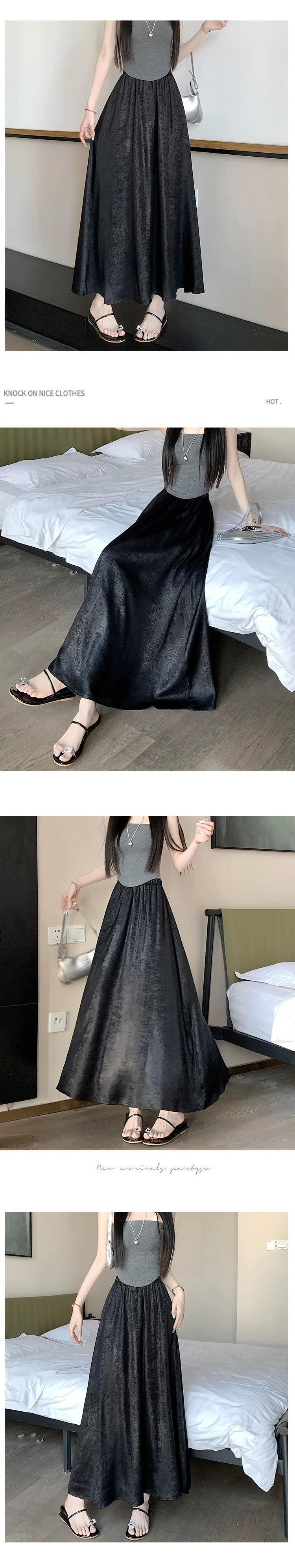 黒のハイウエスト A ライン スカート レディース 夏の新作フレンチ アンブレラ スカート高品質スリム ミドル丈光沢のあるスカート ブラック サマー 夏物 Aライン 7460032342200748 | framboise21