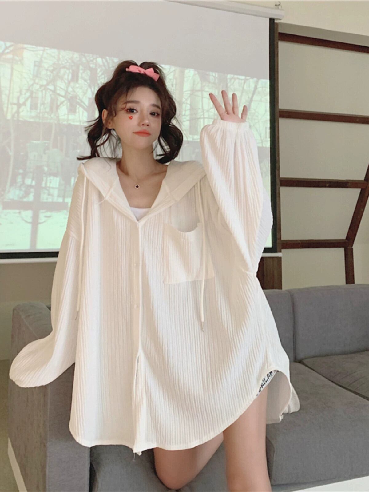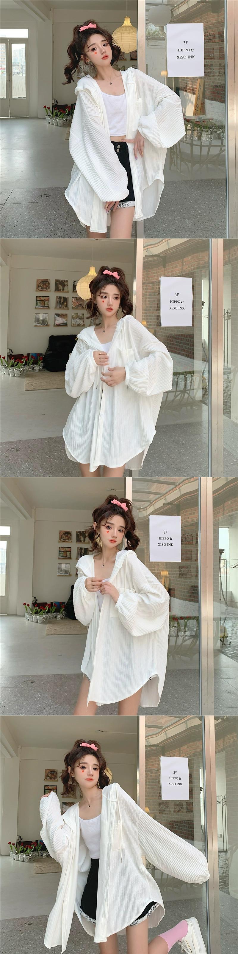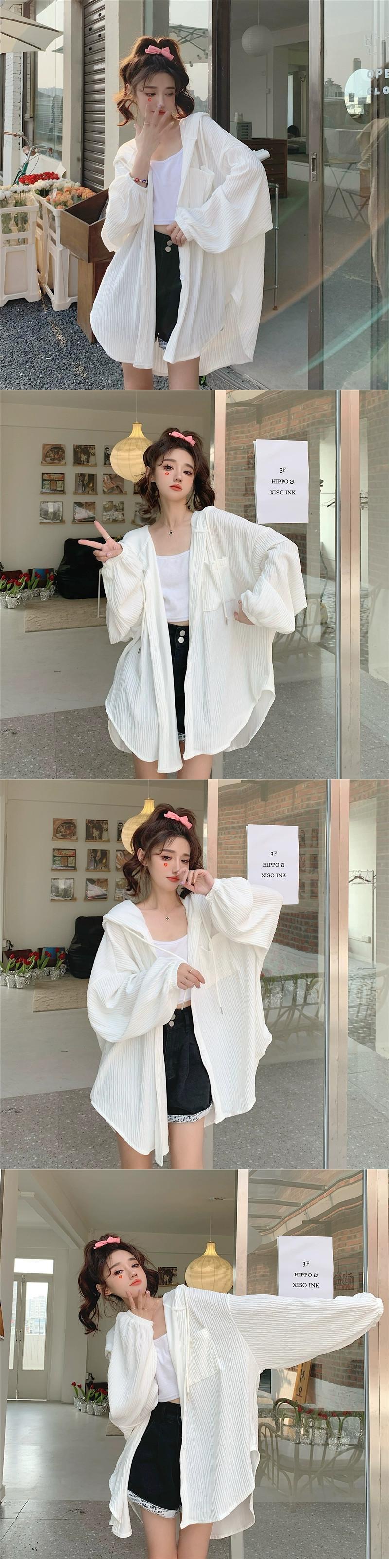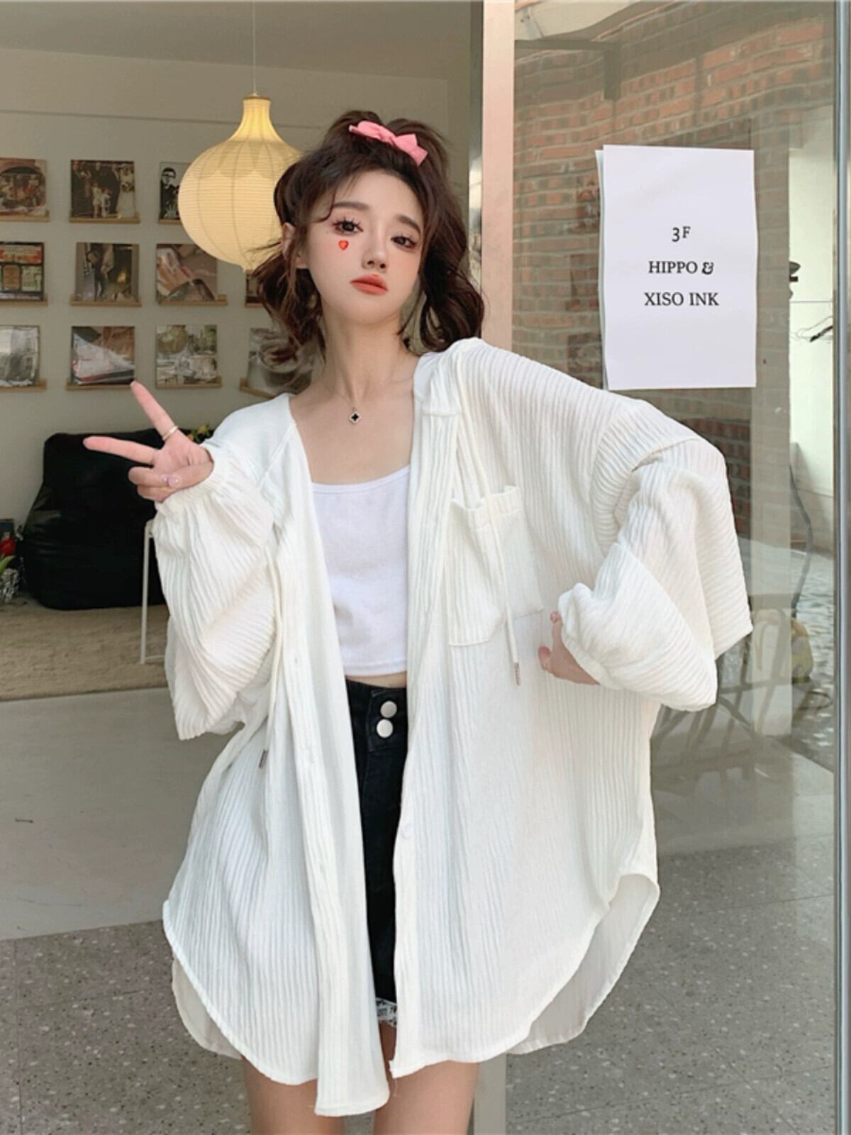 白のミッドレングス通気性日焼け防止服女性の夏の 2023 新しい薄い日焼け防止服ルーズで多目的なフード付きジャケット ホワイト サマー 夏物 746005684870910 | framboise21