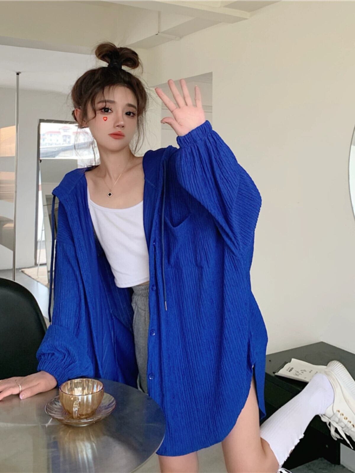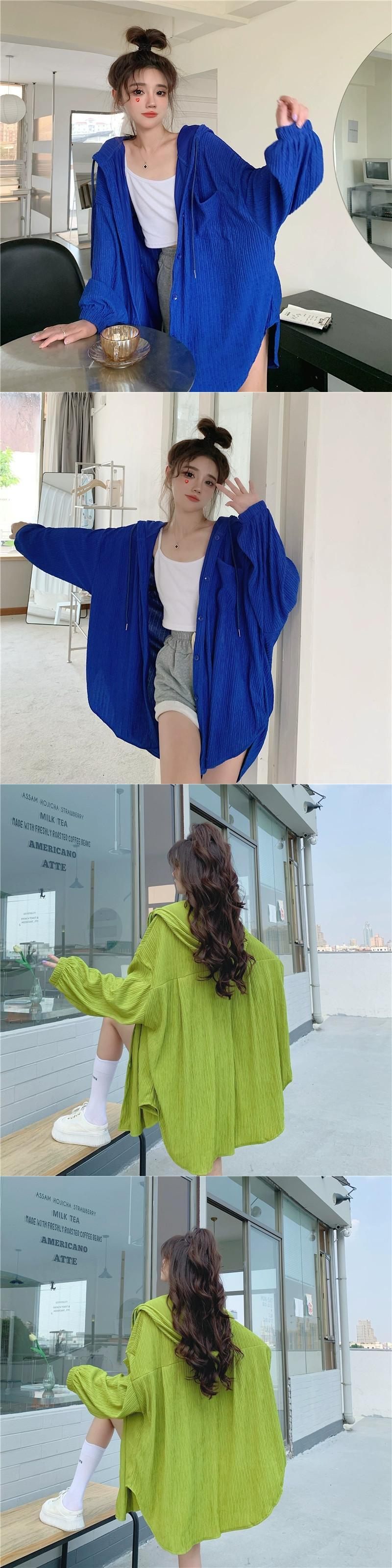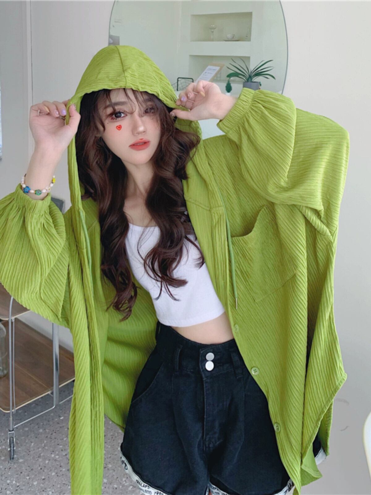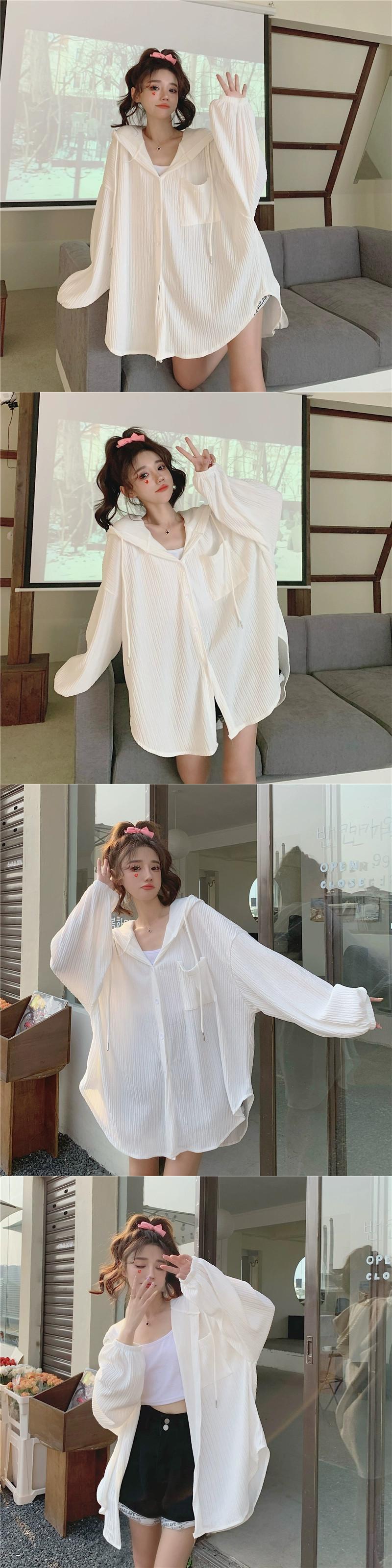 白のミッドレングス通気性日焼け防止服女性の夏の 2023 新しい薄い日焼け防止服ルーズで多目的なフード付きジャケット ホワイト サマー 夏物 746005684870910 | framboise21